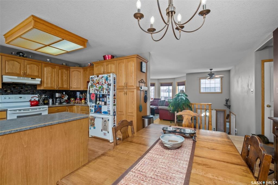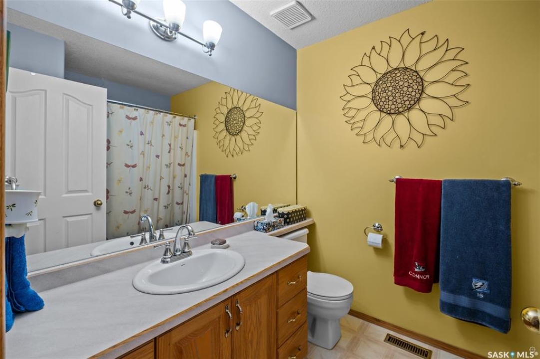 Beautiful 5 bedroom and 3 bathroom home located on a quiet cul-de-sac close to schools and parks! The main floor welcomes you with a spacious living room highlighted by south facing bay windows that bring in plenty of natural light. The bright kitchen and dining area is equipped with oak cabinets, stylish backsplash, a peninsula island, sunshine ceiling, and direct access to the deck, creating an inviting space for everyday living and hosting family and friends. This level also includes a 4 piece bathroom and 3 good size bedrooms, including the primary bedroom that has a walk-in closet and a 3 piece ensuite complete with a relaxing jet tub. The fully finished basement offers a generous family room centered around a cozy gas fireplace that has a beautiful stone surround, along with a walkout to the patio that adds to the homes functionality. Two additional bedrooms, a 3 piece bathroom, and a combined laundry/utility room complete this level. Additional highlights include central air conditioning, shingles replaced with added ventilation in 2023, kitchen faucet updated in 2025, and a security system updated in 2025. The fully fenced yard is complete with mature trees and shrubs, underground sprinklers, and a thoughtfully xeriscaped backyard that creates a clean and inviting outdoor space to relax and entertain. Don't miss out on what this exceptional property has to offer. Book your showing today!