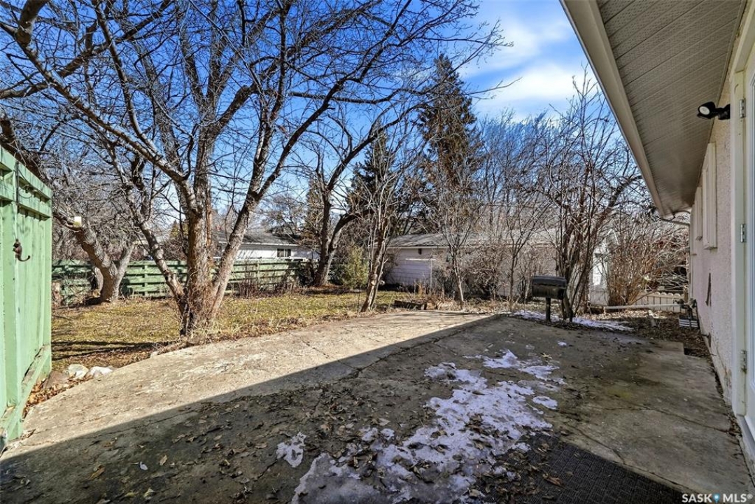 Welcome to this well maintained 3 bedroom, 2 bathroom home situated on a quiet corner lot in Regina's desirable south end. Ideally located close to schools, parks, public transit, and a wide range of amenities, this property offers a fantastic opportunity for a growing family seeking both space and convenience. The main floor welcomes you with a bright and spacious living room featuring large front facing windows that flood the space with natural light, along with hardwood flooring and a cozy wood burning fireplace. The kitchen and adjoining dining area provide an excellent setting for everyday living and entertaining, with direct access to the backyard for seamless indoor-outdoor living. Down the hall, you'll find the primary bedroom, two additional well sized bedrooms, and a 4 piece bathroom. The developed lower level offers a generous family room, a separate den, a convenient 2 piece bathroom, laundry area, as well as storage and utility space. Outside you will find the mature, fully fenced backyard featuring a patio area and established trees and shrubs.