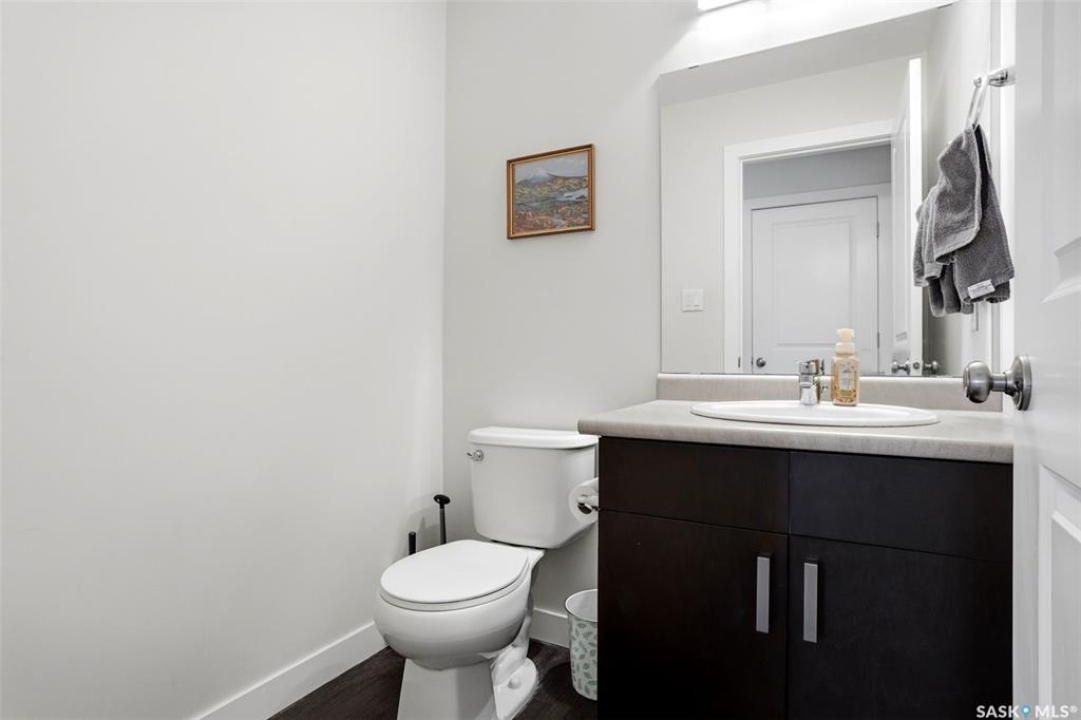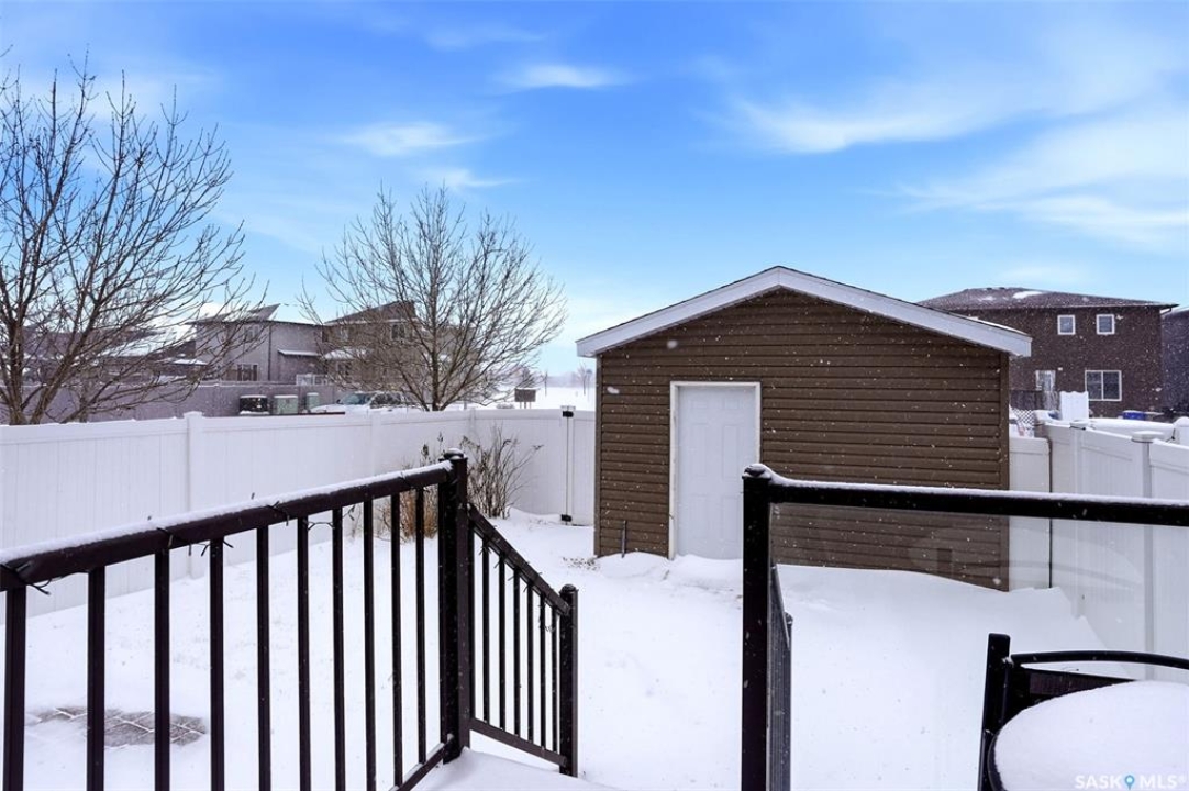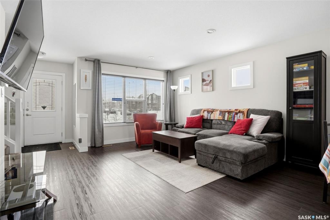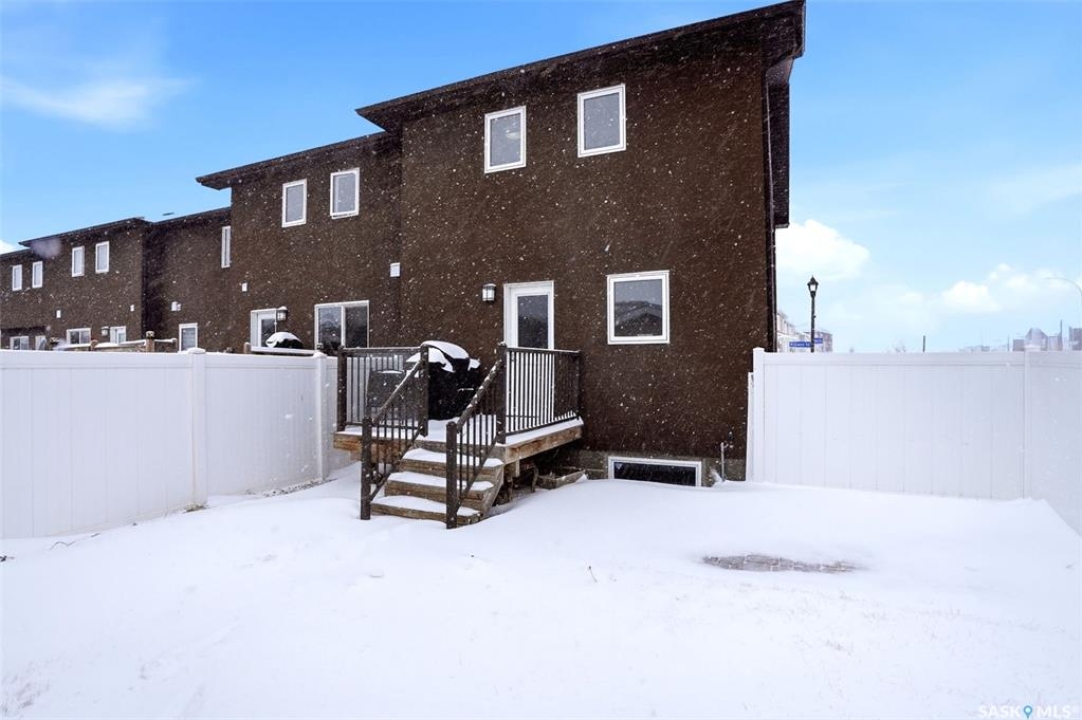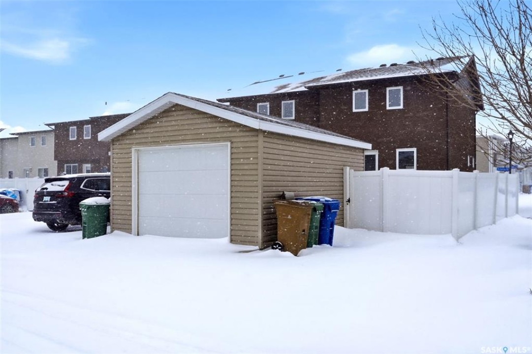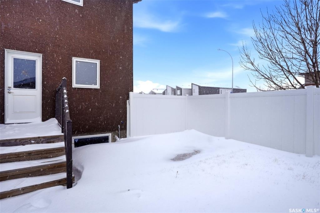 Welcome to 5500 McKenna Rd in the highly sought-after Harbour Landing neighbourhood! This bright and inviting 1,321 sq ft two-storey home sits on a premium corner lot, offering the rare advantage of having only one attached neighbour for added privacy and space. Step inside the warm, open-concept main floor that's perfect for everyday living and entertaining. The spacious living room seamlessly flows into the dining area and kitchen, where you'll find an abundance of cabinetry, generous counter space, and a large central island — ideal for meal prep or gathering with family and friends. Conveniently located on the main level, you'll also enjoy a laundry room tucked just off the kitchen and a handy 2-piece powder room. Upstairs, the primary bedroom offers a peaceful retreat with its own 3-piece ensuite and generous walk-in closet. Two additional well-sized bedrooms provide flexibility for family, guests, or a home office, while a full 4-piece bathroom serves the upper level. Outside, enjoy your professionally landscaped backyard complete with a beautiful stone patio — the perfect setting for summer BBQs and outdoor entertaining. The fully fenced yard offers privacy and peace, while the detached single-car garage provides secure parking and extra storage. Located in one of Regina's most desirable south-end communities, this home is just minutes from shopping centres, parks, schools, and all the amenities Harbour Landing has to offer. Ready for your personal touch — especially with the undeveloped basement waiting to be finished exactly how you envision!