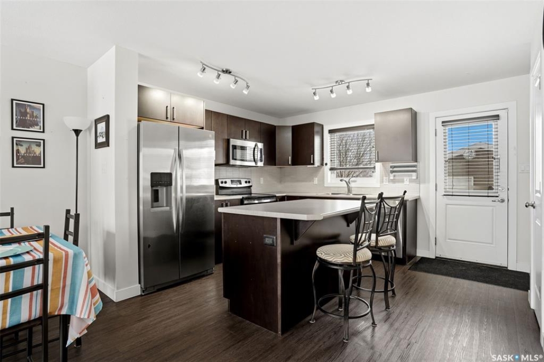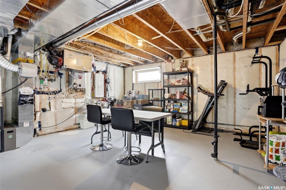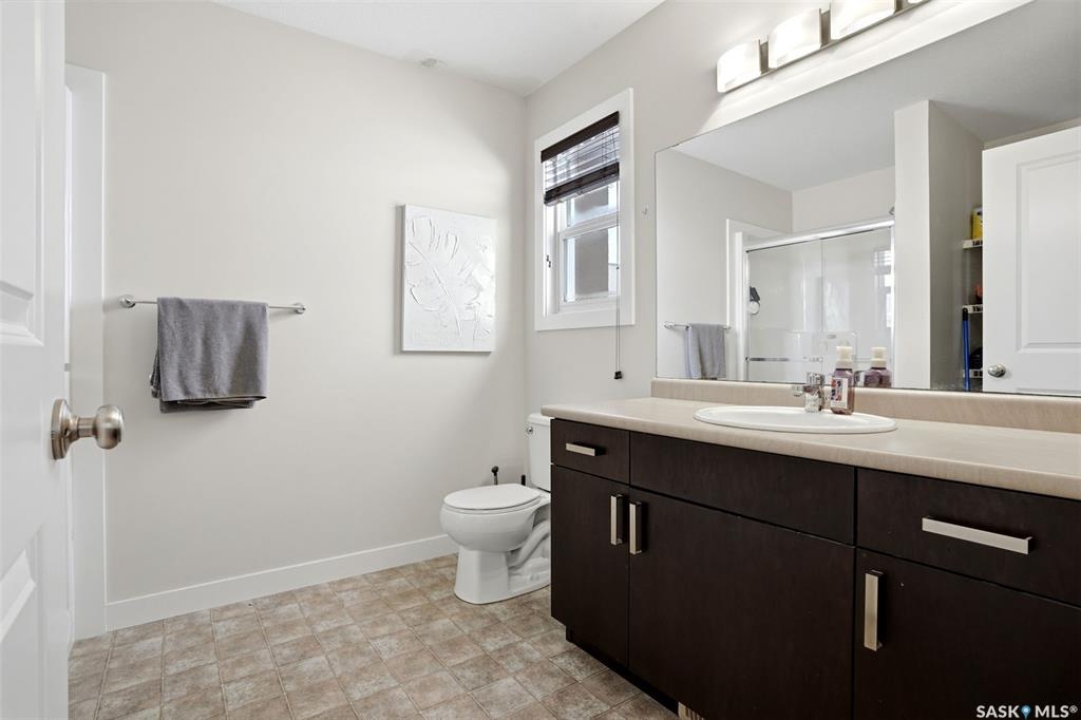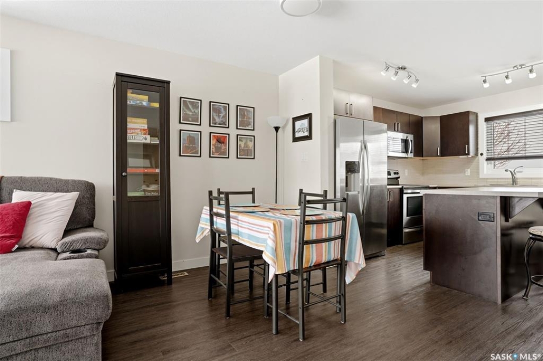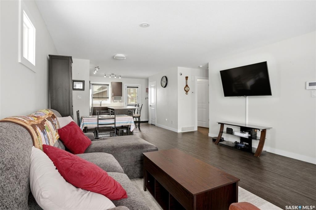 Welcome to 5500 McKenna Rd in the highly sought-after Harbour Landing neighbourhood! This bright and inviting 1,321 sq ft two-storey home sits on a premium corner lot, offering the rare advantage of having only one attached neighbour for added privacy and space. Step inside the warm, open-concept main floor that's perfect for everyday living and entertaining. The spacious living room seamlessly flows into the dining area and kitchen, where you'll find an abundance of cabinetry, generous counter space, and a large central island — ideal for meal prep or gathering with family and friends. Conveniently located on the main level, you'll also enjoy a laundry room tucked just off the kitchen and a handy 2-piece powder room. Upstairs, the primary bedroom offers a peaceful retreat with its own 3-piece ensuite and generous walk-in closet. Two additional well-sized bedrooms provide flexibility for family, guests, or a home office, while a full 4-piece bathroom serves the upper level. Outside, enjoy your professionally landscaped backyard complete with a beautiful stone patio — the perfect setting for summer BBQs and outdoor entertaining. The fully fenced yard offers privacy and peace, while the detached single-car garage provides secure parking and extra storage. Located in one of Regina's most desirable south-end communities, this home is just minutes from shopping centres, parks, schools, and all the amenities Harbour Landing has to offer. Ready for your personal touch — especially with the undeveloped basement waiting to be finished exactly how you envision!