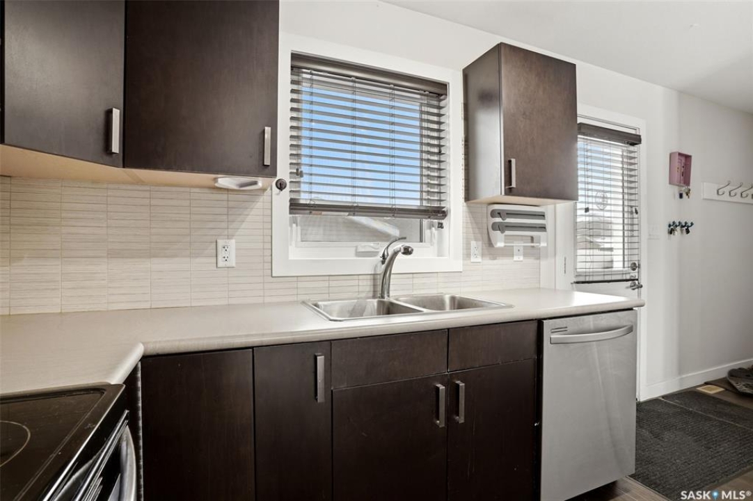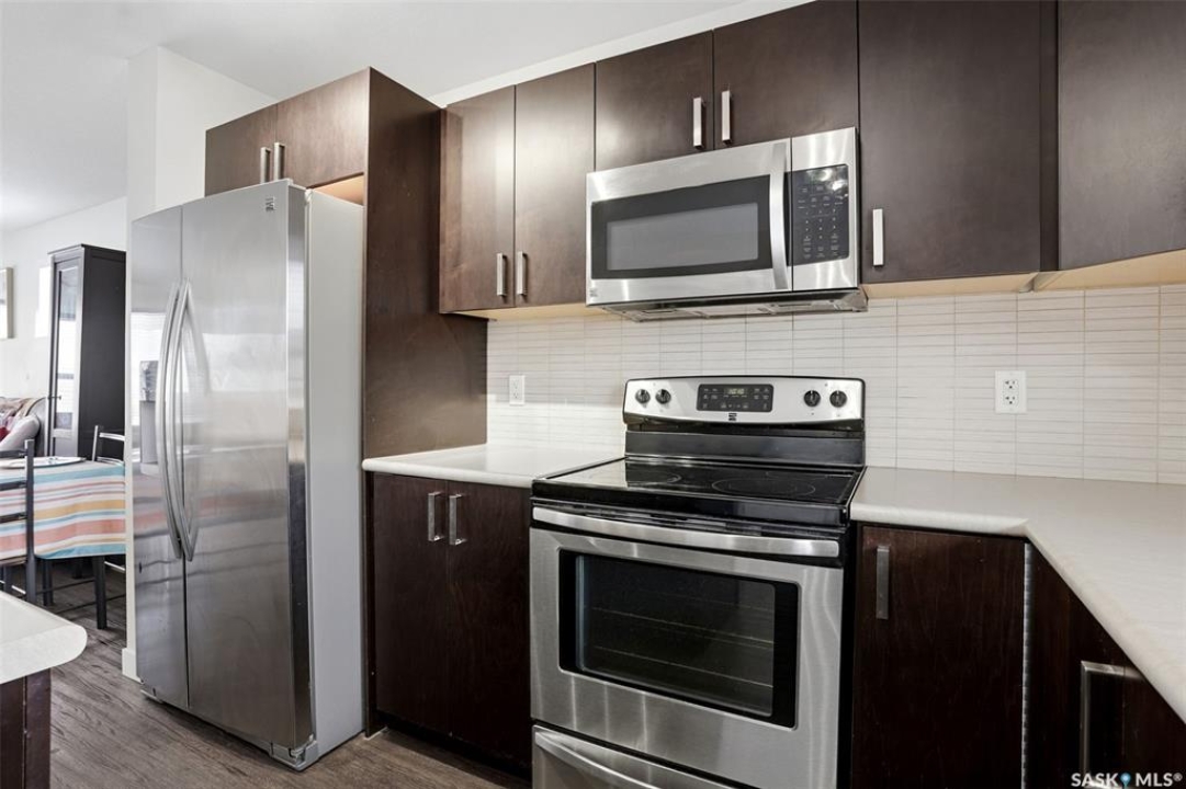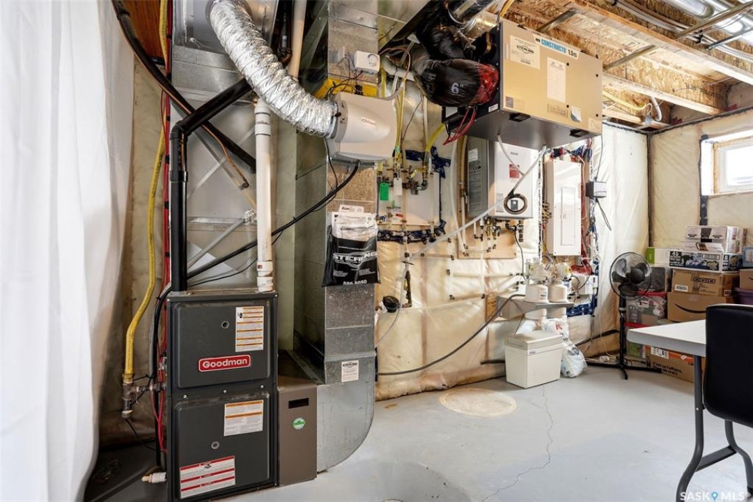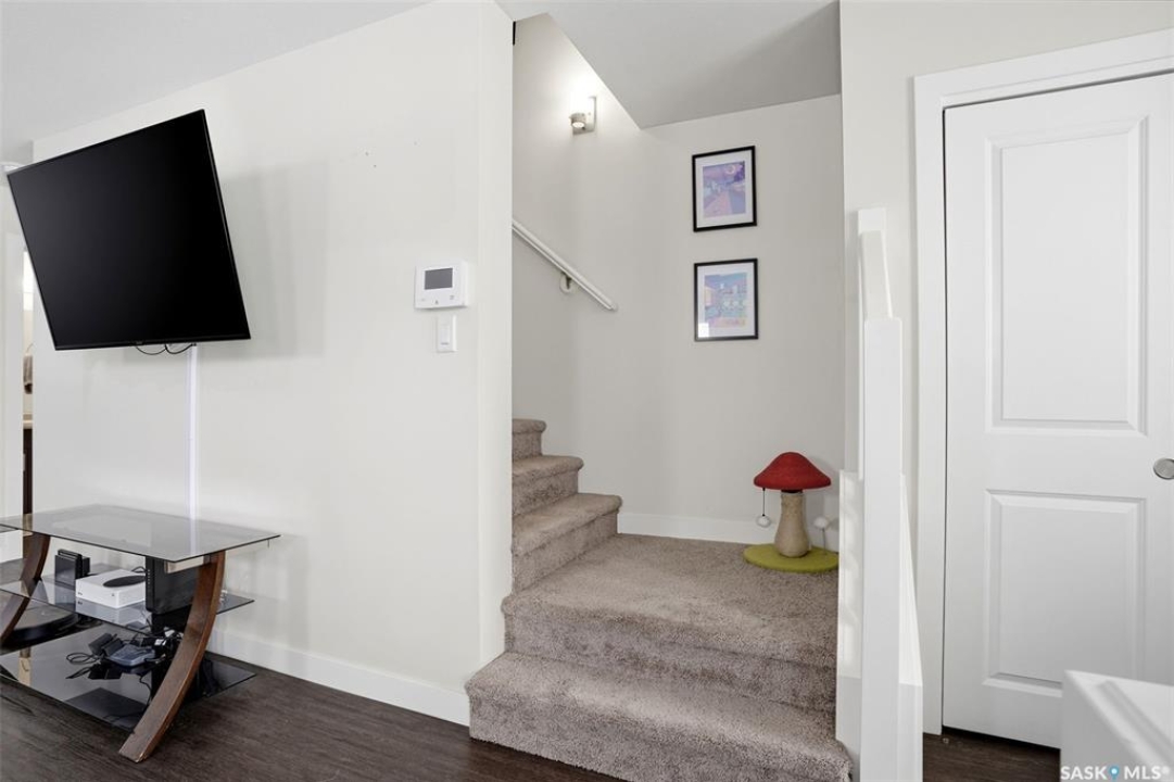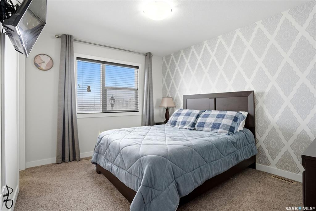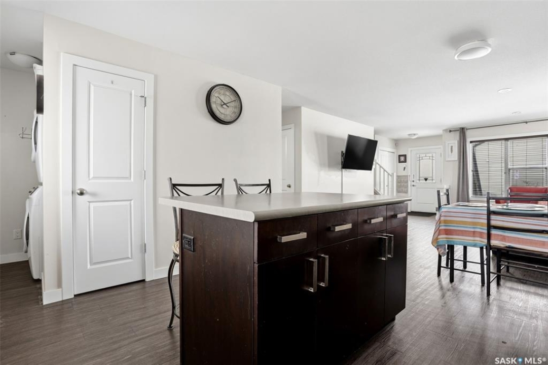Welcome to 5500 McKenna Rd in the highly sought-after Harbour Landing neighbourhood! This bright and inviting 1,321 sq ft two-storey home sits on a premium corner lot, offering the rare advantage of having only one attached neighbour for added privacy and space. Step inside the warm, open-concept main floor that's perfect for everyday living and entertaining. The spacious living room seamlessly flows into the dining area and kitchen, where you'll find an abundance of cabinetry, generous counter space, and a large central island — ideal for meal prep or gathering with family and friends. Conveniently located on the main level, you'll also enjoy a laundry room tucked just off the kitchen and a handy 2-piece powder room. Upstairs, the primary bedroom offers a peaceful retreat with its own 3-piece ensuite and generous walk-in closet. Two additional well-sized bedrooms provide flexibility for family, guests, or a home office, while a full 4-piece bathroom serves the upper level. Outside, enjoy your professionally landscaped backyard complete with a beautiful stone patio — the perfect setting for summer BBQs and outdoor entertaining. The fully fenced yard offers privacy and peace, while the detached single-car garage provides secure parking and extra storage. Located in one of Regina's most desirable south-end communities, this home is just minutes from shopping centres, parks, schools, and all the amenities Harbour Landing has to offer. Ready for your personal touch — especially with the undeveloped basement waiting to be finished exactly how you envision!