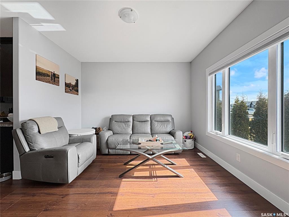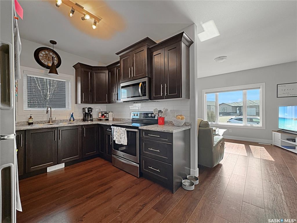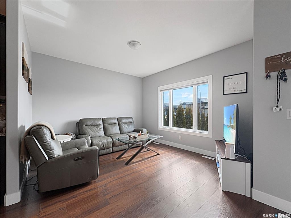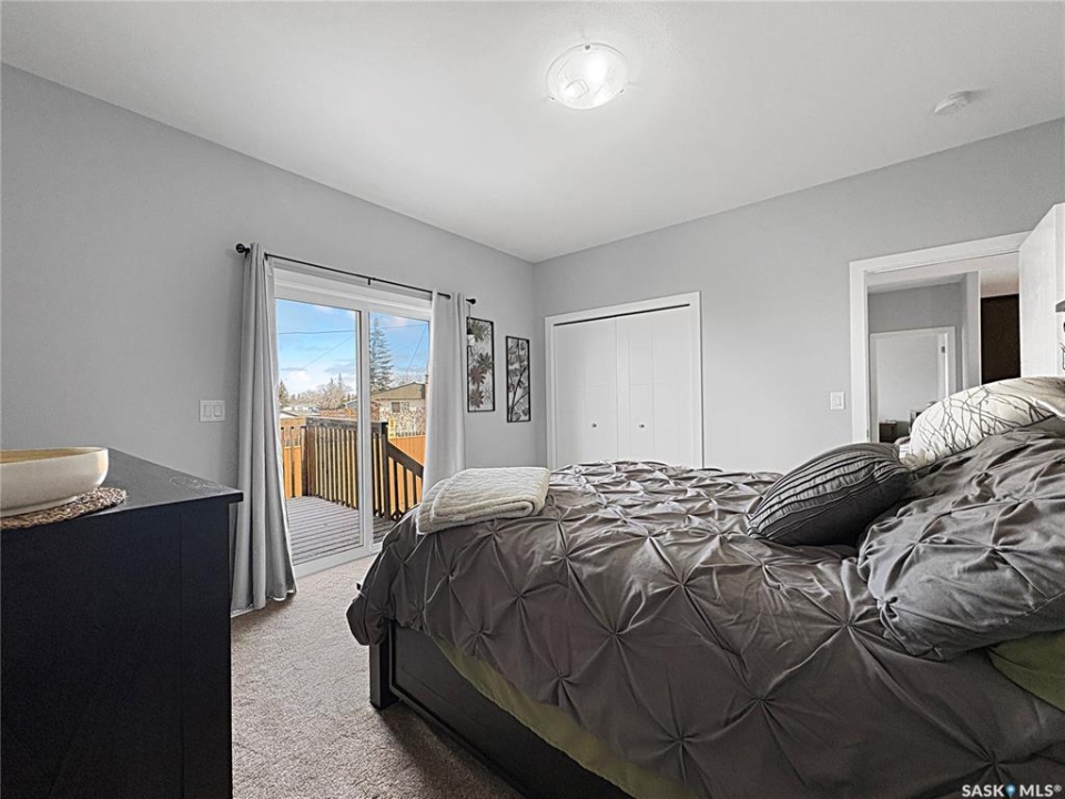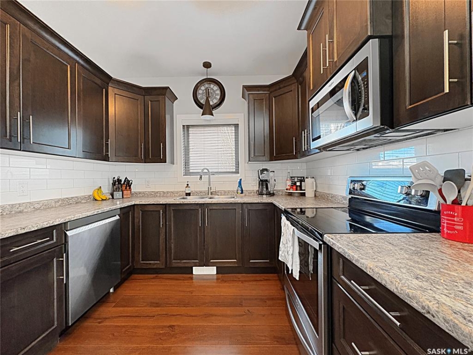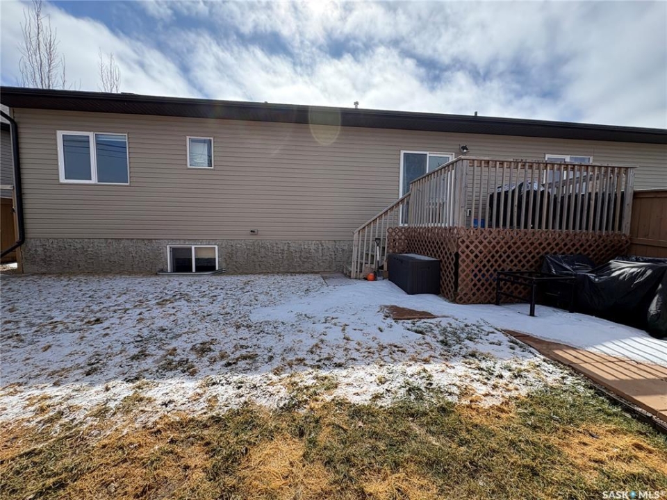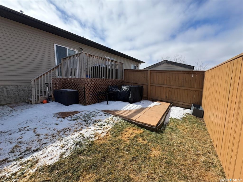 Welcome to this beautifully maintained 4 bedroom, 2 bath attached home in the highly sought after community of Battleford. Perfect for families or buyers who love comfortable, functional living. The home owners have recently added heating to the attached garage and installed a brand new front door and living room window. Step inside to an inviting open-concept main floor designed for everyday living and entertaining. The kitchen showcases warm, rich wood cabinetry with ample storage and workspace, seamlessly flowing into the dining and living areas. Convenient main floor laundry adds to the home's practical layout. The main level features two spacious bedrooms, including a primary bedroom with direct access to the backyard deck through lovely patio doors - ideal for your morning coffee or evening unwind. The second bedroom includes a walk-in closet. A well appointed 4 piece bathroom completes this level. Downstairs you'll find two more generously sized bedrooms, another 4 piece bathroom and a comfortable recreation/tv room - perfect for family movie nights. Large bright windows throughout the home create an airy, welcoming feel on both levels. Outside you'll enjoy a fully fenced yard with large shed and lovely deck. The home also features air conditioning for those warm Saskatchewan summers! This is a fantastic opportunity to own a move-in ready home located on a quiet cul-de-sac in Battleford. Don't miss your chance to make this wonderful property your own.