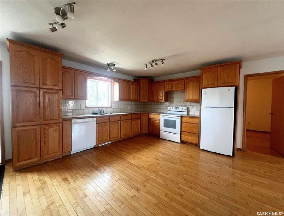 Sturdy, practical, welcoming, understated and affordable, this 2 bedroom, 2 bathroom 2008 bungalow is a great choice for a single person, a couple, or a young family starting out. The property features an oversize single attached garage, and the fenced yard has garden boxes and is framed in mature shrubs and trees. The exterior of the house features vinyl siding, and the interior hosts 1,144 sq/ft of sensible and relaxed living space with a bright, neutral colour palette. Inside the front door you step onto timeless hardwood flooring, the cheerful kitchen rests to your left and flows into an expansive, seamless open-concept for the main area, providing a blank slate for a desired flow of spaces between dining and living. Off the kitchen is the comfortable primary bedroom, also with hardwood floor, a window to the east-facing front of the house, and a cozy and private 4-piece ensuite with ceramic-tile floors and a walk-in closet. Across the house from here is the secondary, carpeted bedroom, while the main 4-piece bathroom with extra cabinet storage sits nearby. The laundry room is situated towards the back of the house and hosts the water heater, and there is a spacious porch here as well off of the garage that has organization space for outdoor gear. This is a newer build for this area of town and it sits over a crawl space rather than a full basement. Call for more info or to book your own personal showing!