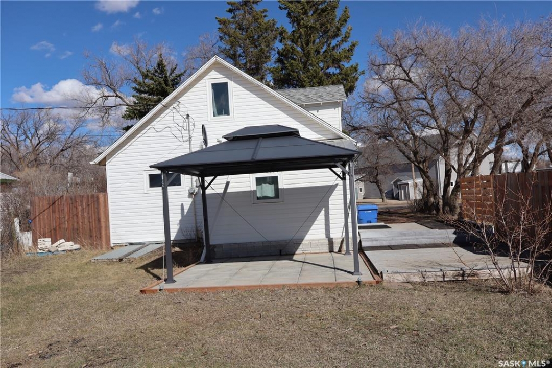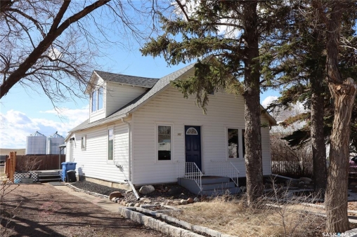 Located in the Town of Rockglen with a fantastic view of the rolling hills! This upgraded home sits on a spacious corner lot. You will love the convenience of main floor laundry in the back porch. The upgraded kitchen has all the modern touches. A bedroom with a large walk-in closet is directly accessed from the kitchen. Next is the fully modern 4-piece bath. The open design concept transcends to the dining room and then the living room. Upstairs will become your personal Oasis! A large bedroom with a new 2-piece bath. And an amazing view of the countryside to enjoy! The home has all new vinyl windows and siding for the best in energy efficiency. In addition, we have the new high efficiency natural gas furnace – complete with central air conditioning and upgraded water heater. The shingles have also been recently replaced. Tasteful landscaping in the yard features a lovely stone design in the front and a multi level deck in the back. The rear of the property is fully fenced. A newer shed will be great outdoor storage room. The Gazebo provides shade for the ultimate of enjoyment. This property has it all! Check it out today!
