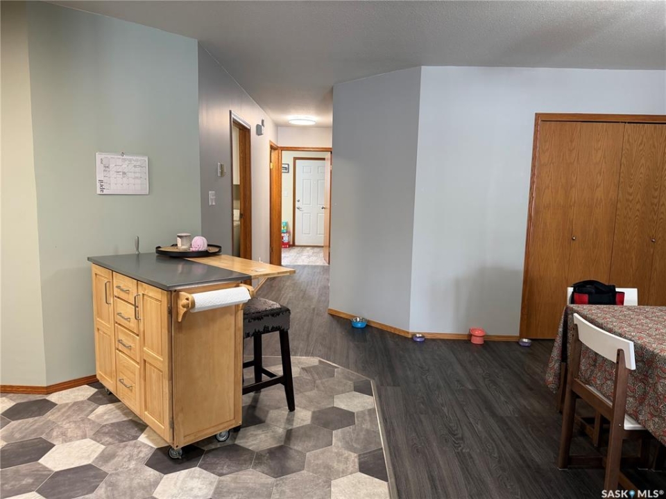 Move in ready creates a comfortable lifestyle in this 1050 sq.ft. main floor living (no stairs) home with single attached garage offering direct entry! This unit was built in 1997 and offers attractive street appeal with concrete drive, alley access and basic backyard space so you can still enjoy a bbq! Open concept design in main living area. Kitchen offers oak cabinets and includes fridge, stove, hood fan and a portable island. Dining room is spacious with a large pantry closet and is adjacent to living room. There are two bedrooms; the primary bedroom boasts a walk in closet and two piece ensuite. The main bathroom has a new toilet installed 2025. This unit offers fresh paint throughout in 2025, new linoleum flooring in kitchen and main bathroom in 2025, remainder of flooring of vinyl plank through living room, dining area and hallways replaced within last few years, light fixtures replaced throughout in 2025 (except main bath). This home offers adequate storage and the ability to still host family gatherings for years to come! Includes Central air and storage shed. Exterior stucco replaced in 2023.