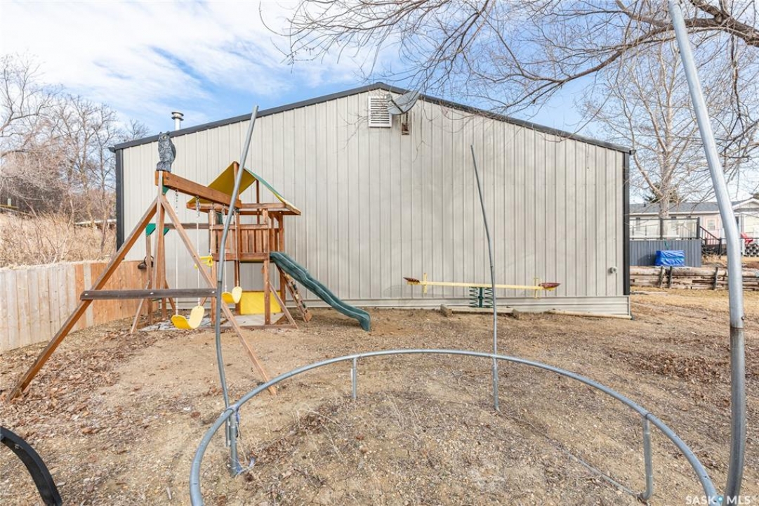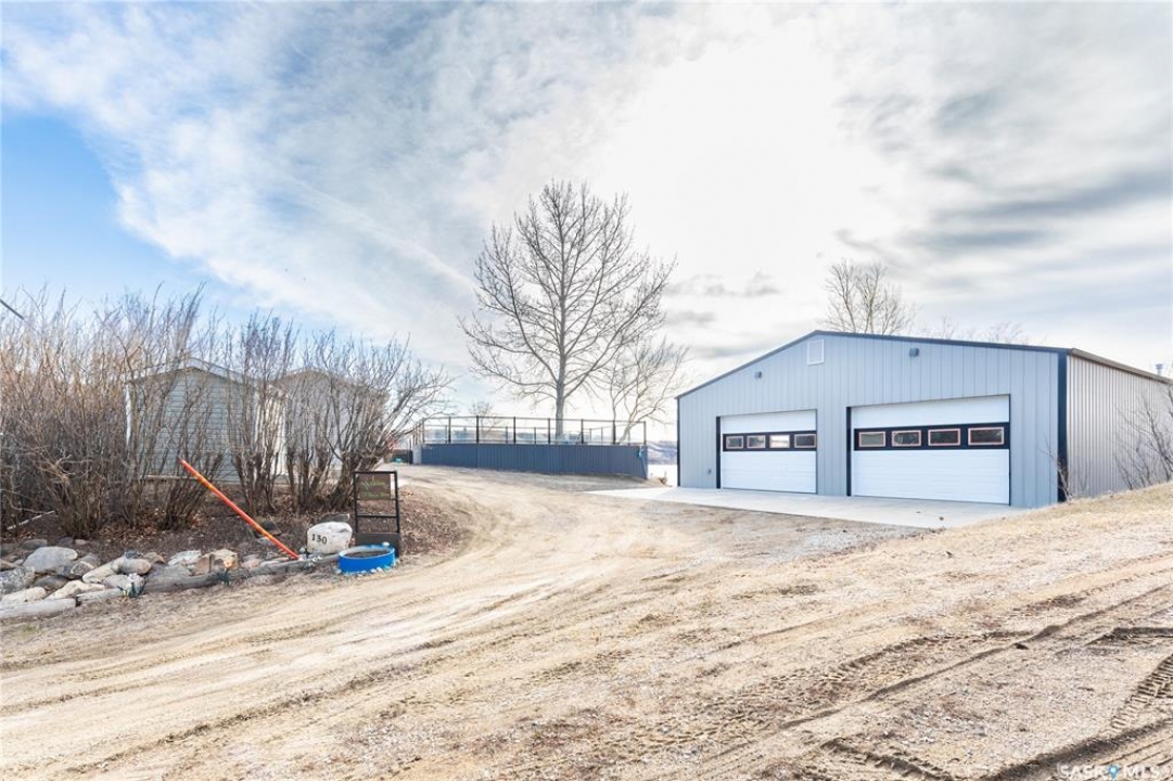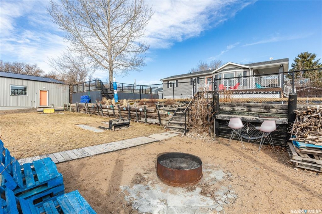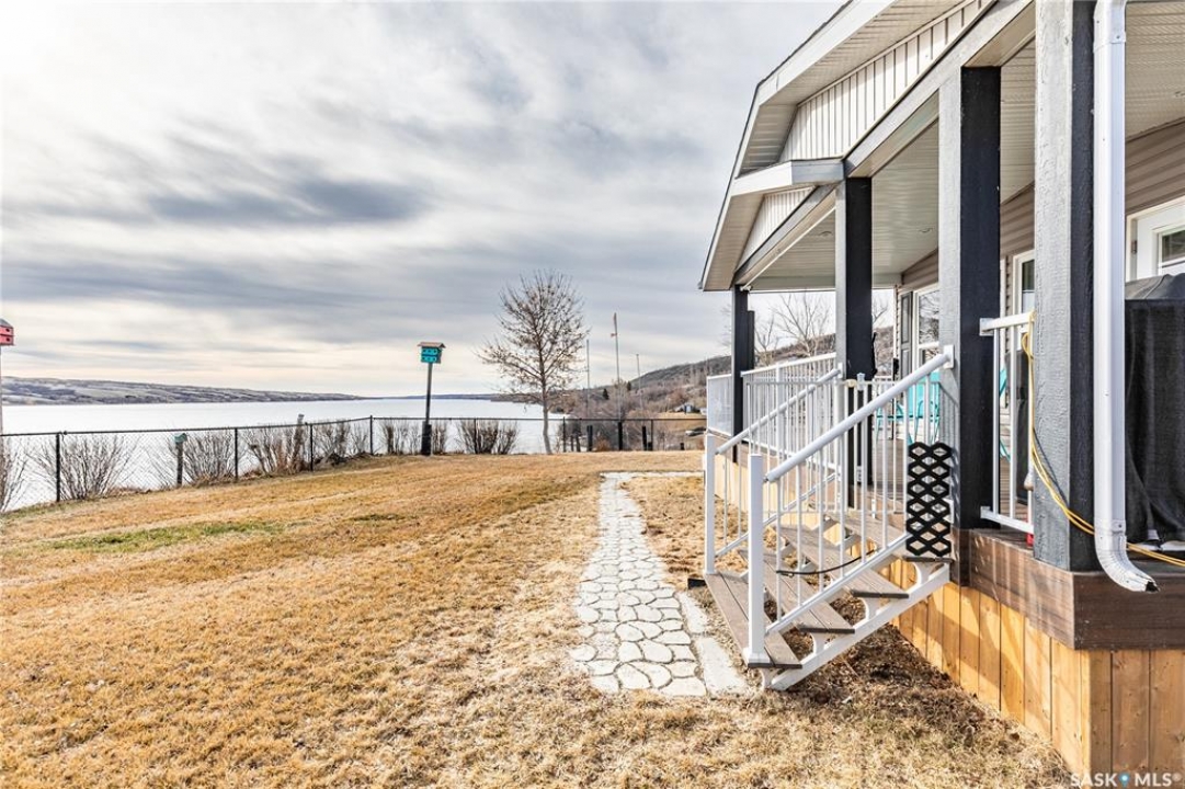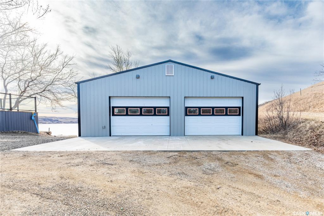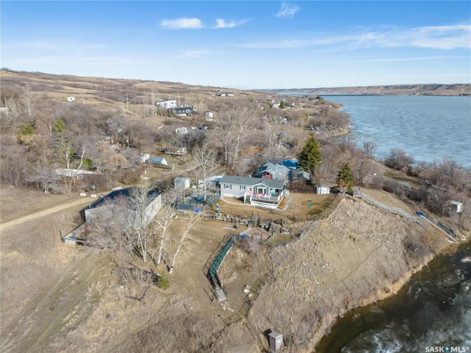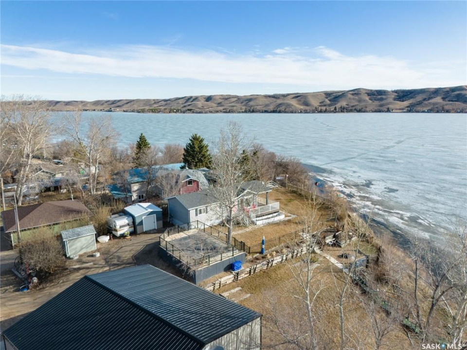 Welcome to your waterfront escape at South Lake, Buffalo Pound-where privacy, comfort, and lake life come together. Situated at the very end of a quiet dead-end road, this property offers exceptional seclusion as it's the last home to the east, making it a rare find for those seeking peace and uninterrupted views. This 2013, 809 SQ/ft mobile home features a bright and inviting layout with 2 bedrooms and a beautifully remodelled 4-piece bathroom (2025). Recent upgrades include new triple-pane windows (January 2026) on the east side of the living room and both bedrooms, enhancing energy efficiency and maximizing those stunning lake views. The home is equipped with reverse osmosis, a stove, built-in dishwasher, washer and dryer, and a newer fridge with a clear-view screen. Step outside and enjoy the wraparound deck spanning two sides of the home-perfect for entertaining or relaxing-with a natural gas BBQ hookup ready to go. The 36 x 40 natural gas heated garage is a standout feature, complete with; LED lighting, 220V plugs, a floor drain, and even a convenient “not so private” 2-piece bathroom. There's ample room for all your vehicles, tools, toys, and even a place to watch the game! Behind the garage, you'll find a 20 x 30 private playground space, along with RV parking that includes a power hookup. The tiered lot is thoughtfully designed with multiple outdoor living areas, including a firepit, horseshoe pit, and steps leading down to the water where a deck pad awaits on the shoreline—perfect for soaking up those summer days. A GPS-marked location is already set for your boat lift, adding to the ease of lakefront living. Additional features include underground sprinklers, one storage shed, and a heated 10 x 20 outdoor pool with its own wraparound deck—ideal for entertaining family and friends. Whether you're looking for a year-round home or the perfect lake retreat, this property delivers lifestyle, location, and unmatched privacy.