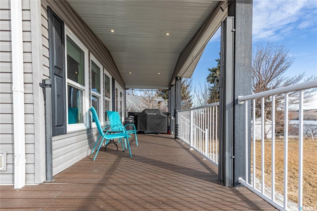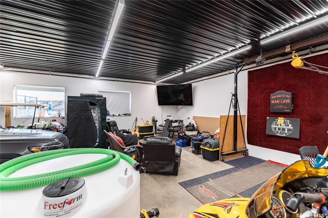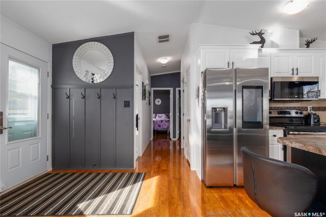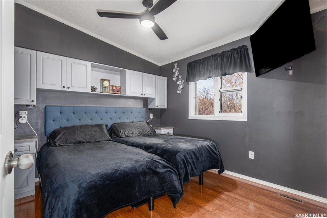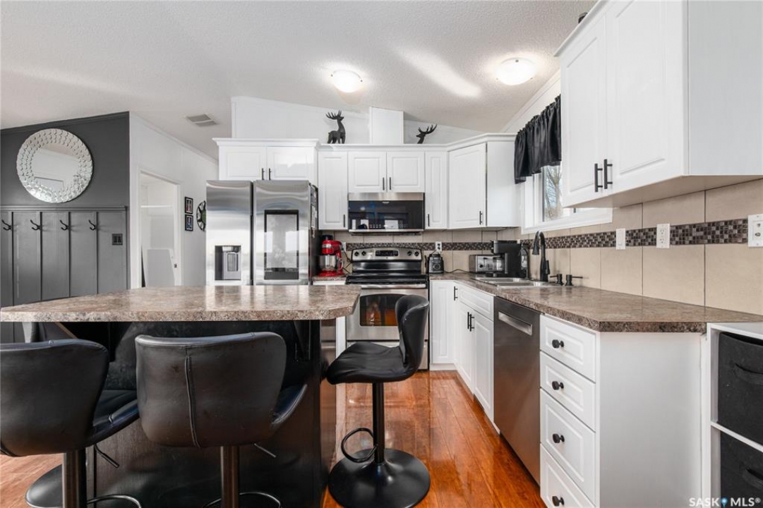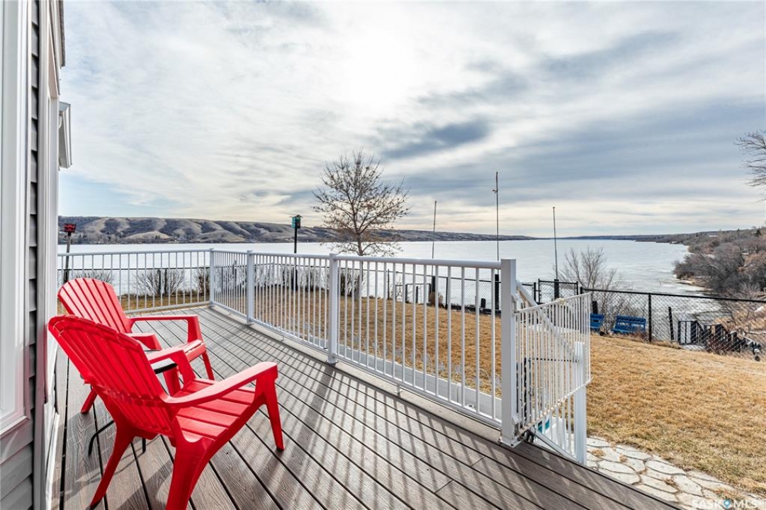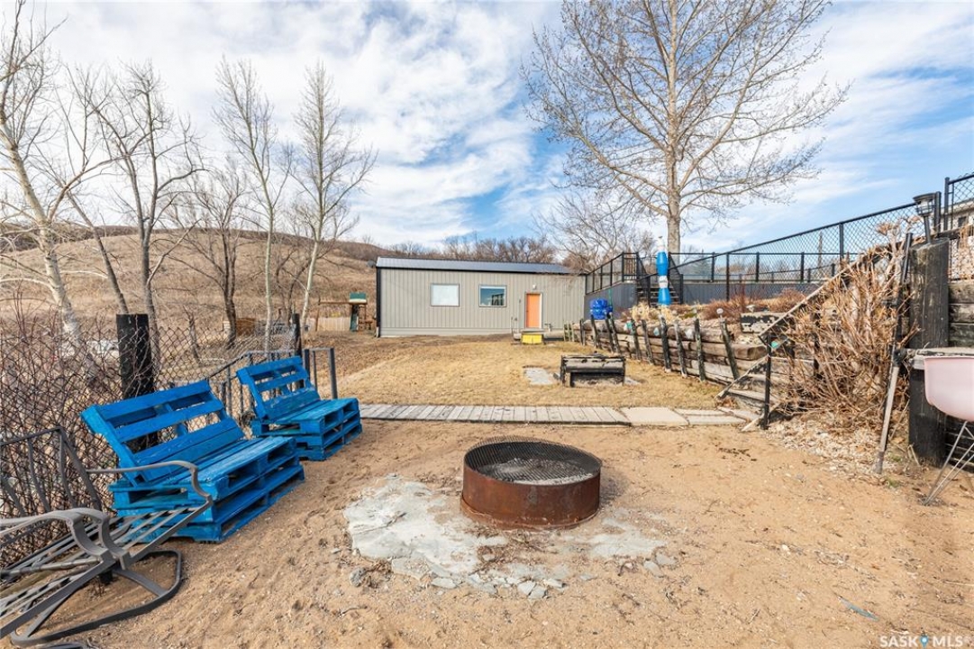 Welcome to your waterfront escape at South Lake, Buffalo Pound-where privacy, comfort, and lake life come together. Situated at the very end of a quiet dead-end road, this property offers exceptional seclusion as it's the last home to the east, making it a rare find for those seeking peace and uninterrupted views. This 2013, 809 SQ/ft mobile home features a bright and inviting layout with 2 bedrooms and a beautifully remodelled 4-piece bathroom (2025). Recent upgrades include new triple-pane windows (January 2026) on the east side of the living room and both bedrooms, enhancing energy efficiency and maximizing those stunning lake views. The home is equipped with reverse osmosis, a stove, built-in dishwasher, washer and dryer, and a newer fridge with a clear-view screen. Step outside and enjoy the wraparound deck spanning two sides of the home-perfect for entertaining or relaxing-with a natural gas BBQ hookup ready to go. The 36 x 40 natural gas heated garage is a standout feature, complete with; LED lighting, 220V plugs, a floor drain, and even a convenient “not so private” 2-piece bathroom. There's ample room for all your vehicles, tools, toys, and even a place to watch the game! Behind the garage, you'll find a 20 x 30 private playground space, along with RV parking that includes a power hookup. The tiered lot is thoughtfully designed with multiple outdoor living areas, including a firepit, horseshoe pit, and steps leading down to the water where a deck pad awaits on the shoreline—perfect for soaking up those summer days. A GPS-marked location is already set for your boat lift, adding to the ease of lakefront living. Additional features include underground sprinklers, one storage shed, and a heated 10 x 20 outdoor pool with its own wraparound deck—ideal for entertaining family and friends. Whether you're looking for a year-round home or the perfect lake retreat, this property delivers lifestyle, location, and unmatched privacy.