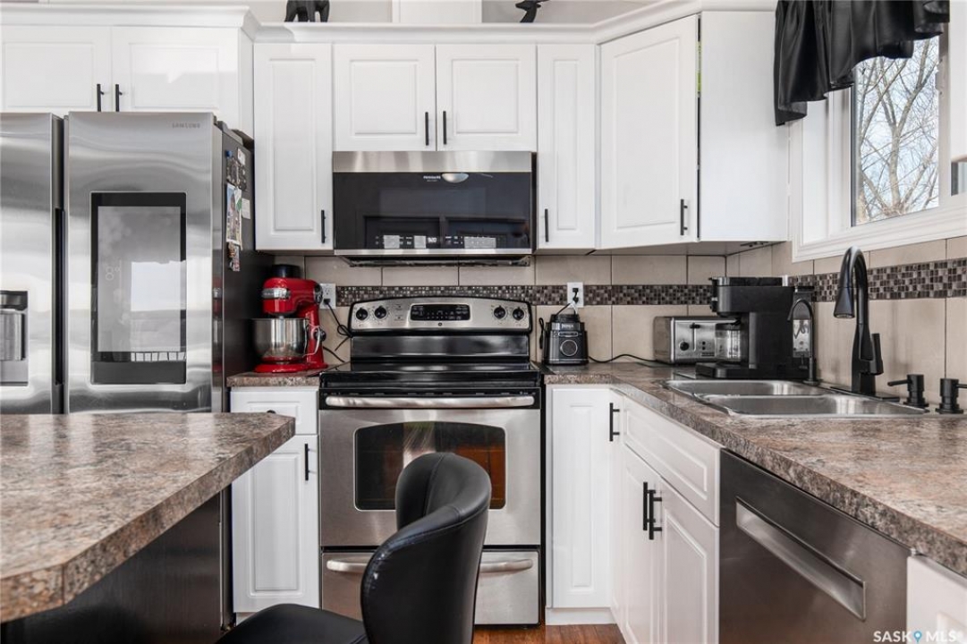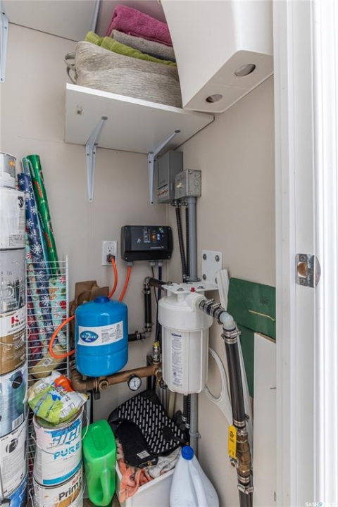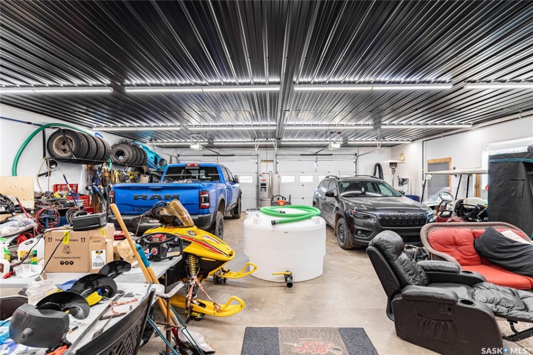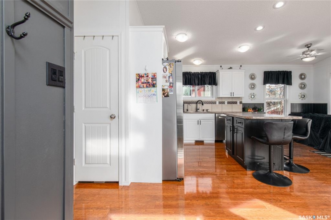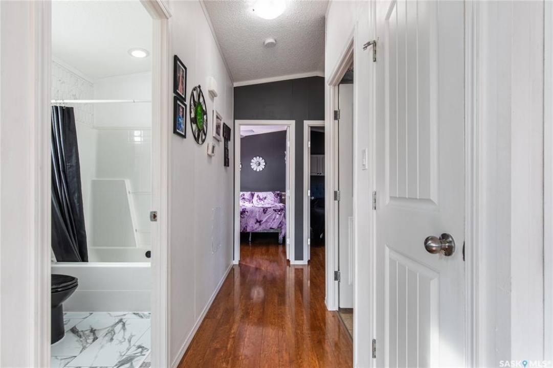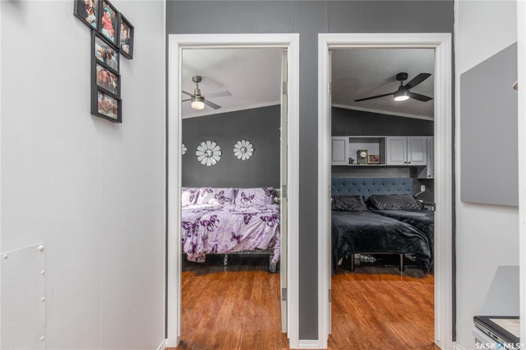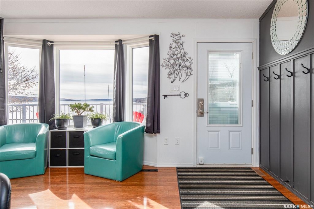 Welcome to your waterfront escape at South Lake, Buffalo Pound-where privacy, comfort, and lake life come together. Situated at the very end of a quiet dead-end road, this property offers exceptional seclusion as it's the last home to the east, making it a rare find for those seeking peace and uninterrupted views. This 2013, 809 SQ/ft mobile home features a bright and inviting layout with 2 bedrooms and a beautifully remodelled 4-piece bathroom (2025). Recent upgrades include new triple-pane windows (January 2026) on the east side of the living room and both bedrooms, enhancing energy efficiency and maximizing those stunning lake views. The home is equipped with reverse osmosis, a stove, built-in dishwasher, washer and dryer, and a newer fridge with a clear-view screen. Step outside and enjoy the wraparound deck spanning two sides of the home-perfect for entertaining or relaxing-with a natural gas BBQ hookup ready to go. The 36 x 40 natural gas heated garage is a standout feature, complete with; LED lighting, 220V plugs, a floor drain, and even a convenient “not so private” 2-piece bathroom. There's ample room for all your vehicles, tools, toys, and even a place to watch the game! Behind the garage, you'll find a 20 x 30 private playground space, along with RV parking that includes a power hookup. The tiered lot is thoughtfully designed with multiple outdoor living areas, including a firepit, horseshoe pit, and steps leading down to the water where a deck pad awaits on the shoreline—perfect for soaking up those summer days. A GPS-marked location is already set for your boat lift, adding to the ease of lakefront living. Additional features include underground sprinklers, one storage shed, and a heated 10 x 20 outdoor pool with its own wraparound deck—ideal for entertaining family and friends. Whether you're looking for a year-round home or the perfect lake retreat, this property delivers lifestyle, location, and unmatched privacy.