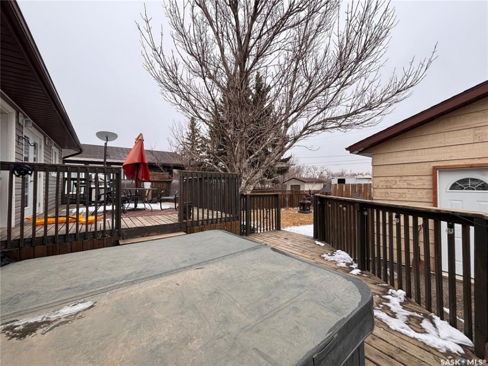 Welcome to this spacious 1,176 sq ft family home offering an impressive 6 bedrooms and 3 bathrooms, perfectly located near the elementary school. Situated on a large 7,700 sq ft lot, this property provides plenty of space both inside and out. The main floor features a bright and inviting living room with large windows, flowing seamlessly into the eat-in kitchen. Garden doors lead to a tiered deck complete with a hot tub—ideal for relaxing or entertaining. A convenient back porch offers excellent pantry storage. Down the hall, you'll find three well-sized bedrooms, a full 4-piece bathroom, and a primary bedroom with its own 2-piece ensuite. The basement has seen several updates, including drywall and carpet, and offers a generous family room—perfect for gatherings or movie nights. This level also includes three additional bedrooms, a 3-piece bathroom, and a utility room with washer and dryer. The furnace and water heater have been updated for added peace of mind. Outside, enjoy the fully fenced, oversized yard with RV parking and a 24' x 30' detached garage. Numerous updates over the years include fencing, windows, water heater, and more. This home offers incredible space and functionality for a growing family—don't miss your chance to view!