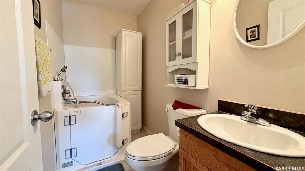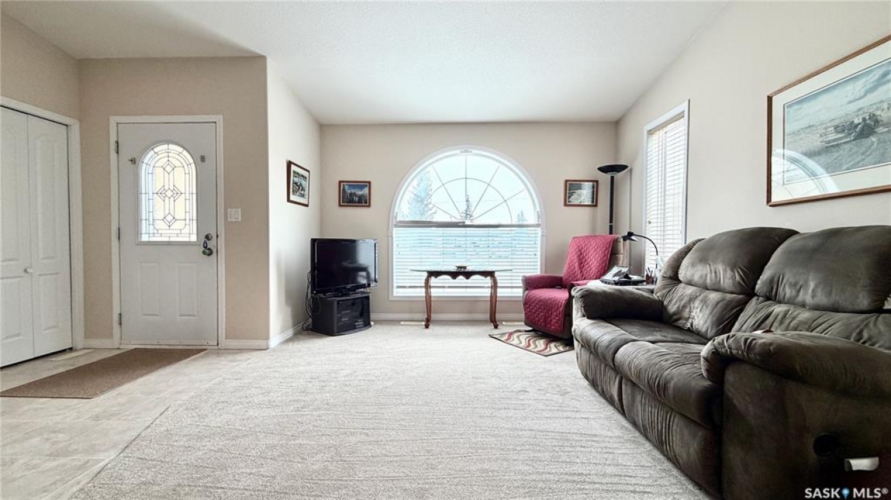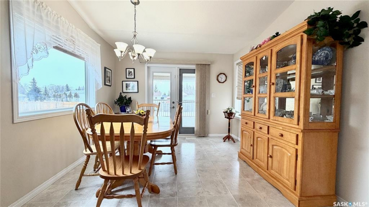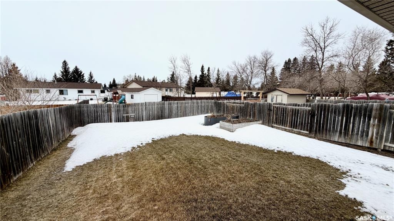 In a market with extremely limited supply, this semi-detached bungalow townhouse condo in Lanigan offers both comfort and opportunity. Located in the heart of Saskatchewan's potash country, surrounded by three major mines and a newly announced power station, the area is poised for major growth with increasing demand for housing. With very few homes available in this price range within a 100 km radius, this is a rare chance to get into a rising market. (ZERO CONDO FEES - Owners dissolving condo into semi-detached single family). The home features a single attached garage, double driveway, and additional rear parking, all set on a massive fully fenced 40 x 180 lot. Enjoy the covered deck with natural gas BBQ hookup, perfect for relaxing or entertaining. Inside, a spacious foyer and mudroom off the garage include laundry and storage. The main floor offers a bright living room, timeless oak kitchen with a large island and pot drawers, walk-in pantry, and a generous dining area with deck access. Upstairs includes two large bedrooms and two full bathrooms, including a spacious primary with its own ensuite. The three-quarter finished basement adds a huge family room, two additional bedrooms, a three-piece bath (shower not installed but on site and roughed in), and 200 sq ft of undeveloped space. Lanigan offers a hospital, rec centre, pool, and full amenities, plus easy access to lake country. This is more than a home—it's an investment in a growing community.