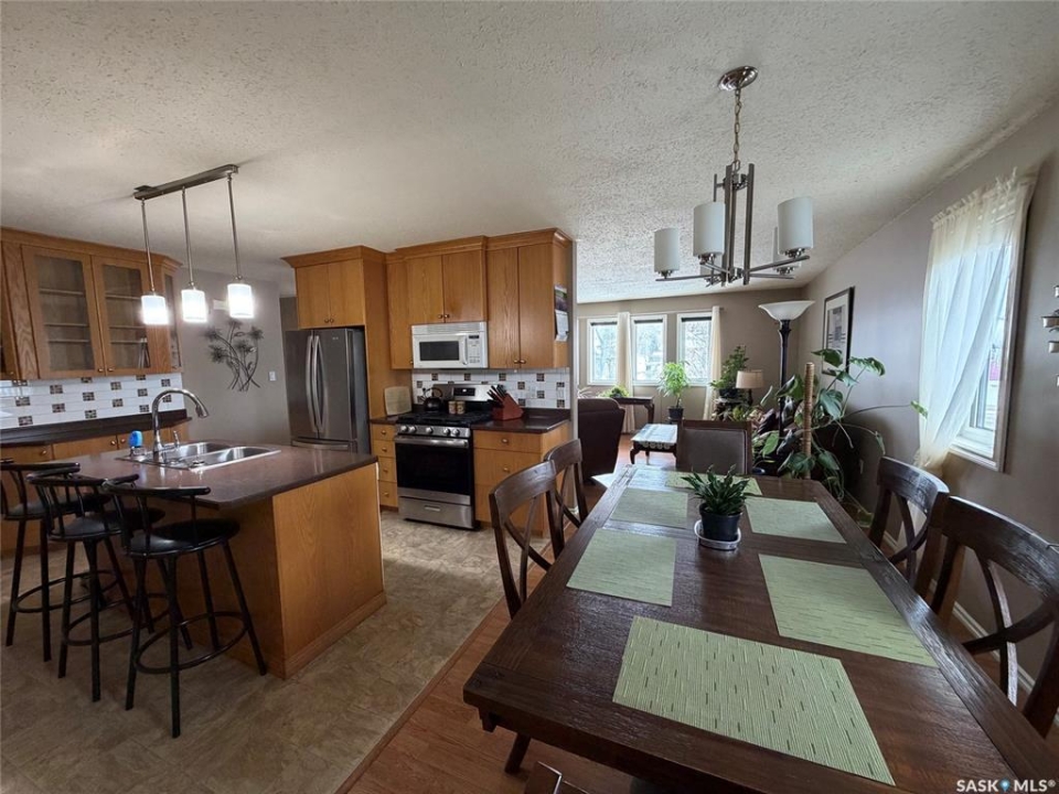 This beautifully appointed family home is waiting for the next owners! With over 1300 square feet of bright living space on the main level, you also have plenty of family space in the basement. The 4-bedroom, 3-bathroom layout also features main floor laundry, an office, direct entry from the attached garage, along with a spacious kitchen, dining room and living room. Situated on a corner lot just two streets from Spiritwood's busy Main Street, you are off the busy streets but walkable to all the amenities! The basement includes a large family area, a sizeable bedroom, a bathroom and large 5' crawl space for organized storage. The attached garage has propane heat which can be converted to natural gas, and comes with sturdy storage shelving built in. A large shed in the partially fenced back yard is constructed of fire-resistant plywood and is built atop geo-cloth to prevent undergrowth creep. Perennials and a garden space complete the back yard oasis, while the front yard has curb appeal galore with a stone walkway, shrubs and a welcoming lawn. The underground sprinklers keep the lawn green while being situated to also keep the shrubs watered. Book your showing today and make this gorgeous family home your own! Member only comments: All measurements to be verified by Buyer. New flooring for complete main level area (or basement) is still boxed and in the basement, comes with the home. In-floor heat is in place for the basement but not currently functional. Heater in garage is propane but can be converted to natural gas. New sump pump in basement is plumbed to pump out onto the rocks, with valve to prevent back-flow. Fridge and freezer in the garage stay, three-piece leather furniture in basement negotiable, kitchen table negotiable, furniture in sewing room negotiable (not sewing machine