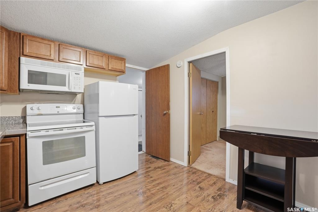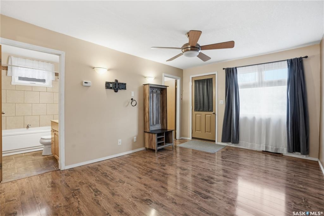Are you looking for quiet place to call home? This charming bungalow is situated on a quiet street with a green space behind you. This home boasts excellent curb appeal as you arrive and pride of ownership shows throughout. Boasting 2 bedrooms, 1 bathroom and 720 sq.ft. - making this an excellent revenue property or first time buyer's home. Heading inside you are greeted by a spacious living room. Next we find a good sized bedroom and an updated 4 piece bathroom featuring beautiful tile work and a jet tub. Next we find a spacious kitchen with lots of cabinet space and the option to have an eat-in dining table. From there we find a good sized primary bedroom with 2 closets. Off the back of the home we find a mudroom with access to the backyard. Heading downstairs we have a well put together and dry basement with laundry and lots of storage space. Heading outside we have a fully fenced yard and 2 off-street parking spots in the back. This unique location almost feels park like and will show you a slower pace of life. Quick possession is available. Reach out today to book your viewing!