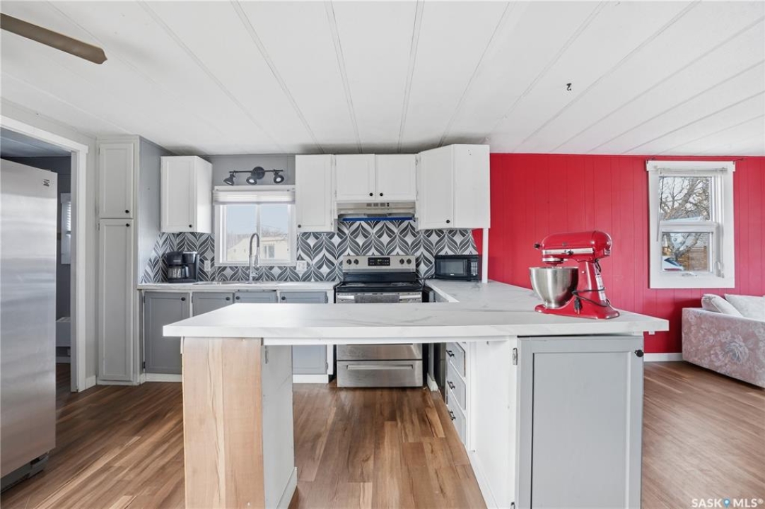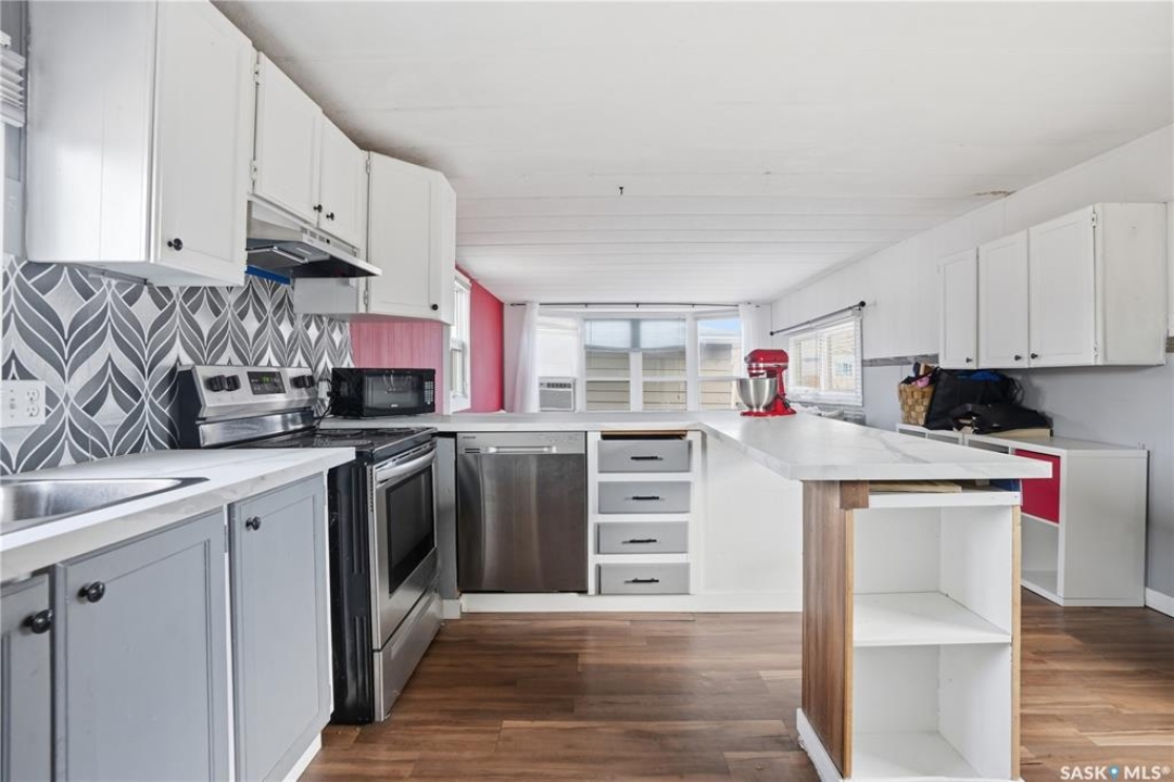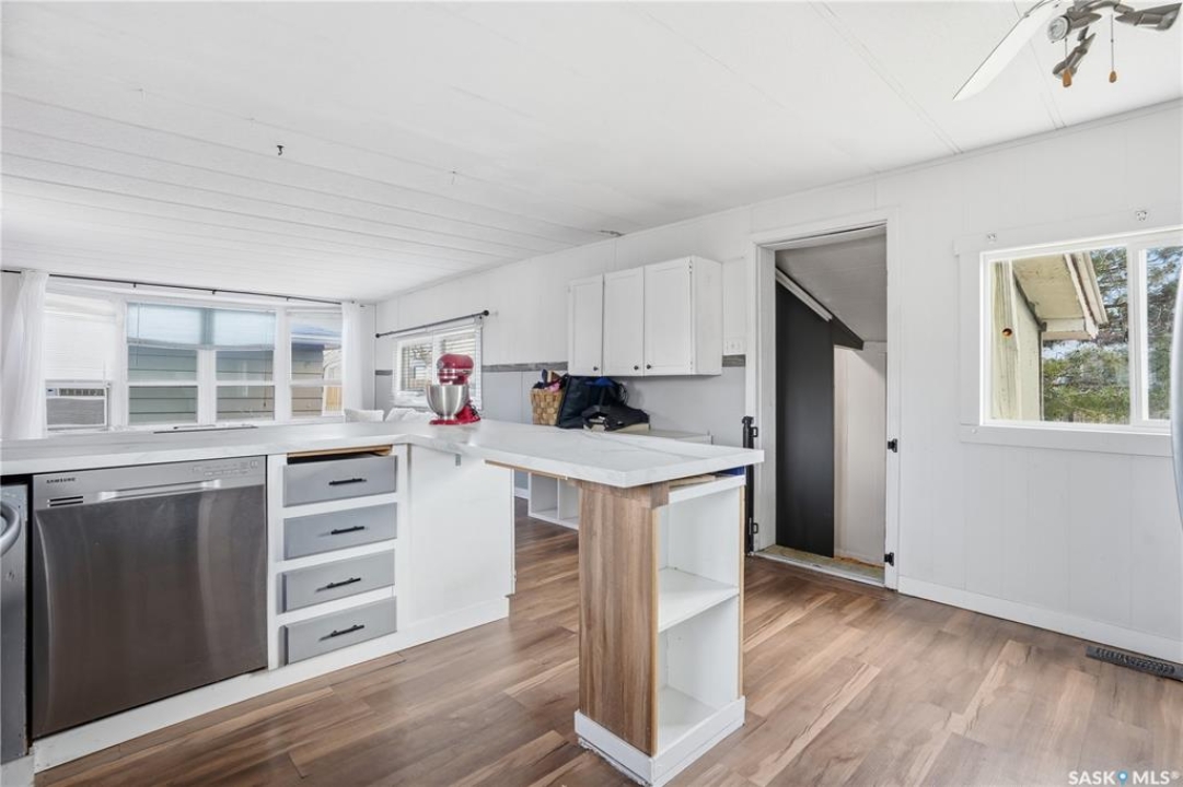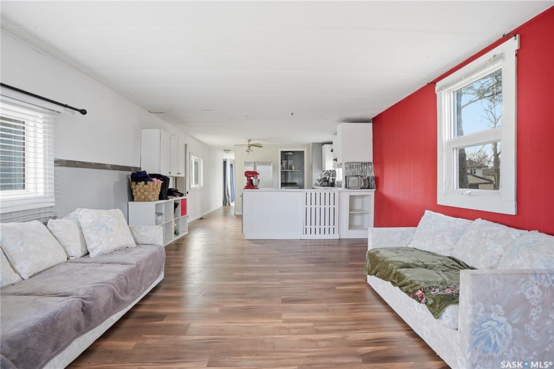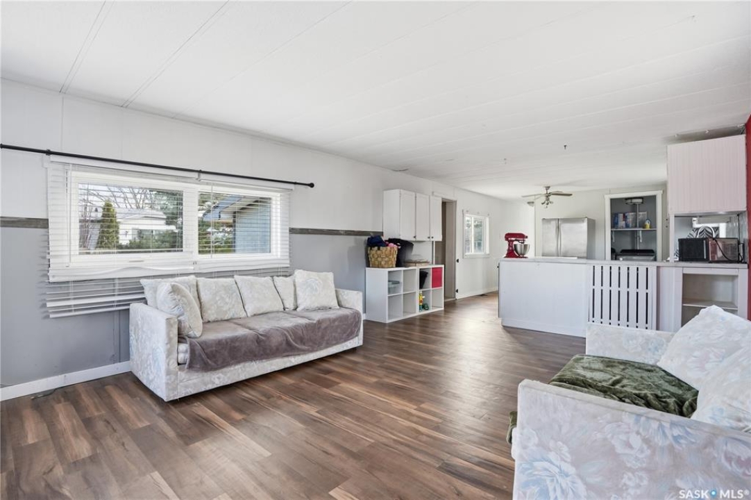 Are you looking for easy living? This mobile home is sitting on one of the largest corner yards in Caronport. As you pull up you will notice your single car detached garage (14'x24') with power and a garage door opener. Heading inside you are greeted by a large mudroom with lots of storage. We then find a spacious, updated U-shaped kitchen with lots of counter space and a stainless steel appliance package. Towards the front of this home we find a a spacious living room with lots of natural light. Off the kitchen there is a large laundry room with space for a pantry. Down the hall we find a huge bedroom with a large closet as well as the primary bedroom with direct access to the 4 piece bathroom with an updated shower. Outside, you have a large fully fenced yard, a shed and an off street parking spot. Quick possession is available. Reach out today to book your viewing!
