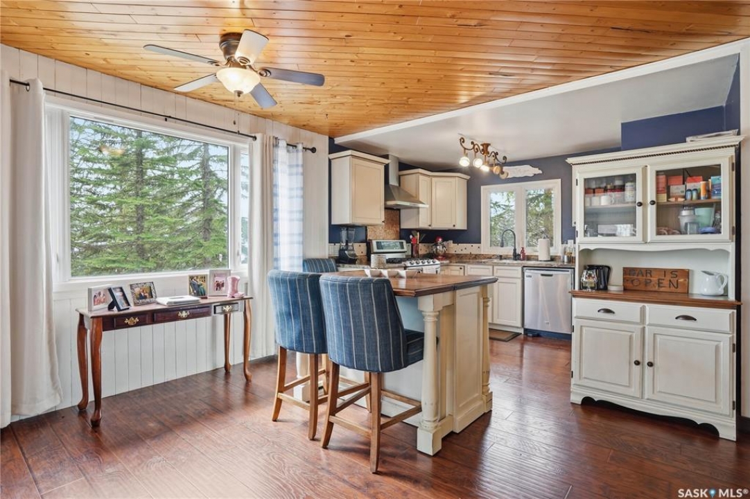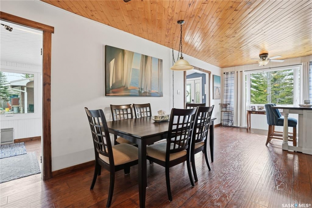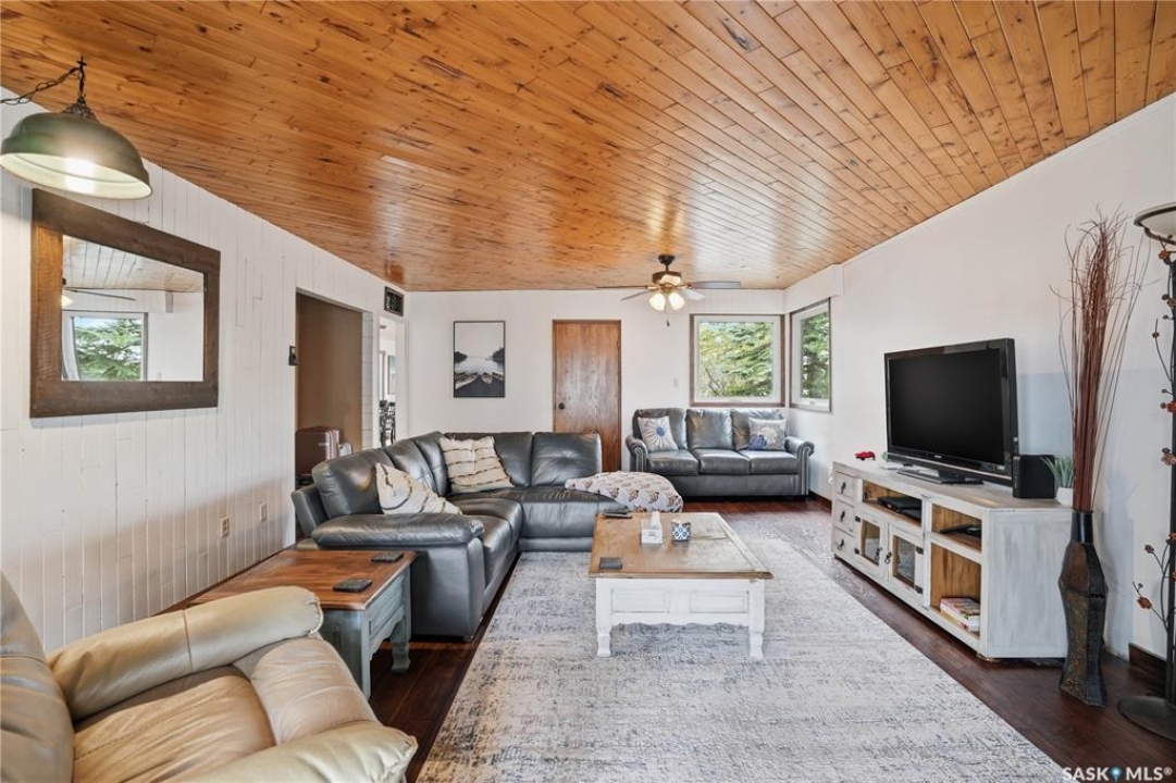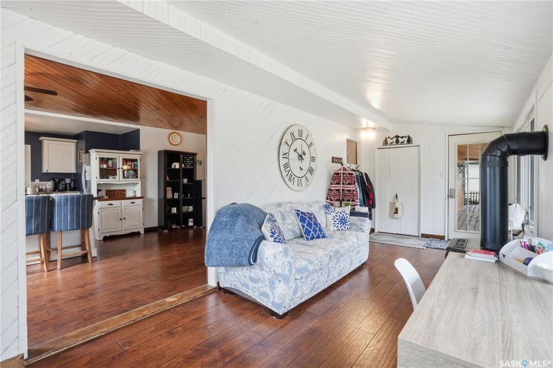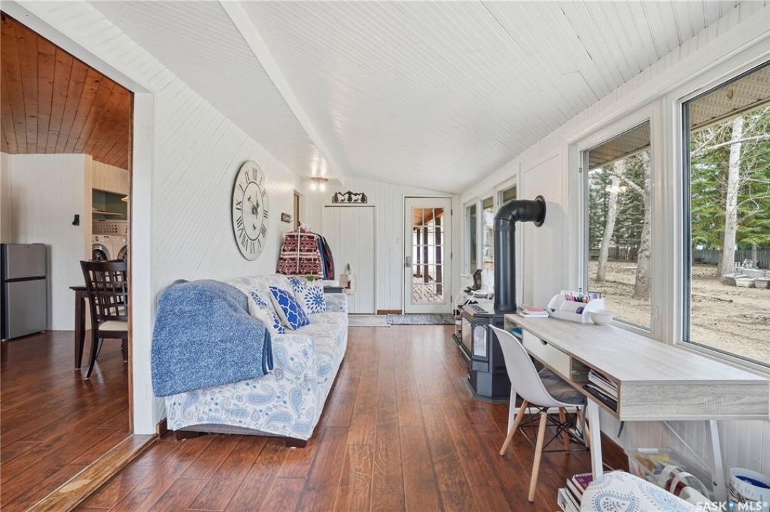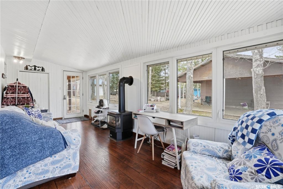 Are you looking for a turn-key home to start your lake living at Thomson Lake? This spacious 4 season cabin is only a couple of lots from the water with views of the lake! Excellent curb appeal as you arrive with a beautifully treed lot. Heading inside we are greeted by a large foyer / sunroom with lots of natural light and our first natural gas fireplace. Next we find a spacious kitchen with an island, updated cabinetry and a stainless steel appliance package. Next we have a large formal dining room - perfect for when the family comes to visit. Heading back we find a primary bedroom with 2 closets. Next we find a huge living room boasting a natural gas fireplace and a new hideabed. The spacious 4 piece bathroom has been updated and features a heated floor. Finally we find double doors leading to the second bedroom. Off the back we find a screened in veranda which is sure to be the place you spend most of your time in the summer! Outside we find a covered deck and a large private yard. We also find a detached triple car garage and a shed which could be turned into a bunkhouse as well as a generac for backup power. Pride of ownership shows throughout this property and you are sure to love the way it will slow down your pace of life. Thomson Lake is located just 7 minutes from Gravelbourg and showcases an excellent 9 hole golf course just around the corner, a heated pool, sport and tennis courts, as well as a baseball diamond. It is hard to find a place as relaxing as this! This cottage can come fully furnished and with a fully stocked kitchen. Quick possession is available. Reach out today to book your showing!