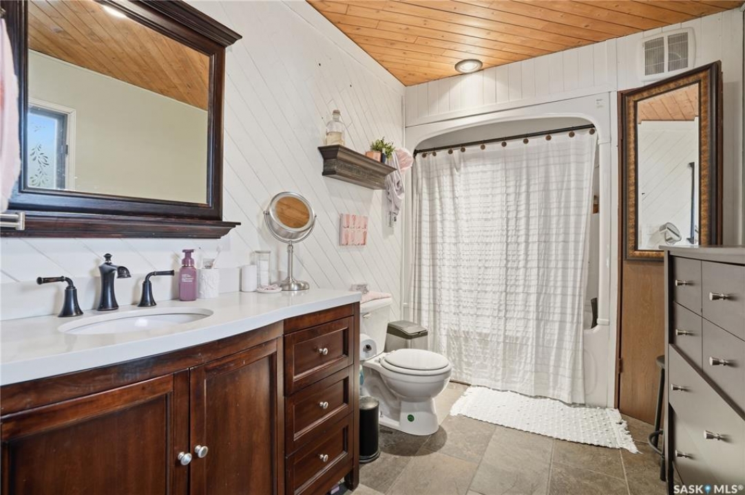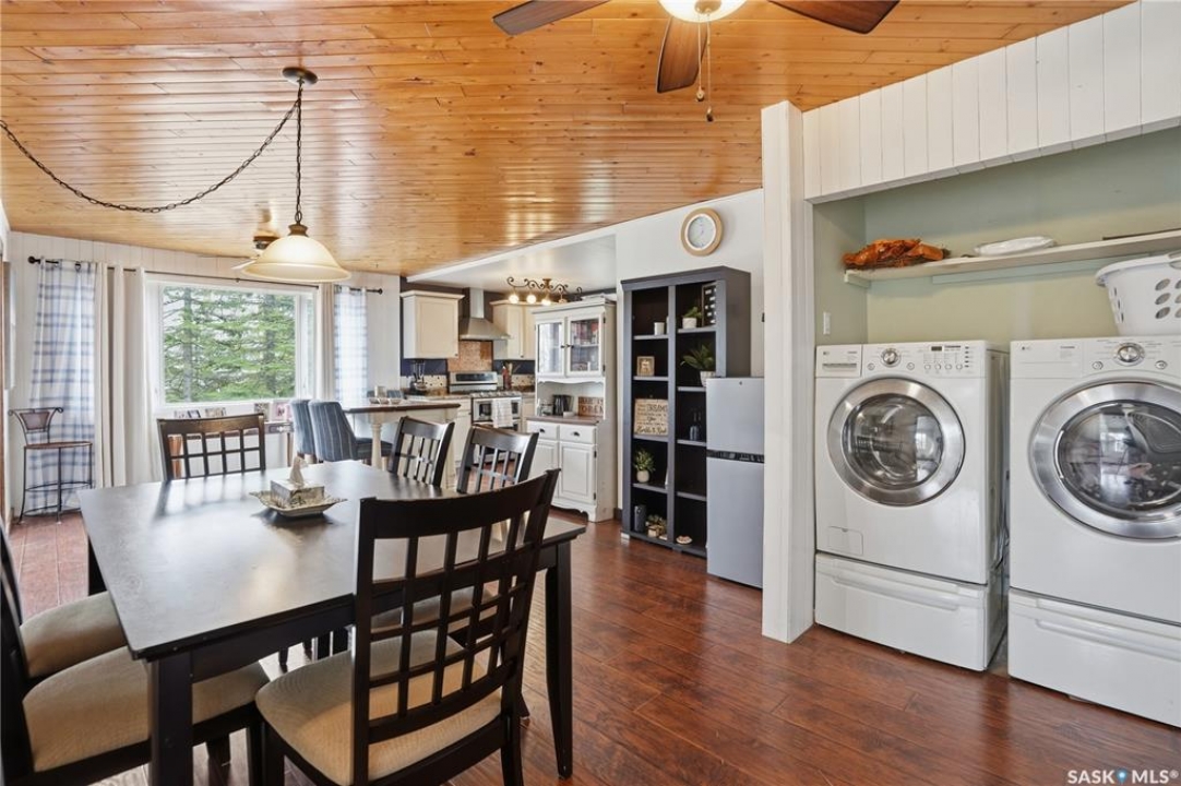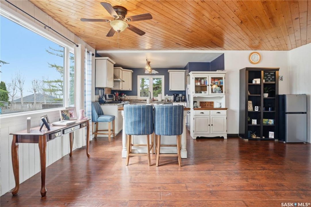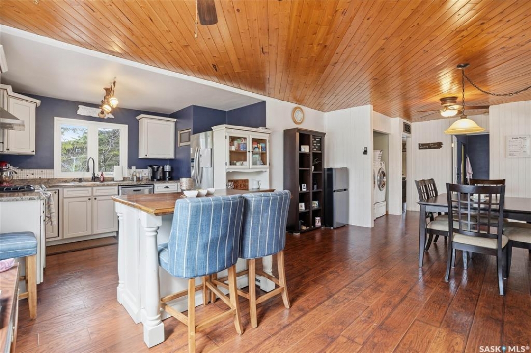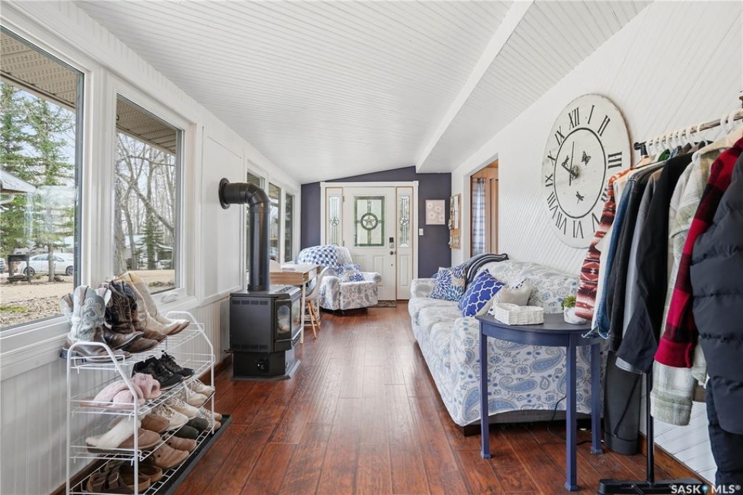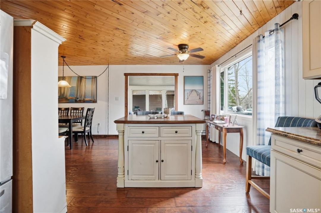 Are you looking for a turn-key home to start your lake living at Thomson Lake? This spacious 4 season cabin is only a couple of lots from the water with views of the lake! Excellent curb appeal as you arrive with a beautifully treed lot. Heading inside we are greeted by a large foyer / sunroom with lots of natural light and our first natural gas fireplace. Next we find a spacious kitchen with an island, updated cabinetry and a stainless steel appliance package. Next we have a large formal dining room - perfect for when the family comes to visit. Heading back we find a primary bedroom with 2 closets. Next we find a huge living room boasting a natural gas fireplace and a new hideabed. The spacious 4 piece bathroom has been updated and features a heated floor. Finally we find double doors leading to the second bedroom. Off the back we find a screened in veranda which is sure to be the place you spend most of your time in the summer! Outside we find a covered deck and a large private yard. We also find a detached triple car garage and a shed which could be turned into a bunkhouse as well as a generac for backup power. Pride of ownership shows throughout this property and you are sure to love the way it will slow down your pace of life. Thomson Lake is located just 7 minutes from Gravelbourg and showcases an excellent 9 hole golf course just around the corner, a heated pool, sport and tennis courts, as well as a baseball diamond. It is hard to find a place as relaxing as this! This cottage can come fully furnished and with a fully stocked kitchen. Quick possession is available. Reach out today to book your showing!