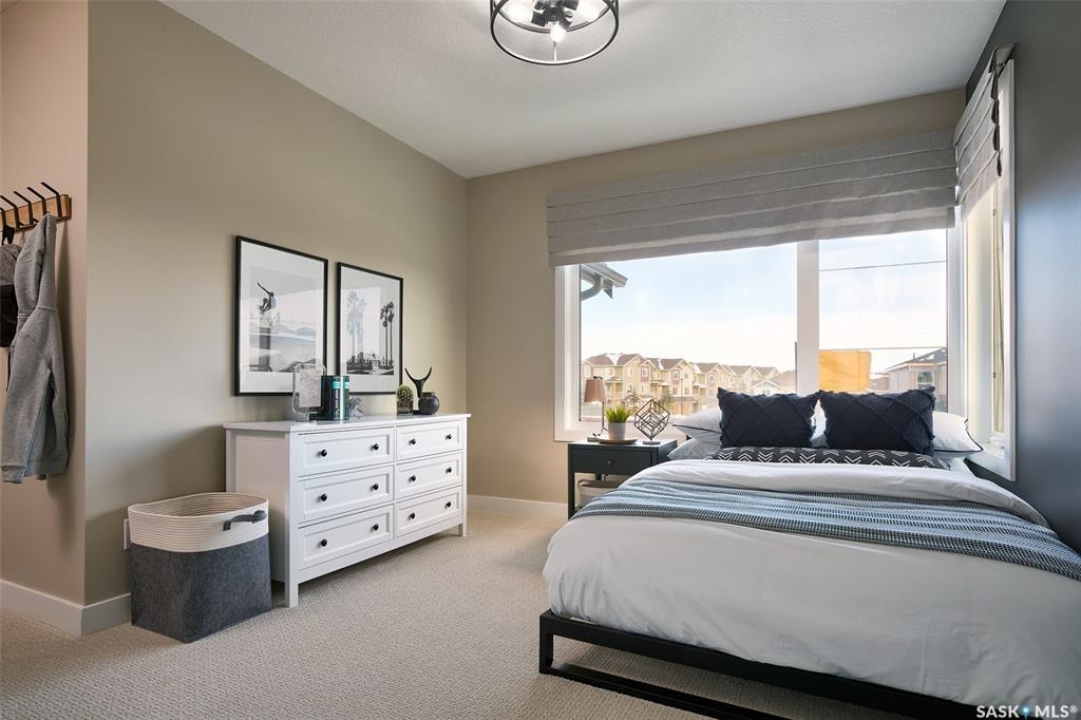Note: This home is currently under construction and the photos provided are for REFERENCE only, some are virtual renderings and some colors may vary. Welcome to the Arnica. This stunning 2-storey home, offering 2,218 sq. ft., is a brand-new build by Laurel Homes located in the up and coming Royal Park subdivision of White City. This home showcases a modern dark-palette design paired with elevated interior selections throughout. The main floor features an open-concept layout with a stylish kitchen complete with flat-slab cabinetry, marble-quartz countertops, a walk-in pantry, matte-black fixtures, and included appliances: fridge, stove, microwave hood fan, and built-in dishwasher. The great room is anchored by a sleek, contemporary fireplace, while the dining area provides direct access to the rear deck complied of composite decking. A 2-pc bathroom and a versatile den—complete the main level. Upstairs, a spacious bonus room separates the secondary bedrooms from the serene primary suite, which includes a walk-in closet and a beautifully appointed 5-pc ensuite with quartz counters, a stand up shower, and matte-black fixtures. A convenient upper-floor laundry room and an additional 4-pc bathroom complete the 2nd level. The basement is unfinished, equipped with a sump pump and roughed-in bathroom plumbing—ready for future development. Optional basement development by the builder is available at an additional cost. More great features include laminate/LVT flooring in most spaces, black hardware throughout, Grey interior paint, and a fully insulated and drywalled double attached garage and fully installed central air conditioning! Thoughtfully designed and highly elevated, this home blends modern style with everyday functionality. Possession estimated: July 1, 2026. Asking price includes GST and PST. PST is remitted to the builder. GST rebate, if applicable, goes to the builder. First-Time Home Buyer GST rebate goes to the purchaser as a reduction of the purchase price.