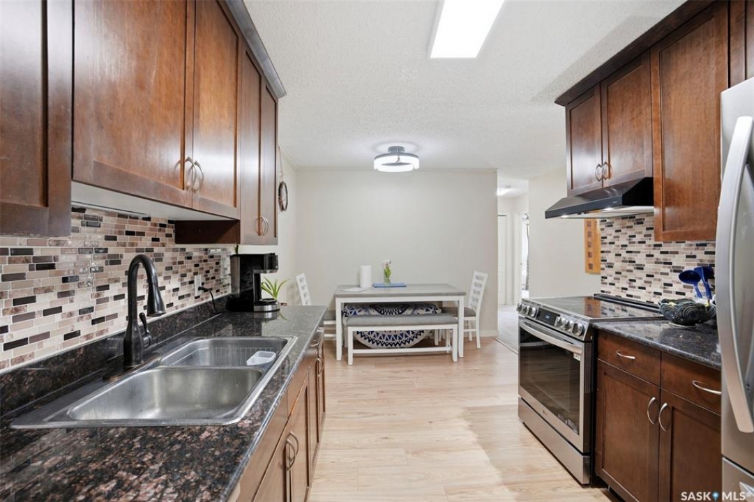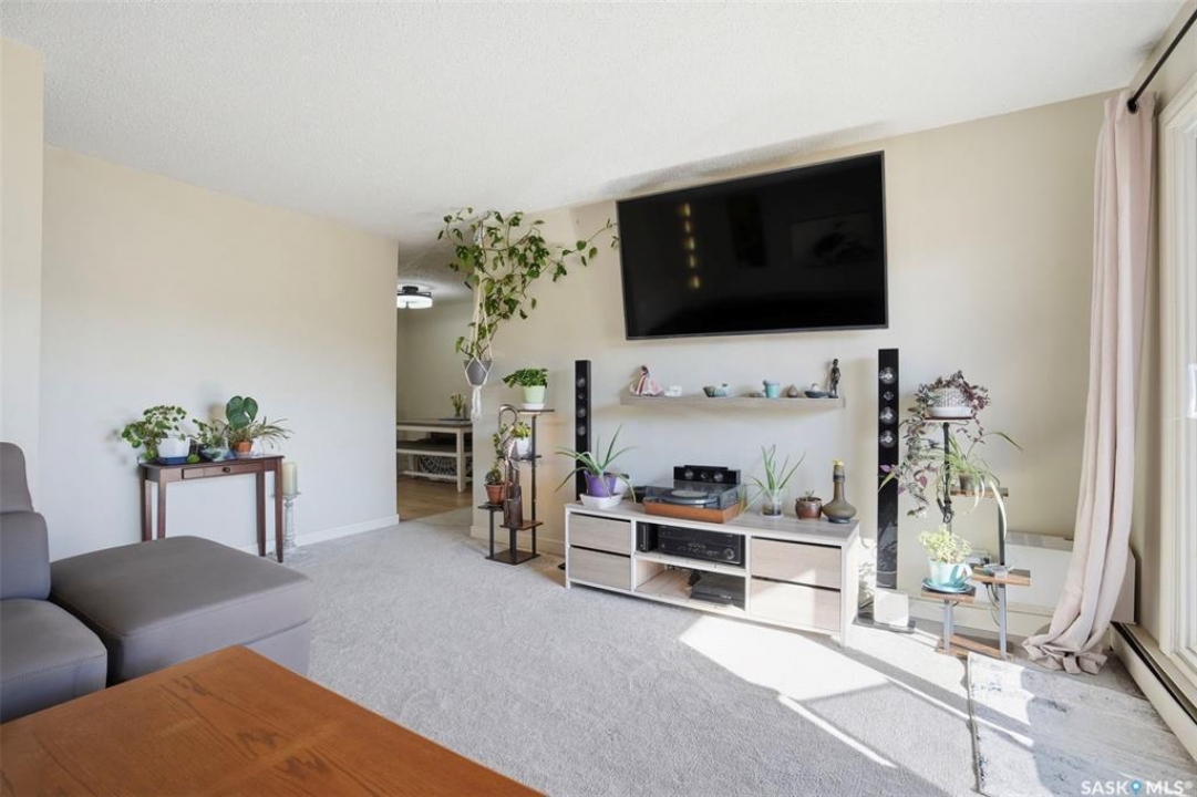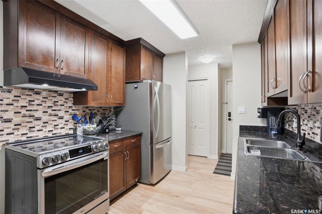 Bright, spacious, and move-in ready, this beautifully updated 3-bedroom condo offers 1,080 sq ft of comfortable living in a quiet, well-kept community. This corner unit enjoys a more private feel with fewer shared walls and a functional layout that makes the most of the space. Recent updates include new appliances, all new windows, new patio door, new flooring, and fresh modern finishes throughout. The kitchen features granite countertops, oversized upper cabinets, and opens into the dining area and living room, creating a warm and welcoming space for everyday living. A den near the entrance adds flexibility for a home office or extra storage, while the large east-facing deck is perfect for enjoying your morning coffee. With three generously sized bedrooms, in-suite laundry, wall air conditioning, two electrified parking stalls, and access to building amenities including a weight room, recreation room, and a sauna to relax at the end of the day. This condo is a must see, with immediate possession available