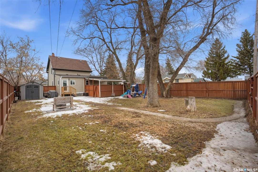 Exceptional value in this 1,100 sq. ft. two-storey home offering 4 bedrooms on a generous 56.5 x 103 corner ft. lot in the highly sought-after Avalon neighbourhood on Saskatoon's east side. As you enter the home, you are greeted by an ample sized entry way that leads to a large living room with large windows and upgraded laminate flooring that leads to a great sized separate dining room. The kitchen looks over the huge lot, and is very functional with ample cabinet and counter space as well as access to the yard. There is also a beautifully redone main floor bathroom and large bedroom, great for extra sleeping space or an office! Upstairs this home boasts 3 additional full bedrooms. bedrooms This home is move-in ready with numerous upgrades throughout, including paint, flooring, bathrooms, lighting, windows, exterior siding, eaves, central air as well as updated mechanical and electrical panel! This home provides both style and peace of mind. The large, mature yard is perfect for entertaining, relaxing, or giving kids space to play, complete with established trees and a convenient rear carport. A fantastic alternative to condo living—offering more space, privacy, and no condo fees—all in a mature, family-friendly neighbourhood close to amenities, schools, and parks. Call your agent today to schedule your viewing!