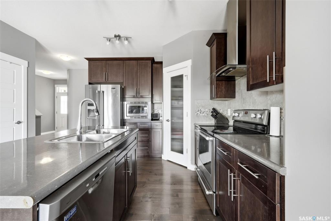 Welcome to 5517 Norseman Crescent, a two-storey home built by Daytona Homes, located in the desirable Harbour Landing neighbourhood. This home offers 3 bedrooms, 3 bathrooms, and a functional layout designed for comfortable everyday living. The main floor features hardwood flooring throughout the kitchen, nook, and living room, with a bright and open layout that flows seamlessly between spaces. The kitchen is finished with soft close maple cabinetry, crown mouldings, and ample storage and counter space. Upstairs you'll find three bedrooms, including a spacious primary suite complete with a walk-in closet and ensuite, along with an additional full bathroom. Fully fenced and landscaped with deck, backing green space, this home offers added privacy and a great outdoor setting to enjoy. Located in Harbour Landing, you'll appreciate the convenience of nearby schools, parks, walking paths, and easy access to the Grasslands retail district with shopping, restaurants, and everyday amenities, along with quick connections to Lewvan Drive and Ring Road.