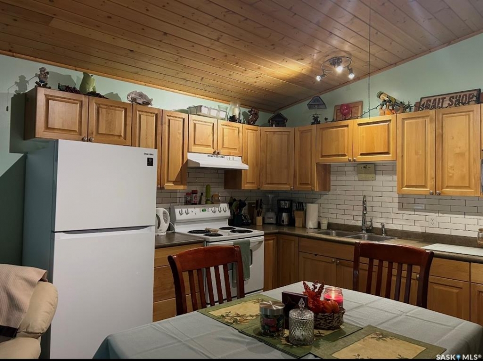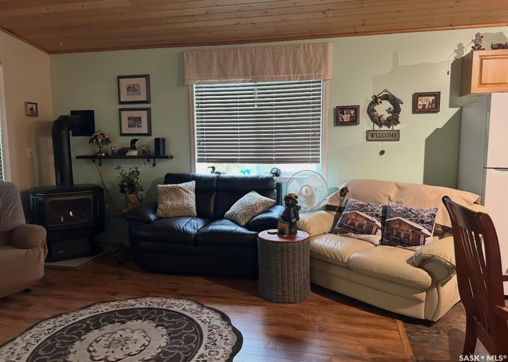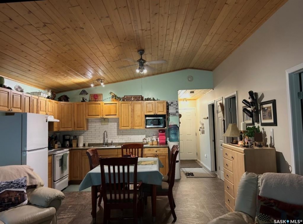 Lake season is here don't miss your chance to own this adorable all season 3 bedroom cabin in the beautiful Resort Village of Pebble Baye at Iroquois Lake. Located at 134 Sunridge Road, this inviting property is nestled among mature trees on a massive lot, offering plenty of space for family and guests, including room to accommodate a camper or trailer. The private, peaceful setting makes it the perfect place for relaxing getaways or year round living. Inside, you'll find a bright open concept layout featuring a spacious kitchen with plenty of cabinetry, ideal for hosting family and friends, and a cozy living room with direct access to a covered deck where you can unwind and enjoy the outdoors. A stunning pine ceiling adds warmth and character throughout the main living space, enhancing the true cabin feel, while a recently added beautiful gas stove in the living room provides both comfort and charm. This home offers three comfortable bedrooms, a 3 piece bathroom, and the added convenience of an attached garage, now equipped with a gas heater for added functionality year round. Move-in ready, it allows you to settle in and start enjoying lake life immediately just in time for summer. The resort village itself is a sought after destination, complete with a beautiful marina, park, and sandy beach, making it perfect for families and outdoor enthusiasts alike. The property is serviced by a 1,200-gallon cistern water system and a 1,200-gallon septic tank, and features electric heat for additional comfort. This is a fantastic opportunity to own a charming lake retreat in a wonderful community schedule your private viewing today.
