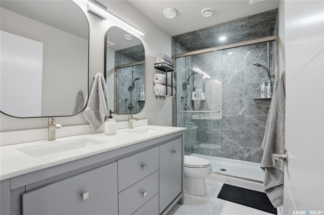 This truly is a one-of-a-kind bungalow, featuring one of the finest garages you'll find in the city. The triple detached shop is maxed at largest size you can build for a detached and comes fully equipped with in-floor heat, a backup unit heater, a two-piece bathroom, epoxy floors, and a built-in sound system—an absolute showstopper. In addition, there is a single attached heated garage and a massive shed on a concrete footing, providing exceptional utility and storage. The home itself has undergone an extensive renovation from top to bottom, with only a couple of minor items remaining. It has been fully foam insulated from the foundation through to the attic, including foam insulation behind the ceiling sheeting and new blown-in insulation. Inside, virtually everything has been redone—featuring all new electrical, fixtures, and lighting, a fully renovated kitchen, a spacious primary bedroom with a three-piece ensuite, and a brand new main bathroom, along with an additional new three-piece bathroom in the basement. The main floor offers 3 bedrooms 2 bathrooms, while the beautifully redeveloped basement includes 2 additional bedrooms, a large L-shaped family room, and a dedicated mechanical and laundry space. New basement windows have been cut in to provide modern egress and enhanced natural light, and all mechanical systems and plumbing have been updated. This property also offers an incredible amount of parking and storage, with a front driveway accommodating multiple vehicles, a sliding rear gate for RV access, and extensive garage space. Opportunities like this—combining this level of functionality and space within city limits—are exceptionally rare. Presentation of offers: Monday, April 20 at 1:00 PM.
