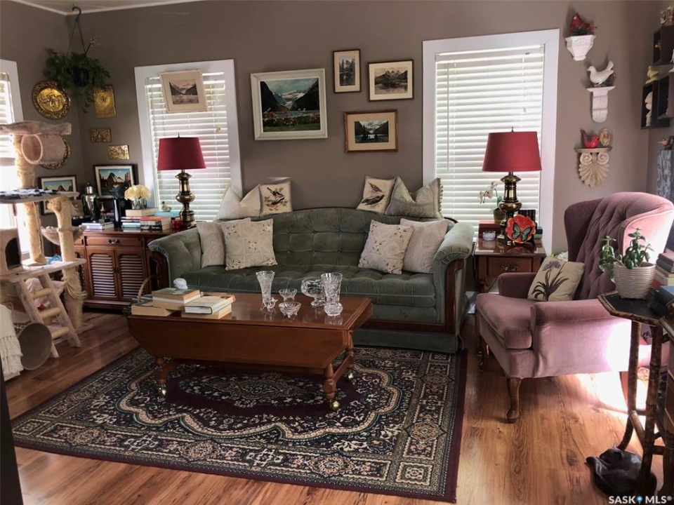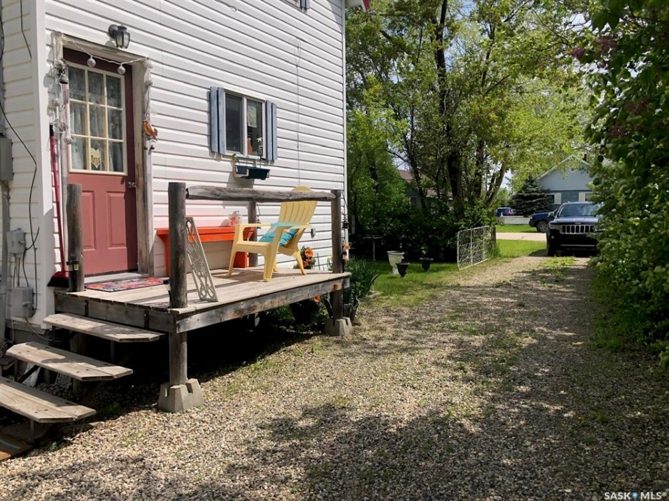 T'S LIKE BEING AT THE PARK.... Folks check out this charming 1 3/4 character home that is surrounded by beautiful surroundings and situated on 2 lots in the welcoming Town of Sturgis. This 865 square ft, 1910 home has stood the test of time and has been built to last a lifetime! Upon entry and through the gate you will be impressed by the private oasis surrounded by mature trees around the entire perimeter of the 2 lots. The space provided is tremendous boasting 12, 850 square feet of land that consists of a detached single car garage, patio, fire pit and lawn area as well as plenty of parking space that can accommodate RV parking. The property provides back alley access and is well maintained with crushed rock leading to the deck and main entrance of the home. Upon entry, the unique surroundings become even more enhanced with the cozy interior that makes you feel like sitting down and enjoying a nice cup of tea. The home is solid and boasts a solid concrete foundation that is in superb condition! The main floor consists of a functional kitchen, and living space with plenty of good updated windows that open. The 2nd floor consists of 2 bedrooms and a cute 3 piece bath. The basement consists of laundry, utility, and mechanical area, as well as a shower, storage & cold room with additional space currently used as an office area. There is much added value within the home from the recent upgrades over the recent years that include; metal roof, vinyl siding, brand new HE furnace installed in January 2026, & water heater, and appliances are all included featuring a newer fridge with extended warranty. The home has proven to be quite energy efficient with Sask Energy payments equalized at $85/month. Town water & sewer only $70/month &Taxes $1371/year. Very affordable living in a fine peaceful residential community. The property is also centrally located and in walking distance to the schools and all amenities. Interested? Call for more information or to schedule a viewing.