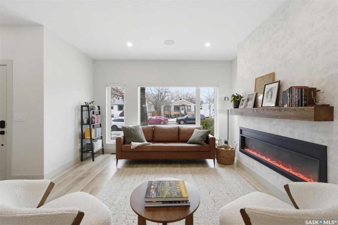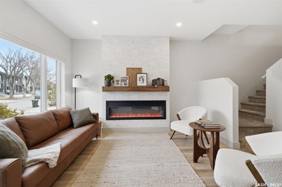This stunning Decora Homes build offers a rare combination of high-end craftsmanship and significant recent upgrades, perfectly positioned on Empress Avenue just steps from the Saskatchewan River and Meewasin Trails. Over the last three years, this 1702sqft home has been meticulously refined, now featuring a durable and modern steel roof, an automated blind package for effortless light control, and professionally completed sidewalks and a rear patio. The main floor remains a showstopper with its functional living room centered on a stylish fireplace wall, a spacious dining area, and a gourmet kitchen equipped with a large quartz island and full stainless steel appliance package. Upstairs, the primary retreat continues to impress with its elegant 4-piece ensuite including double sinks and tiled shower, heated floors, and a vast walk-in closet, complemented by two additional bedrooms and a secondary 4-piece bath. The laundry is also located on the upper level as well as another two storage closets. The most notable addition is the nearly-developed basement, which has seen the completion of all exterior walls and the addition of a fully finished 3-piece bathroom, family room, open gym/play area and spare bedroom space, significantly increasing the home's functional square footage. Outside, the property is a low-maintenance oasis with black granite crushed rock, a rear deck, and a spacious double detached garage. Located on one of Saskatoon's most trendsetting streets with easy river access, this property is truly move-in ready with all the finishing touches already in place.