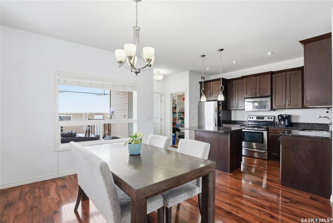 Welcome to 842 Stensrud Road in Saskatoon—an exceptional end unit townhome in the desirable community of Willowgrove. Offering 1,335 sq. ft. of beautifully designed living space across two levels, this meticulously cared for home features 4 bedrooms, 4 bathrooms, and a fully developed basement, perfectly blending comfort and functionality. Bathed in natural light from its south west facing windows, the main floor showcases a stunning kitchen complete with granite countertops, stainless steel appliances, tons of cabinet space, and a spacious walk-in pantry ideal for both everyday living and entertaining. Off of the kitchen you have a generous sized dining area and deck access. Upstairs, you'll find a spacious primary bedroom with large windows and a 4 piece ensuite. Two additional bedrooms, with an additional 4 piece washroom finish off the second floor. Laundry is also located on the second floor. The fully finished basement expands your living options with a cozy family room, fourth bedroom, 3-piece bathroom, and ample storage space—perfect for guests or a growing family. Step outside to enjoy one of the largest yards in the complex. The fully fenced backyard mature landscaping, vibrant greenery, a covered deck, ideal for relaxing or hosting. This home also comes with an insulated double detached garage. Additional highlights include newer paint throughout the entire unit, newly developed basement and central air conditioning! With charming curb appeal—complete with stone accents and a welcoming front veranda, and across from schools and within walking distance to University Heights amenities, this move-in-ready home truly has it all. Don't miss your chance to make it yours!