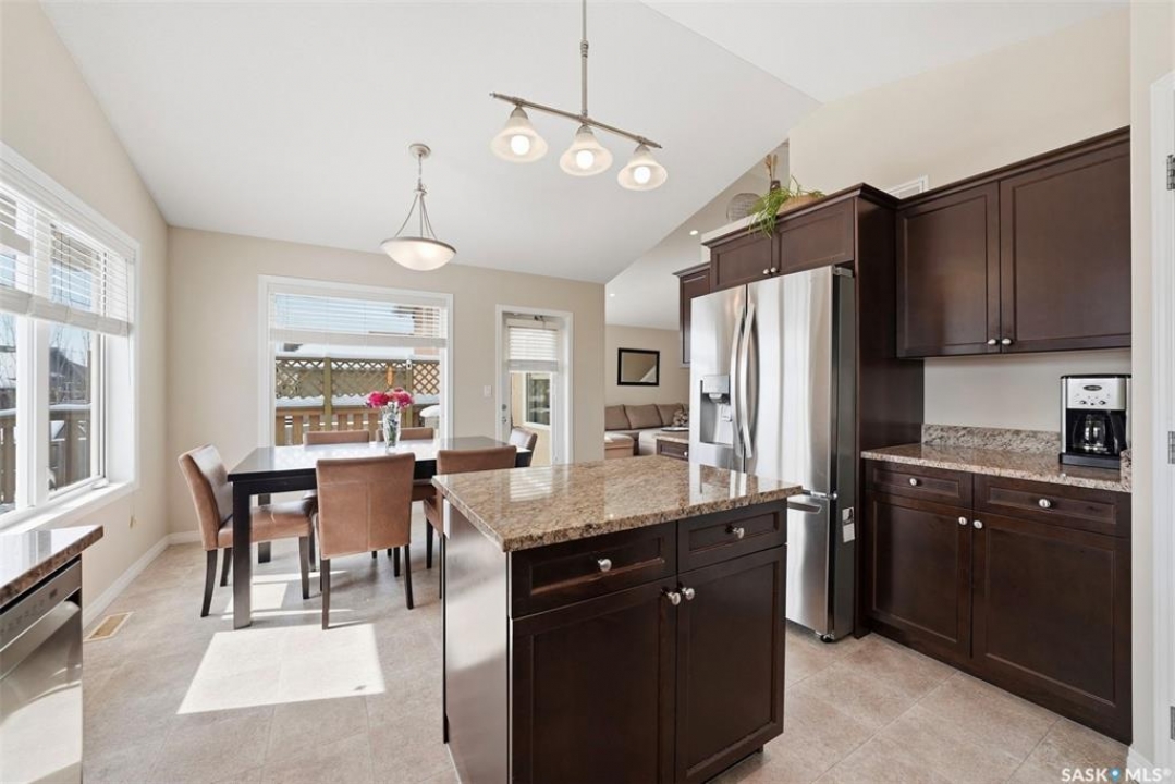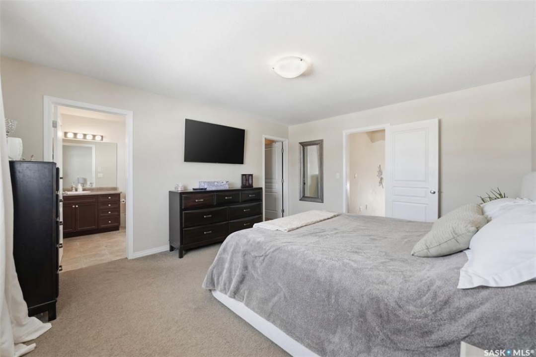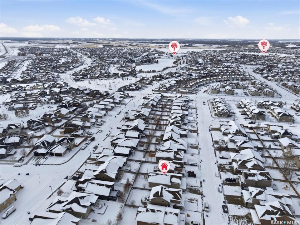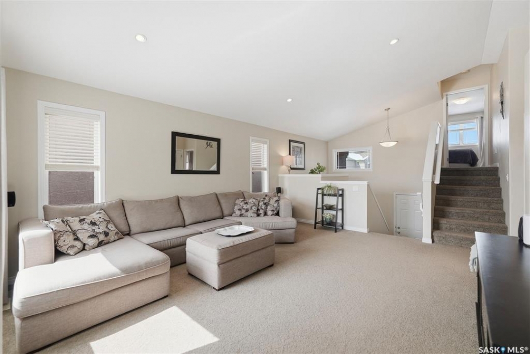 Welcome to this very well maintained 1375 sqft modified bi-level, perfectly situated in the heart of Stonebridge—one of Saskatoon's most sought-after neighborhoods. The main floor immediately impresses with vaulted ceilings and an open-concept kitchen featuring a central island. Kitchen appliances are all new within the last 3 years. The modified bilevel layout offers two spacious bedrooms on the main level, while the private primary bedroom is tucked above the garage, boasting a large ensuite bathroom and a walk-in closet. With two additional bedrooms in the fully finished basement, this five-bedroom, three-bathroom home is ideal for a growing family. The lower level also features a cozy family room with built-in speakers, a large laundry room, and plenty of storage. Outside, the beautifully landscaped, mature backyard provides a private oasis rarely found in newer areas. Sellers have had the furnace and water heater serviced just 3 weeks ago. Located just steps from two elementary schools and all the premium amenities Stonebridge has to offer, this move-in-ready home combines comfort, style, and an unbeatable location. Call you REALTOR �? to view today!