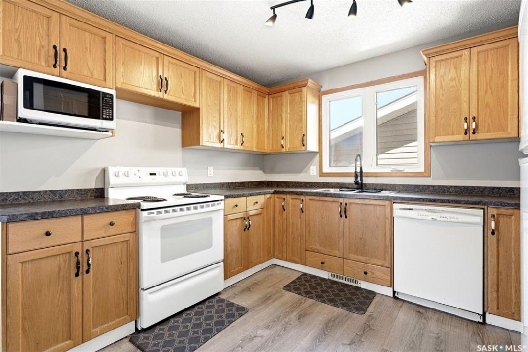 Welcome to 34 Glasgow Street in Normanview West! This bilevel offers space, flexibility, and great value with 3 bedrooms on the main floor and 2 more downstairs. With a second kitchen in the basement, this home is a fantastic option for buyers looking for extra functionality for roommates, billets, or extended family. The main floor features vinyl plank flooring, updated bathrooms, some PVC windows, a high-efficiency furnace, and central air conditioning for year-round comfort. Outside, the backyard offers a large 2-tier deck and convenient lane access, giving you the option to add a future garage. Located near Williston Park with quick access to Sherwood Drive and Ring Road, you'll love how close you are to all of Regina's northwest amenities. A versatile home in a great location with room to grow, live, and invest.