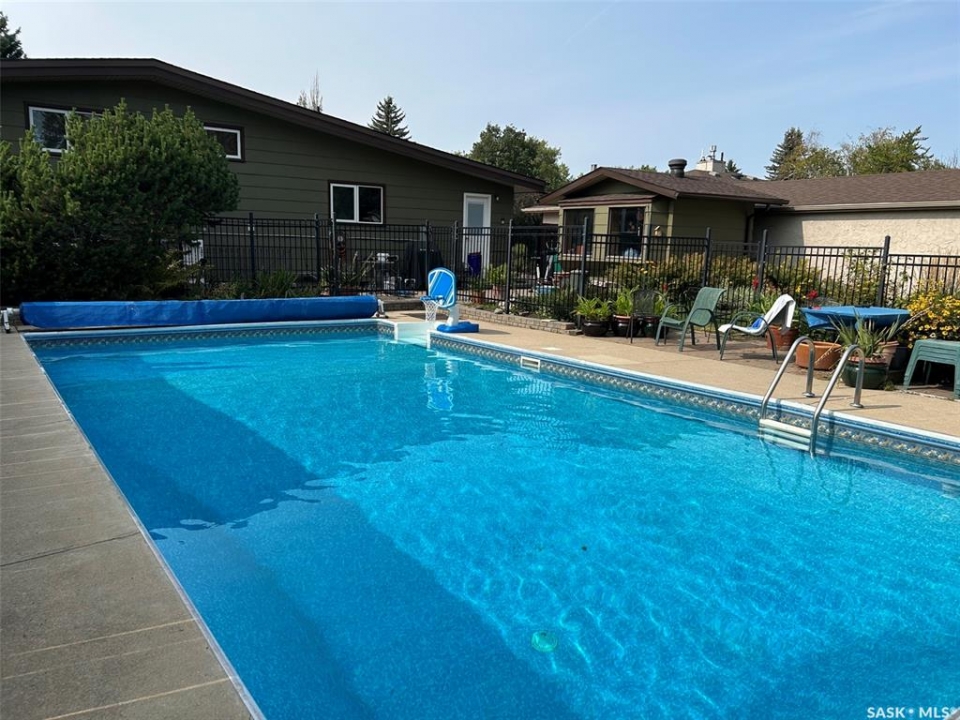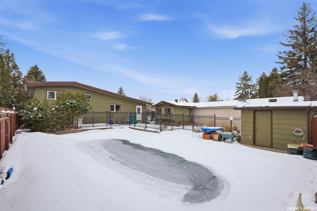 Welcome to 117 Mount Allison Crescent — a standout mid-century modern home offering space, style, and flexibility in a family-friendly Saskatoon neighbourhood. This well-maintained 1,200 sq. ft. 4-level split features 4 bedrooms and 3 bathrooms, providing plenty of room for growing families or those who love to entertain. The home blends timeless character with thoughtful updates, highlighted by a beautifully updated kitchen and a stunning stone gas fireplace that anchors the main living space with warmth and charm. Set on a large lot, the backyard is a true retreat. Enjoy summer days around the meticulously cared-for, fully fenced outdoor pool — perfect for relaxing or hosting guests. Major mechanical updates offer peace of mind, including a new roof, furnace, on-demand hot water heater, water softener, reverse osmosis system, and pool pump. The layout also presents excellent secondary suite potential, with a separate basement entry ideal for future development or added income. Located close to schools, parks, and amenities, this home combines convenience with a quiet, established setting. A rare opportunity to own a character-filled, move-in-ready home with incredible versatility — don't miss your chance to make it yours. Presentation of offers Thursday, April 23rd at 3 PM. Schedule your private showing today!