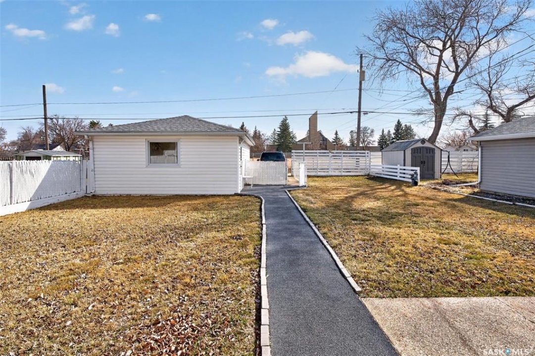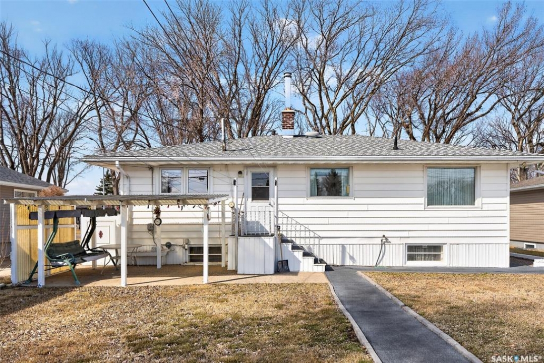 This well-maintained 1,052 sq. ft. raised bungalow offers excellent curb appeal with its crisp white siding and upgraded rubber-paved sidewalks. Inside, you'll find a spacious kitchen featuring classic oak cabinetry, complemented by a formal dining room that flows seamlessly into the bright and inviting living room—perfect for everyday living and entertaining. The main level hosts three comfortable bedrooms and a full four-piece bathroom. Downstairs, the fully developed basement boasts a generous L-shaped family room complete with a wet bar, along with a three-piece bathroom conveniently located in the laundry area and ample storage space throughout. Outside, the partially fenced yard includes a covered patio, underground sprinklers (both front and back yards), 19 x 25 detached garage and additional rear parking, providing both functionality and convenience.