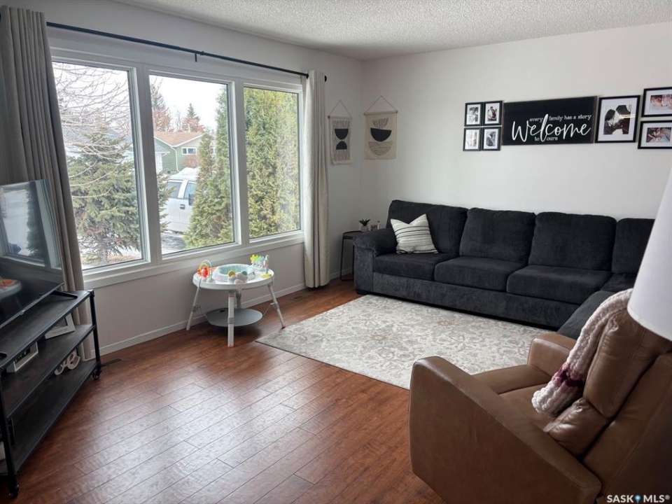 Well cared for 1,040 square foot bungalow built in 1975. Main floor walls and ceiling were professionally painted in 2025. Bright kitchen and living room with lots of natural light, three bedrooms on main floor and a 4 piece bath. The basement features new development with family room, one large bedroom and three piece bath with new flooring, paint and ceiling and new fixtures. Large laundry/storage room, cold room and separate workshop area/storage. Exterior is vinyl siding over Styrofoam insulation, PVC windows, metal soffit, fascia and eavestrough. The shingles are in very good condition The yard is fully fenced, fully accessible with wheelchair ramp; composite front deck, ramp and step. Low maintenance yard with grass front & back with two storage sheds. Conveniently located near elementary and high schools. Move in ready with quick possession available if needed.