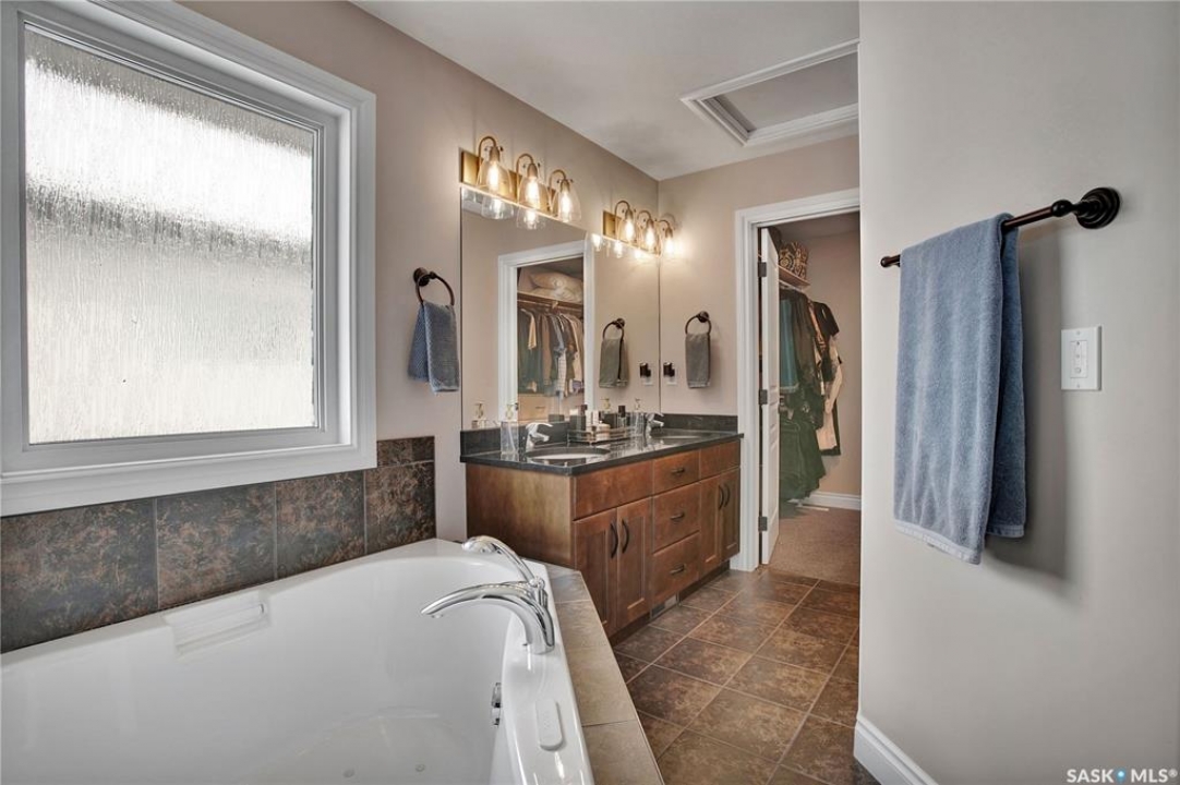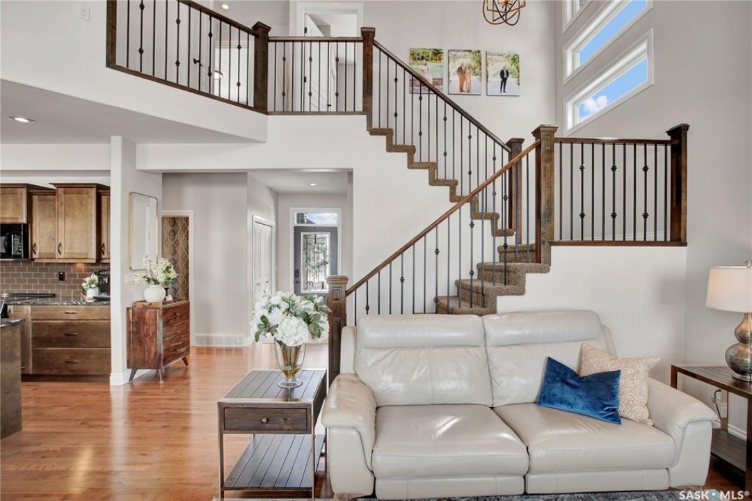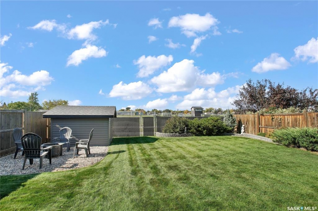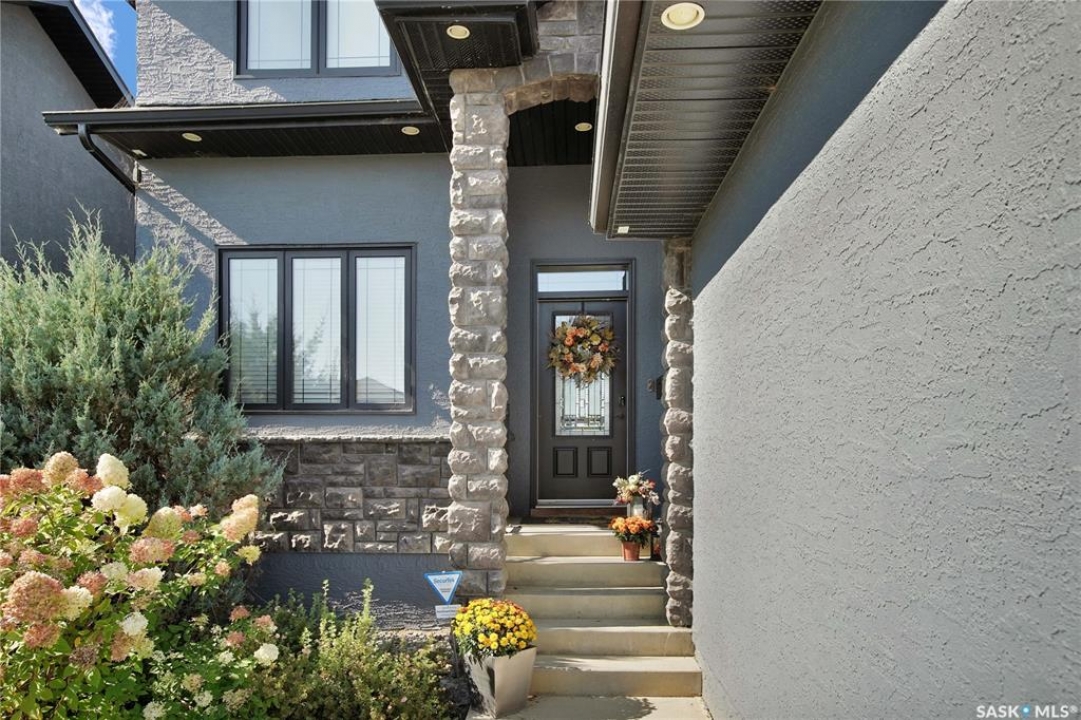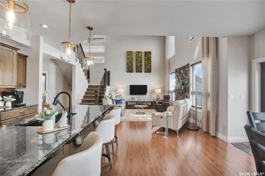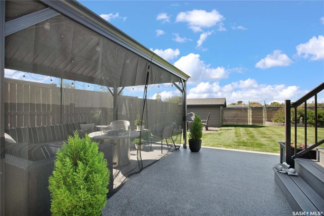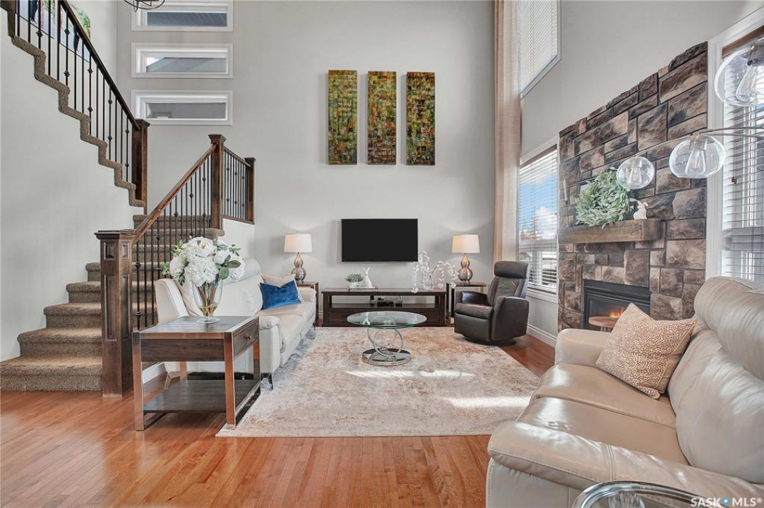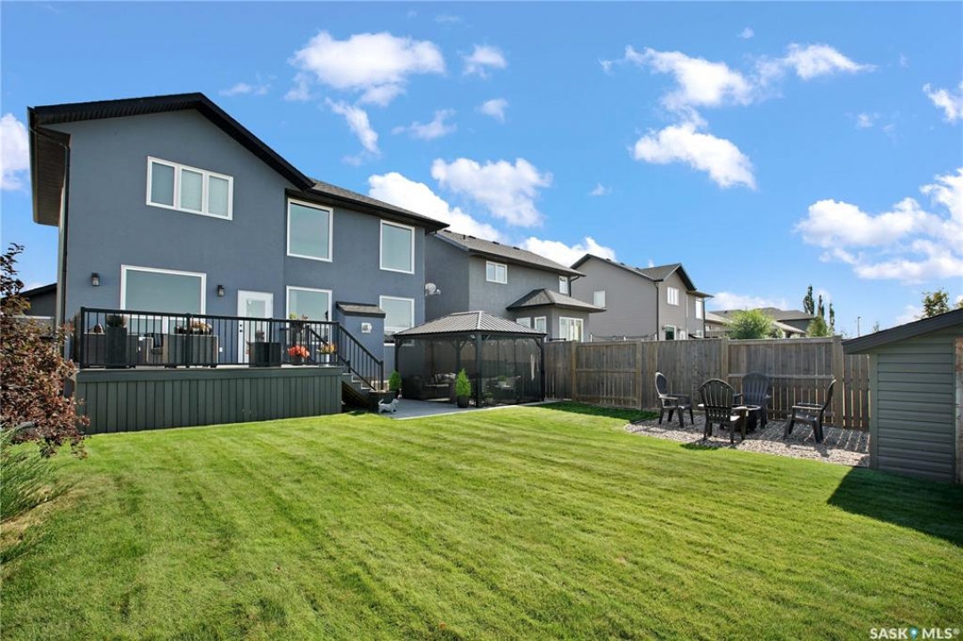 Welcome to this immaculate two-storey home, ideally located on one of Martensville's most desirable streets. Thoughtfully designed with an open-concept layout, this home offers the perfect blend of style, comfort, and functionality. The main floor features a spacious kitchen and dining area complete with a massive island, granite countertops, and a convenient walk-through pantry—perfect for everyday living and entertaining alike. The inviting living room is highlighted by a cozy gas fireplace, while the laundry/mudroom is ideally situated just off the fully finished 2-car garage, which boasts PVC paneling on both walls and ceiling. Upstairs, you'll find a beautiful primary retreat with a stunning ensuite and walk-in closet, along with two additional good sized bedrooms and a full 4-piece bathroom. The fully developed basement offers even more living space, including a large family room with a second gas fireplace, an additional bedroom, a 4-piece bathroom, and ample storage. This home is loaded with upgrades, including Chic Stucco Coating, UV window coating at the rear of the home, programmable underground sprinklers, and a premium polyaspartic-coated concrete patio. Additional highlights include a newer gazebo, newer garage doors, updated lighting throughout, updated paint and a newer composite deck. And so much more! A truly turnkey property with exceptional attention to detail—this is one you won't want to miss.