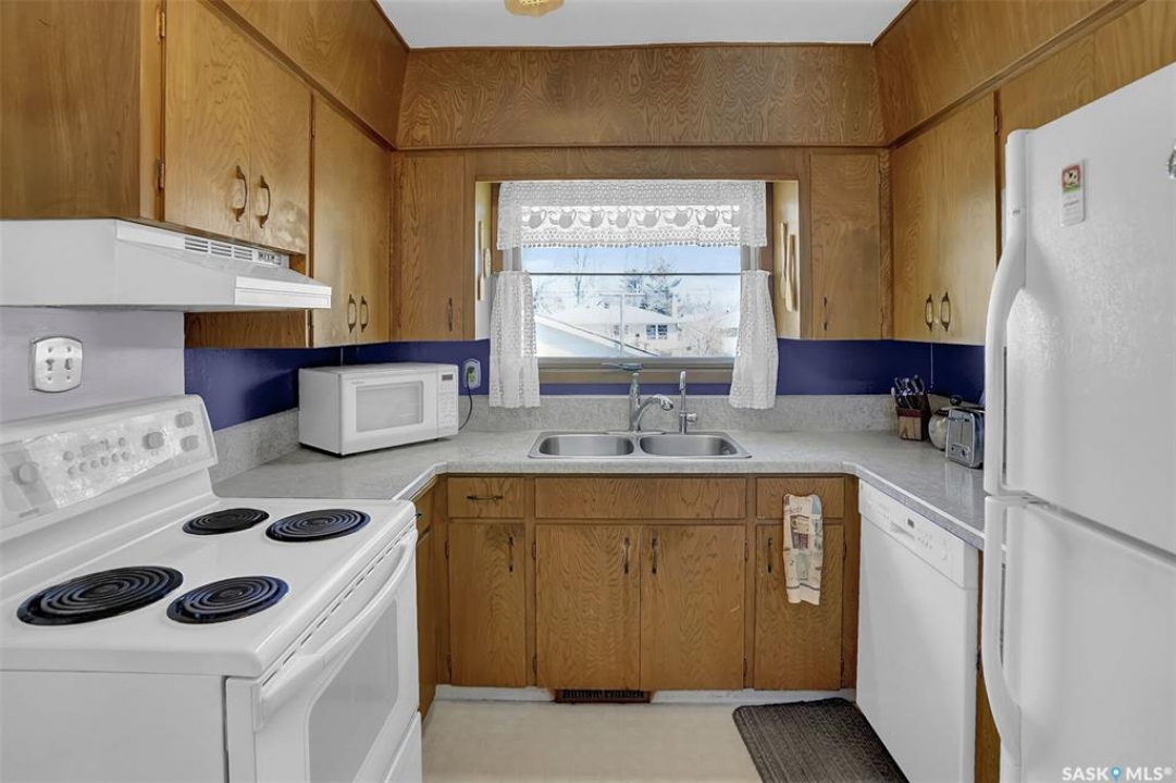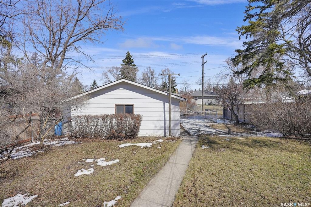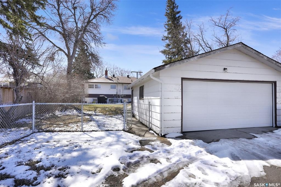 Welcome to this well-maintained 969 sq ft bungalow located in the desirable Regina neighbourhood of River Heights. Offering a functional layout and numerous key updates, this home is a great opportunity for a variety of buyers. Original hardwood flooring greets you upon entry and flows throughout the main living room, formal dining area, hallway, and both spacious bedrooms, adding warmth and character. The U-shaped kitchen overlooks the backyard, providing both functionality and a great view of the outdoor space. The updated 4-piece main bathroom is conveniently situated between the two bedrooms. The fully developed basement expands your living space with a large rec room, an additional bedroom, a den, and a 3-piece bathroom. The utility/laundry room offers plenty of storage. Outside, the fully fenced yard offers plenty of space to enjoy, along with additional parking beside the double detached garage. The garage features new shingles (2025), as well as a newer garage door and opener. A solid home with great space and key upgrades already completed—ready for its next owner.