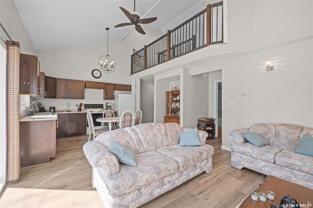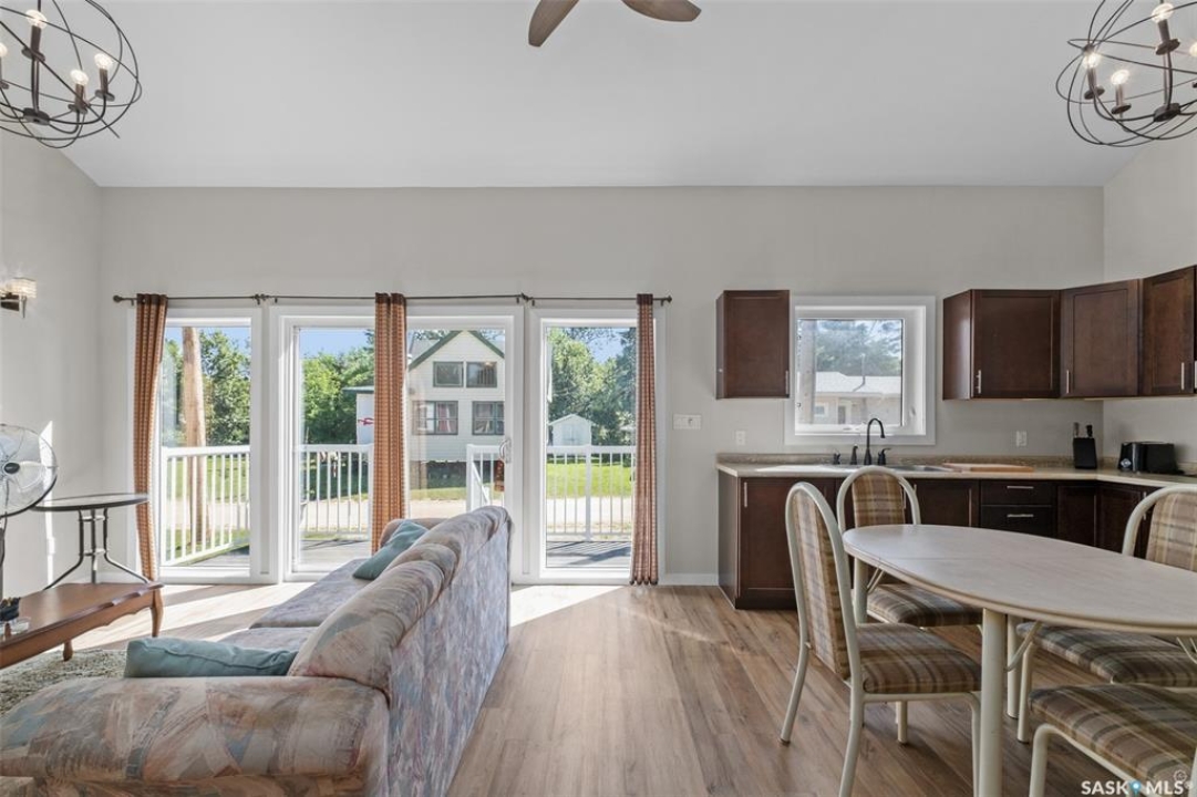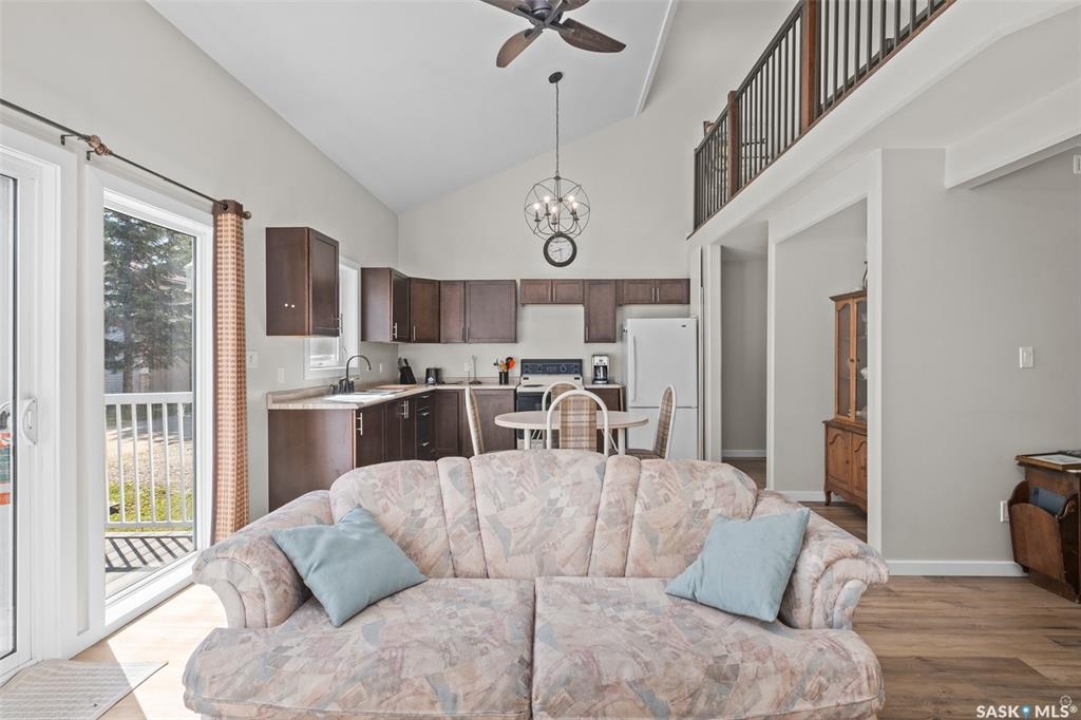 Impeccably maintained 3 season cabin situated close to the beach in the desirable Sunnyside Coop at Emma Lake. This 1118 square foot cabin was built in 2013 and is in like-new condition. Open concept floor plan with vaulted ceilings provides a bright spacious atmosphere. The main floor consists of a living room, eat-in kitchen, bedroom, 4-piece bath and a laundry area. The second storey overlooks the main floor and provides a second bedroom, 3-piece bath and sitting area. All appliances and most furnishings are included so you can move right in. Co-op fees are $375 per year and include water (May to September) and street maintenance.