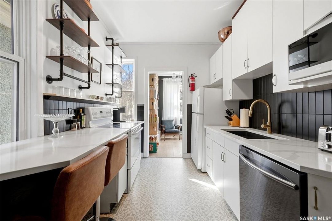 Welcome to 2322 Retallack Street, a charming character home that blends timeless details with thoughtful modern updates. The inviting enclosed front porch leads into a bright main floor featuring spacious living and dining areas, hardwood flooring, large windows, and beautiful original woodwork that adds warmth and personality throughout. The kitchen has been tastefully refreshed with modern cabinetry, updated counters, stylish black backsplash, and a functional eat-in layout. Upstairs, the home offers bright, comfortable bedrooms along with an updated bathroom, while the lower level provides additional storage and utility space. Outside, the fully fenced backyard is set up for relaxing and entertaining with a patio area, fire pit space, and room for play or gardening. A great opportunity to own a move-in ready home with character, style, and an appealing yard in a central Regina location.
