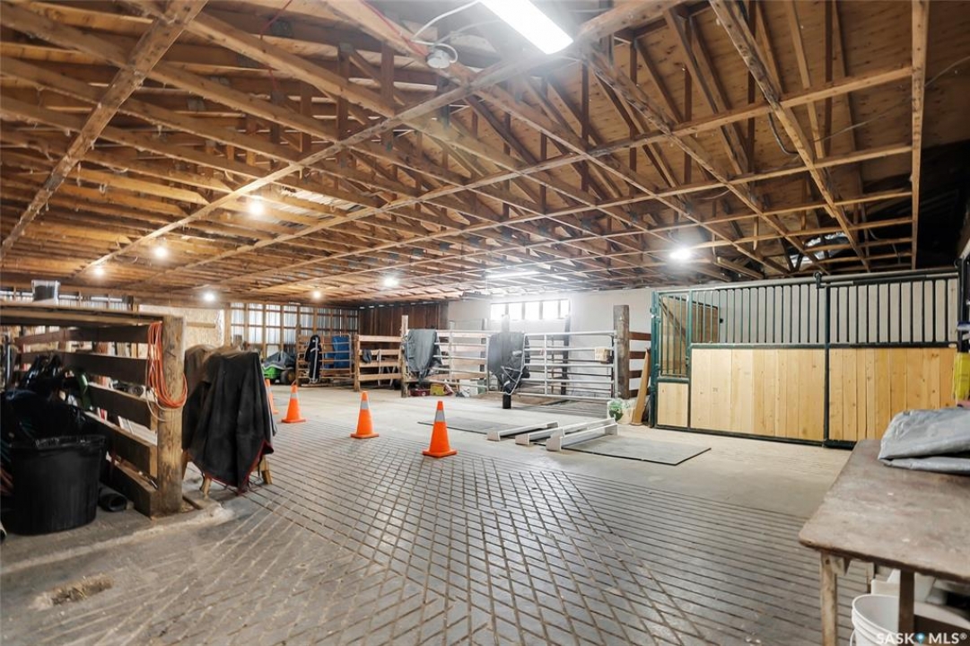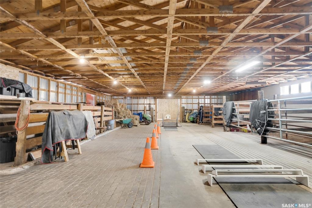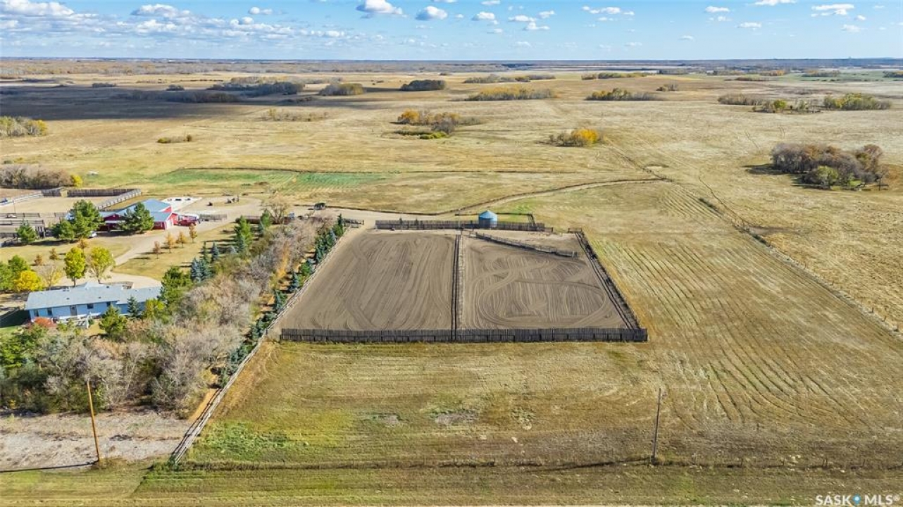 This well established equestrian acreage west of Saskatoon offers the space and functionality that horse owners are searching for. This property has been cared for by the same owner for 21 years, with thoughtful improvements made over time to support both comfortable living and a working country property. The yard is beautifully matured with established trees, creating a private, sheltered setting. The equine setup is extensive and ready to use, featuring a large arena that can be split, 7 corrals, 5 water bowls, a hydrant, and multiple shelters including a large livestock shelter and hay storage. The former dairy barn has been upgraded with metal siding and offers a versatile space with a generous tack room and room to expand your setup if needed. A heated shop and separate workshop adds even more flexibility, ideal for hobbies, projects, or business use. The 1,266 sq. ft. home built by Warman Homes offers a functional layout with 3 bedrooms up and a finished basement, providing additional living space, a 3-piece bath, a bedroom, and a large storage area/den. If desired, it would not be hard to turn the den into an additional bedroom. Numerous updates have been completed over the years, including all new flooring, fresh paint throughout, updated bathrooms (March 2023), newer shingles, updated window panes, and a newer hot water tank (2020/2022). Water systems have also been upgraded with a reverse osmosis system (approx. 3 years), water softener (5 years), and a new well pump (2022). Outside, enjoy both front and back decks, irrigation to the trees, and fencing set up with a combination of 3 & 4 strand barbed wire. The property offers plenty of room to expand or tailor the setup to your specific needs. Services include natural gas, a well water system, and septic surface pump out. This is a great opportunity to step into a well developed acreage ideal for horse owners, hobby farmers, or anyone looking to enjoy country living without starting from scratch.