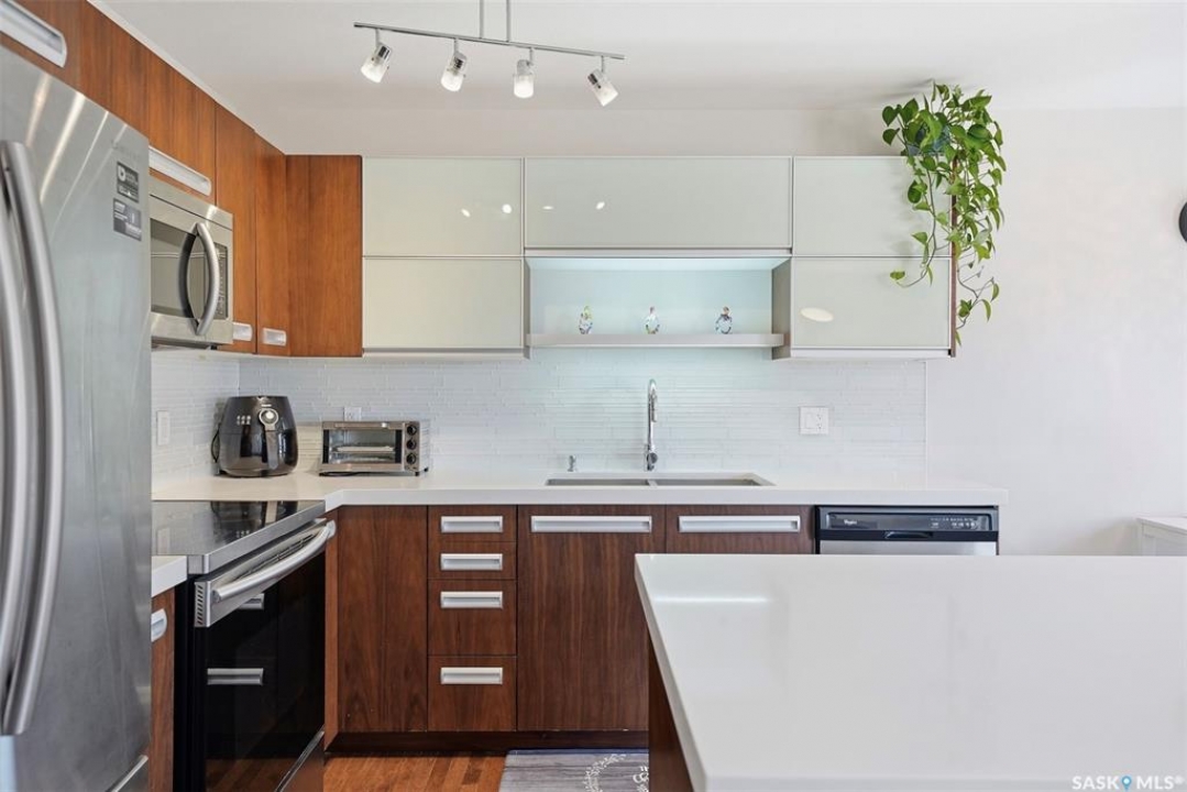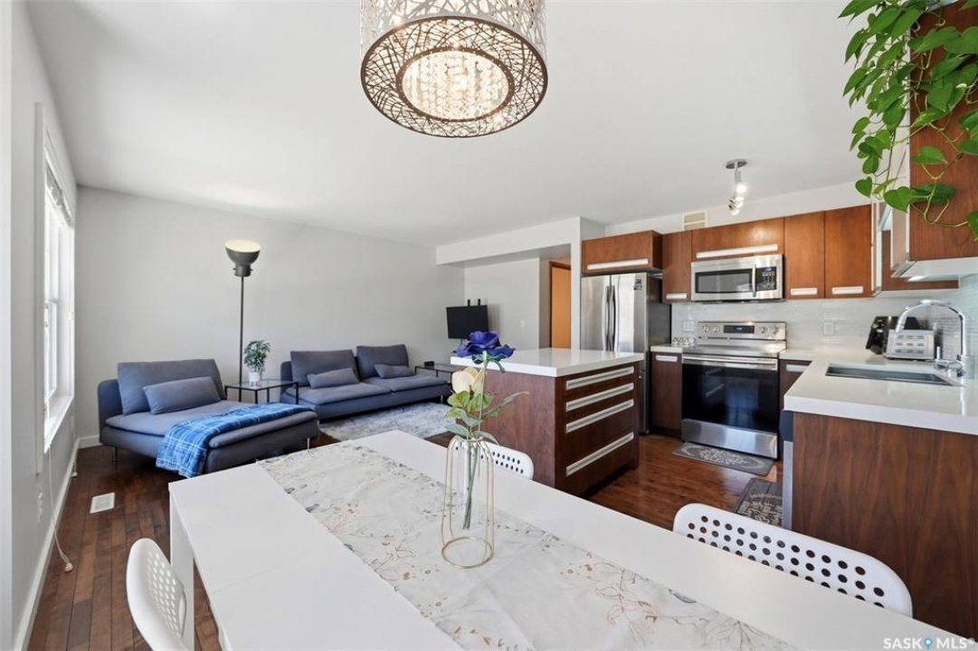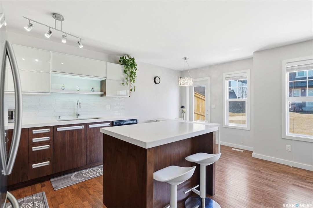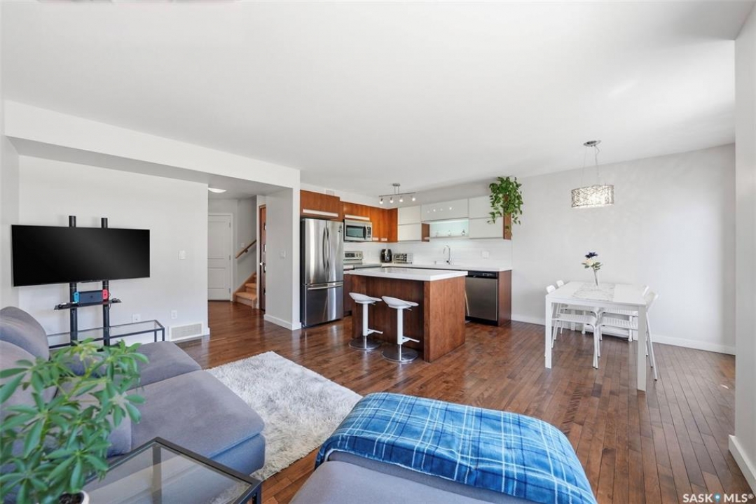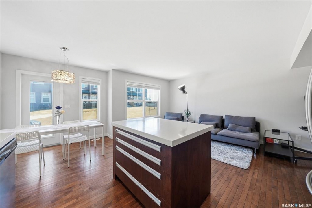 Welcome to Unit 304–1303 Paton Crescent, ideally situated in the highly sought-after Willowgrove community and backing east onto a peaceful courtyard. This fully developed home offers three bedrooms and three bathrooms, featuring thoughtfully designed open-concept layout that seamlessly integrates the kitchen, living, and dining areas. The interior is finished with a refined, contemporary aesthetic, highlighted by New York–inspired cabinetry, quartz countertops with an undermount sink, white glass tile backsplash, soft-close hardware, and sleek stainless steel railings. Premium materials are showcased throughout, including hardwood flooring, walnut doors and trim, travertine tile, and plush carpeting. The second level includes three spacious bedrooms and a four-piece bathroom, while the primary bedroom features a walk-in closet and convenient cheater access to the ensuite. The professionally developed basement extends the living space with a generous family room, a three-piece bathroom with combined laundry, and additional storage. Completing the home are a single attached garage with opener, an attractive stone and stucco exterior, and central air conditioning. Offering a tranquil, almost country-like setting while remaining close to all amenities, this well-appointed property is an exceptional opportunity—contact today to arrange your private viewing.