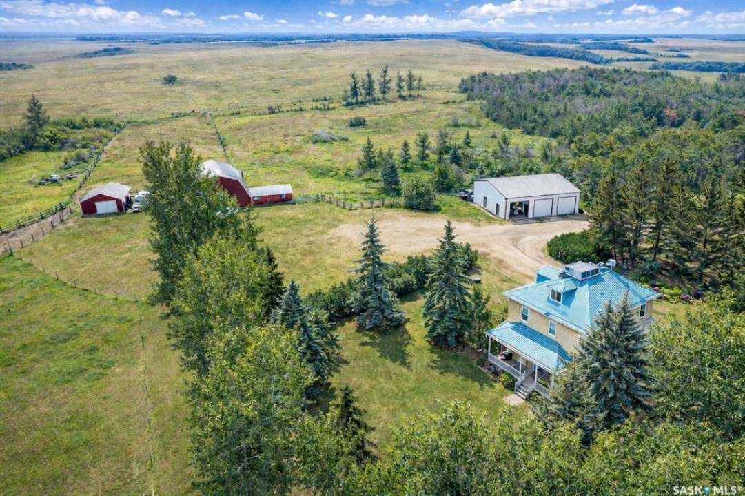 Welcome to an exceptional opportunity to own a timeless prairie acreage on 122 acres in the RM of South Qu'Appelle #157, ideally located just south of Qu'Appelle with direct access off Highway #1. This striking 3-storey brick home built in 1905 offers approximately 3,000 sq ft of living space, seamlessly blending historic character with thoughtful modern updates. Inside, the home showcases original craftsmanship including wood pocket doors, French doors, and beautifully preserved details rarely found today. The updated kitchen features a gas range, built-in microwave, dishwasher, and modern lighting, opening into a spacious dining area with engineered hardwood flooring—perfect for hosting family and friends. The inviting living room offers warmth and charm, while the main floor also includes a convenient 4-piece bath/laundry with classic clawfoot tub. The second level provides 4 generously sized bedrooms and a full bathroom, again highlighted by a clawfoot tub. The fully heated third level adds valuable flexibility—ideal for a rec room, office, guest space, or potential 5th bedroom. Extensive mechanical upgrades include a mid-efficiency furnace (2016), central A/C, updated water systems with RO, central vac, and well-maintained stone basement with cold storage. Outdoors, enjoy a private, mature yard with a beautiful east-facing veranda, long gravel driveway, and excellent infrastructure including a 40x50 heated shop (220 power, 3 overhead doors), barn with water and power, and multiple outbuildings. The land is seeded to grass and cross-fenced into 4 pastures with water access, capable of supporting livestock or ideal for hobby farming and recreational use. With strong water supply (well), established infrastructure, and excellent highway access, this property offers a rare combination of heritage charm, usable land, and modern convenience. Book your private viewing today. Please note that all offers will be reviewed at 10am on May 8,2026 - Form 917.