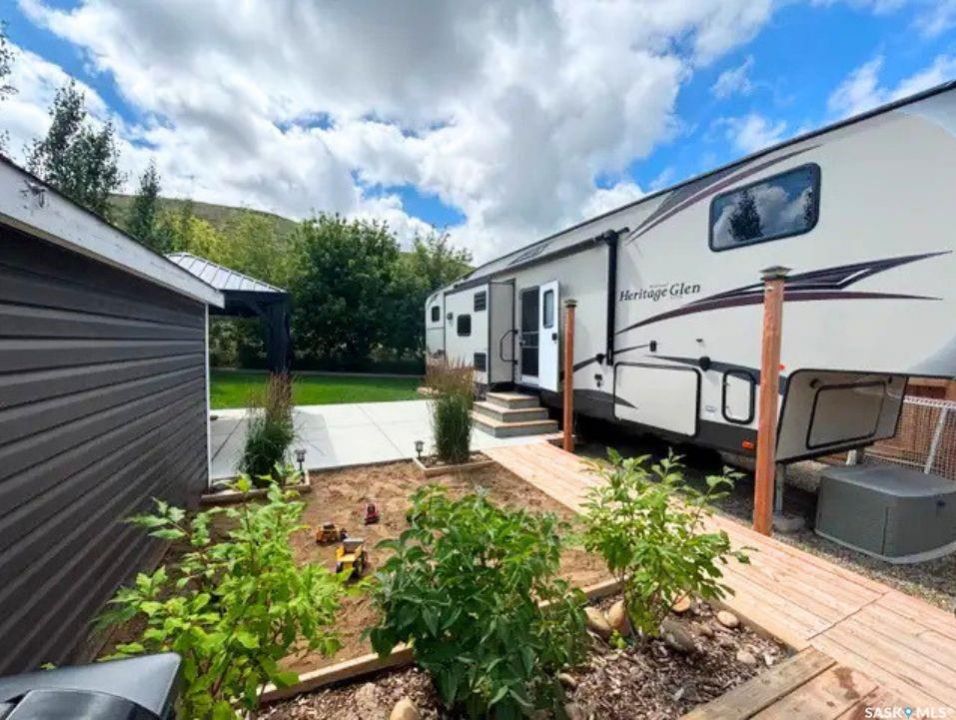 Looking for your own seasonal getaway at Lac Pelletier Regional Park? This beautifully developed lease lot offers the chance to enjoy the 2026 camping season and many years to come in one of Saskatchewan's most popular regional parks. The secure lease runs to December 31, 2044 and includes an automatic 25 year renewal clause, offering long term peace of mind. Designed for both relaxing and entertaining, the lot features a large concrete patio with gazebo plus a separate wood patio area ideal for your BBQ and outdoor cooking setup. The spacious grassed yard is framed by mature and maturing trees, creating privacy, shade, and a welcoming outdoor space. A 12 x 10 shed provides great storage, and the large sandbox could easily be repurposed into a fire pit area or additional patio space. An added bonus is the ability to leave your trailer on site year round, with no need for winter storage or the hassle of hauling it back and forth each season. Lac Pelletier Regional Park offers something for everyone, including a 9 hole golf course, licensed clubhouse, on site restaurant and ice cream shop, pickleball courts, disc golf, and a full calendar of community events. The annual lease is $2,300 and includes sewer plus both potable and non potable water. Water service is available from May to October, and electricity is paid separately, historically about $150 per year.