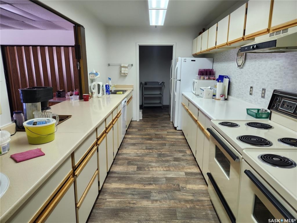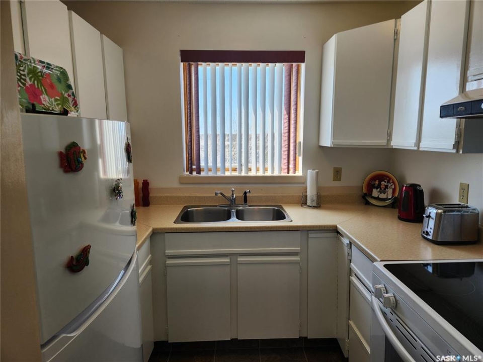 Welcome to this affordable and immaculate 1 bedroom condo in Nipawin offering peaceful West facing views of the beautiful Saskatchewan River. This well maintained unit has been thoughtfully updated with new lino flooring, modern light fixtures, and fresh paint throughout, creating a bright and inviting living space. Enjoy the convenience of free laundry facilities on every floor, along with an impressive range of amenities designed for comfort and community living. The third floor features a cozy library and an on site hair salon, while the main floor offers a games room with a pool table, a fully equipped kitchen with dining area, an exercise room, and a guest suite available for visiting family and friends. Step outside to a serene outdoor setting with mature trees, a BBQ patio area, and stunning river views-perfect for relaxing or entertaining. An excellent opportunity for affordable, low maintenance living in a quiet and welcoming environment. A parking space is conveniently located close to the main entrance. Call today to view.