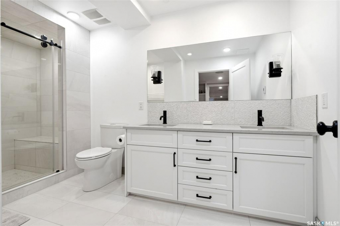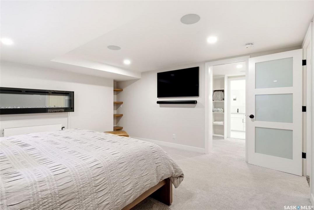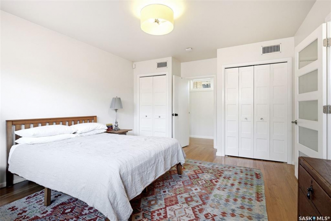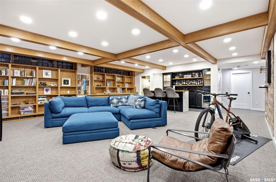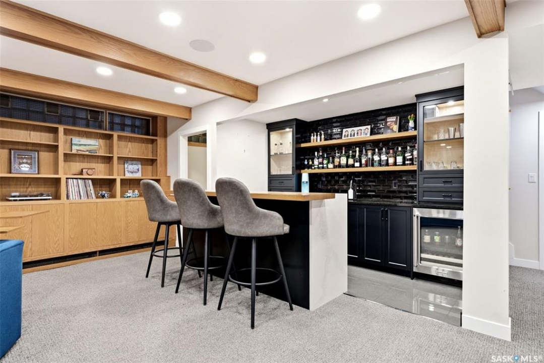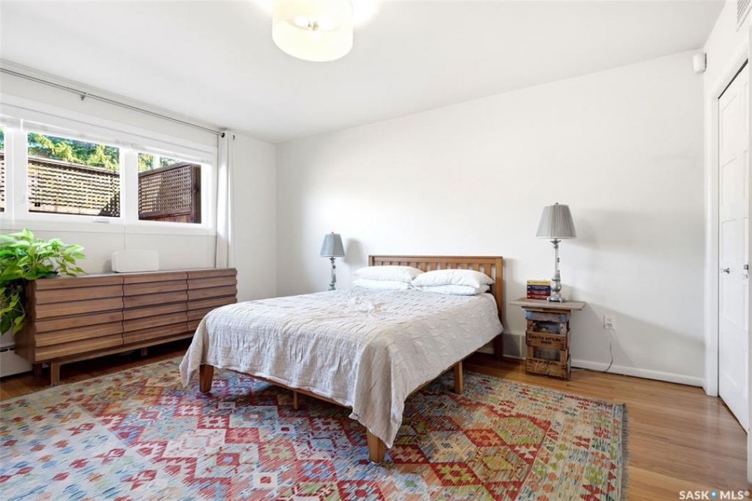 Rare find!!! Spectacular sprawling bungalow, beautifully located in the Crescents! This 2,100 sq ft bungalow is situated on a 12,000 sq ft lot close to all downtown amenities! Huge open living room/dining room combination with oak hardwood inlay. Gas fireplace insert. Large picture windows. Amazing kitchen renovation includes a professional Sub-Zero refrigerator, Wolf six-burner gas range, 2 Miele dishwashers, and dual sinks. Convenient pot filler. Porcelain commercial tile on the floor. Granite countertops, glass and stone mosaic tile backsplash. Custom-built Cobb maple cabinets with dark stain. Beverage fridge included in kitchen. Brush nickel pulls on drawers. 3 very generously sized bedrooms with some newer windows and good closet space. Primary bedroom has 3 piece ensuite with jacuzzi tub, bamboo cabinets and quartz countertops with above mounted sink. Hot water heated towel rack. Main 4 piece bathroom has an extra-deep soaker tub. Attractive beveled-edge staggered subway tile. Industrial glass shower door, limestone tile floor with electric in-floor radiant heat. Hot water heated towel rack included. Basement includes huge rumpus room with a wet bar, built-in bookcases, and a gas fireplace. Basement bedroom retreat includes walk-in closet, full bathroom and hot water heated towel rack. Den/office area currently set up with an extra bed. Large laundry room and good storage. Beautiful 12,000 sq ft lot with mature landscaping, deck and Arctic Spa hot tub included. 4 TVs, 3 sound bars, and a surround speaker system are also included.