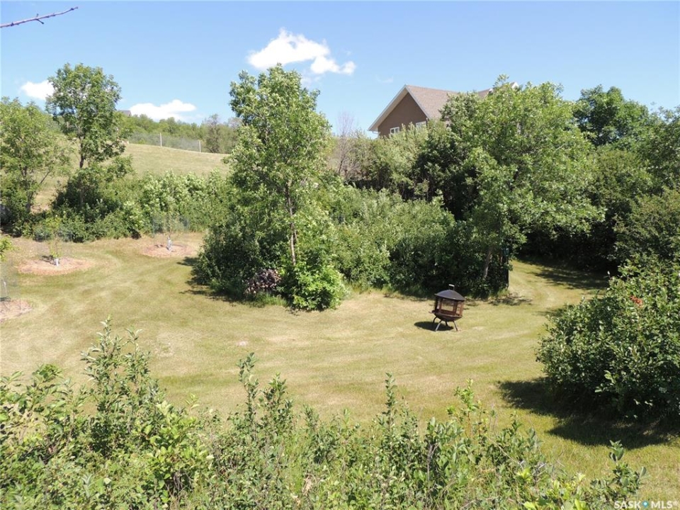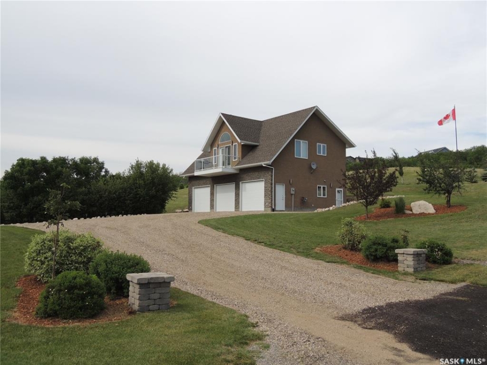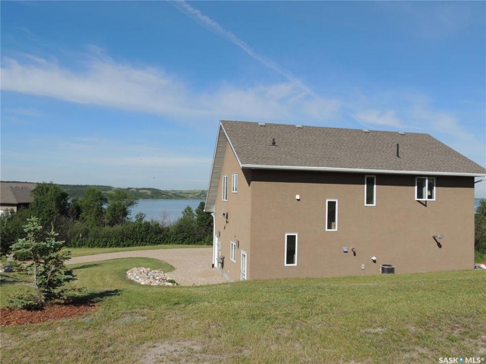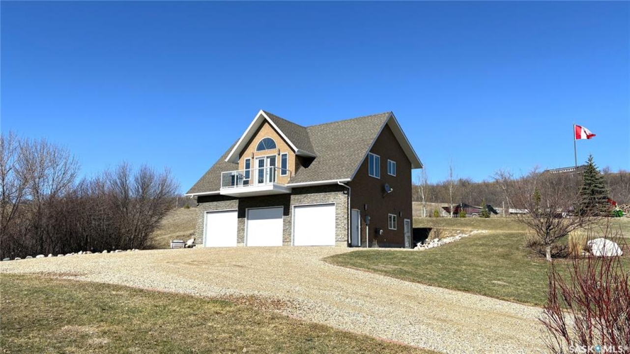 Located beside Kannata Valley in the prestigious Rockridge subdivision, this exceptional lake property offers the perfect blend of privacy, space, and breathtaking views—just a 30-minute drive from Regina on fully paved highways. Set on over 1.5 acres, the property features a charming year-round home plus an additional building site that captures even more stunning lake views. Inside, the open-concept kitchen, living, and dining area is bright and spacious, designed to showcase the incredible scenery. The kitchen includes an island, along with a generous pantry and a conveniently located laundry area. Step outside onto the inviting deck—an ideal spot to relax and take in unforgettable sunsets over the lake. The home also offers two well-sized bedrooms, a full bathroom, and ample closet and storage space throughout. The triple garage is a standout feature providing excellent space for vehicles, all the lake toys or a workshop. The main level also includes a utility room and a convenient half bath. Modern mechanical features include an on-demand hot water heater, central air conditioning, and a radiant heater in the garage. The expansive lot is filled with natural vegetation, including saskatoon and chokecherry bushes, with scenic walking paths winding throughout. A cozy and private firepit area adds to the outdoor appeal. Be sure to take the steps in front of the home to explore even more of the property. The community has a private boat launch as well as a common area with access to the environmental reserve along the lake. There is also a trail that winds through the trees and bushes along the back and east side of the community. This property is a bare land condominium, with annual condo fees covering road maintenance, potable water and access to the refuse transfer station. With so much space, natural beauty, and potential—including the option for a second building site—this property truly offers a rare opportunity to enjoy lake living at its finest.