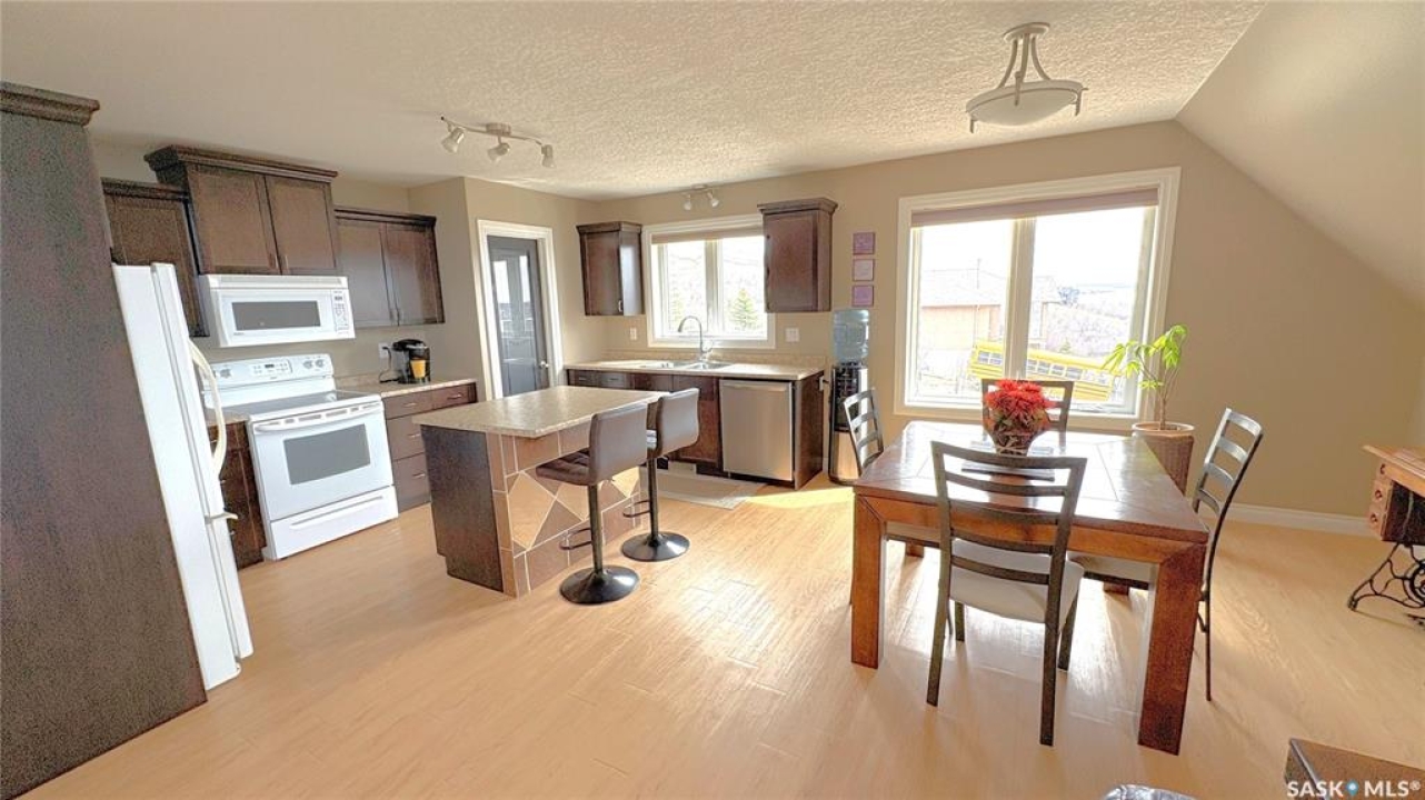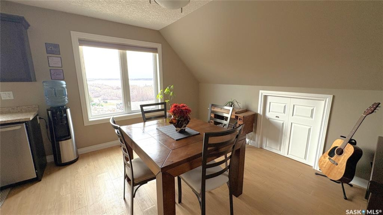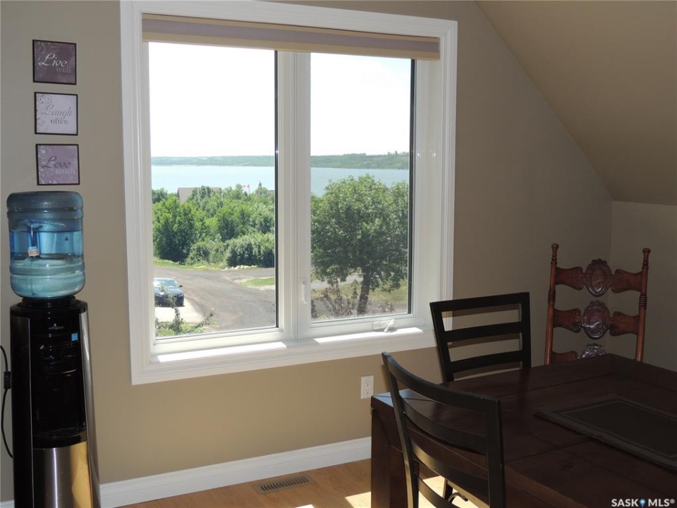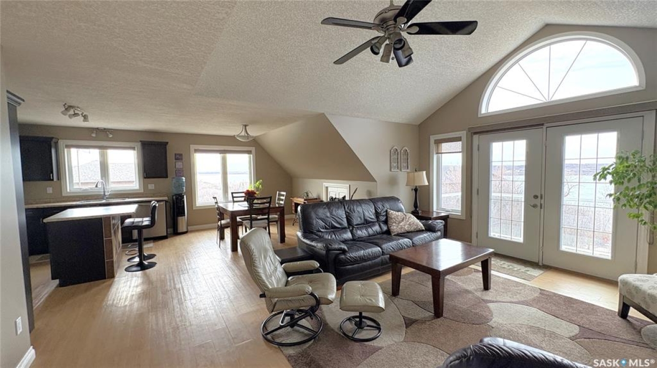 Located beside Kannata Valley in the prestigious Rockridge subdivision, this exceptional lake property offers the perfect blend of privacy, space, and breathtaking views—just a 30-minute drive from Regina on fully paved highways. Set on over 1.5 acres, the property features a charming year-round home plus an additional building site that captures even more stunning lake views. Inside, the open-concept kitchen, living, and dining area is bright and spacious, designed to showcase the incredible scenery. The kitchen includes an island, along with a generous pantry and a conveniently located laundry area. Step outside onto the inviting deck—an ideal spot to relax and take in unforgettable sunsets over the lake. The home also offers two well-sized bedrooms, a full bathroom, and ample closet and storage space throughout. The triple garage is a standout feature providing excellent space for vehicles, all the lake toys or a workshop. The main level also includes a utility room and a convenient half bath. Modern mechanical features include an on-demand hot water heater, central air conditioning, and a radiant heater in the garage. The expansive lot is filled with natural vegetation, including saskatoon and chokecherry bushes, with scenic walking paths winding throughout. A cozy and private firepit area adds to the outdoor appeal. Be sure to take the steps in front of the home to explore even more of the property. The community has a private boat launch as well as a common area with access to the environmental reserve along the lake. There is also a trail that winds through the trees and bushes along the back and east side of the community. This property is a bare land condominium, with annual condo fees covering road maintenance, potable water and access to the refuse transfer station. With so much space, natural beauty, and potential—including the option for a second building site—this property truly offers a rare opportunity to enjoy lake living at its finest.