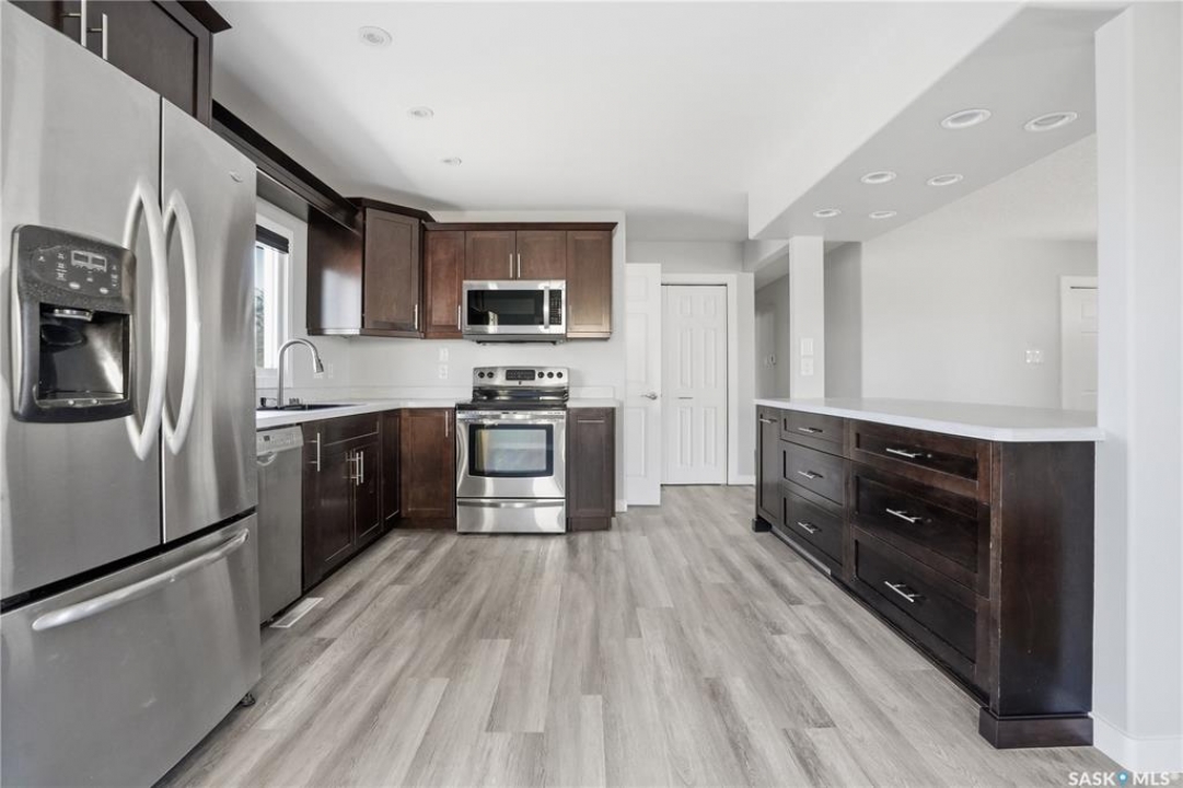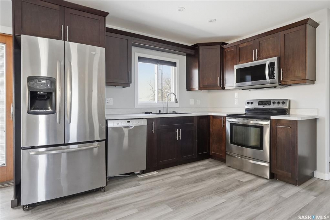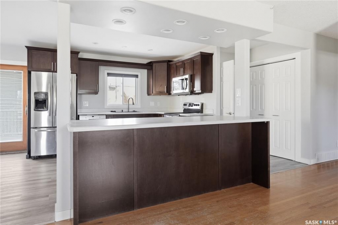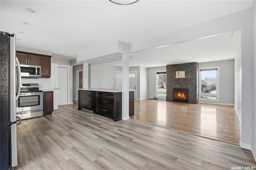 Welcome to this beautifully updated home that combines timeless style with modern comfort. From the moment you arrive, you'll appreciate the inviting street appeal and well-maintained exterior that sets the tone for what's inside. Step into a bright, open-concept main floor featuring rich hardwood floors and a seamless layout ideal for both everyday living and entertaining. The kitchen is a standout, showcasing renovated dark espresso cabinetry, a large island perfect for gathering, and plenty of workspace for cooking and hosting. The adjoining living area is warm and inviting, highlighted by a stunning stack stone gas fireplace. The main level offers three generously sized bedrooms, including a primary suite complete with a convenient 2-piece ensuite. A nicely renovated full bathroom adds to the home's comfort and functionality. Updated windows and shingles provide peace of mind and efficiency. Downstairs, the recently completed basement expands your living space with a large rec room, separate games area, an additional spacious bedroom, and a stylish 3-piece bathroom featuring an impressive shower. There's also a versatile den—perfect for a home office, gym, or hobby space.Situated on a very large lot, this property offers plenty of outdoor space for relaxation, gardening, or entertaining. A single attached garage adds everyday convenience. This move-in-ready home checks all the boxes—don't miss your opportunity to make it yours!