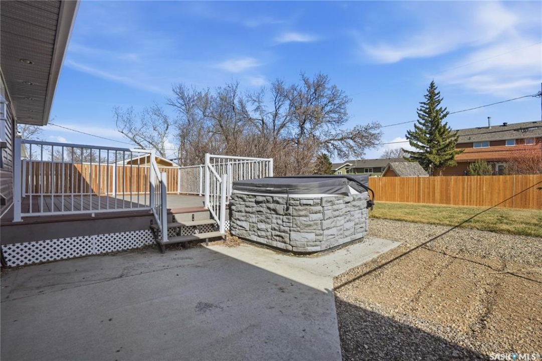 Outdoor: Deck, Fenced, Garden Area, Lawn Back, Lawn Front, Trees/shrubs