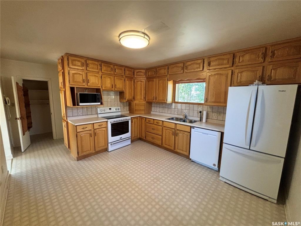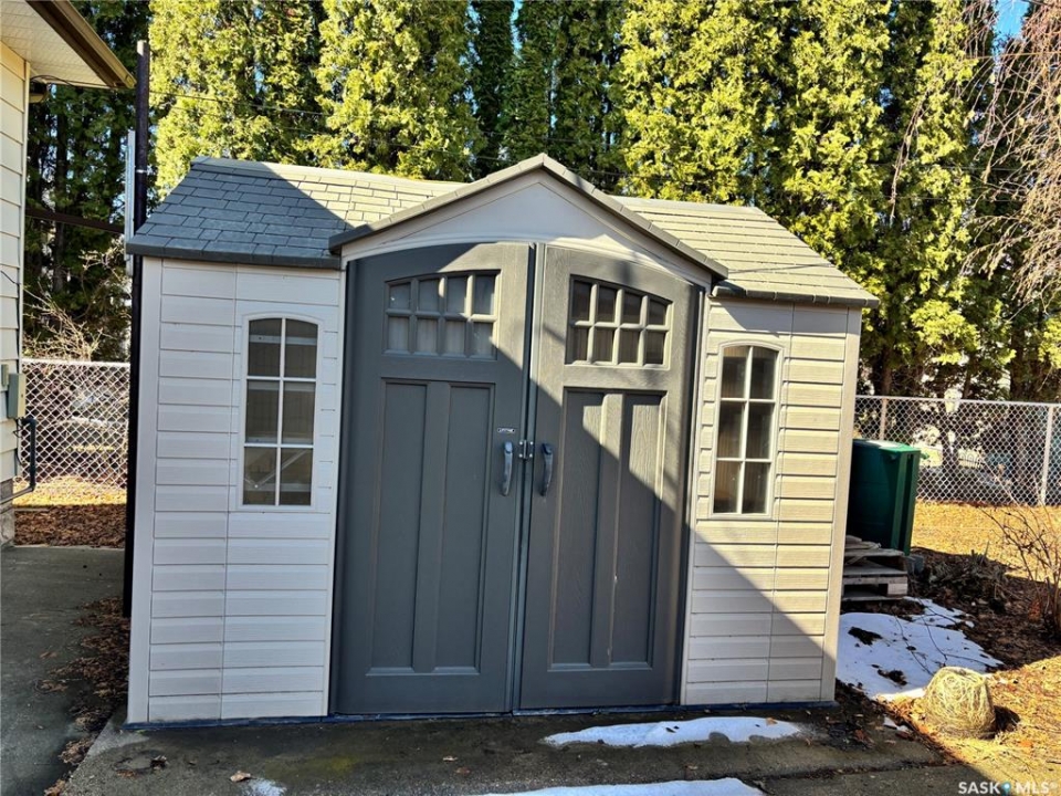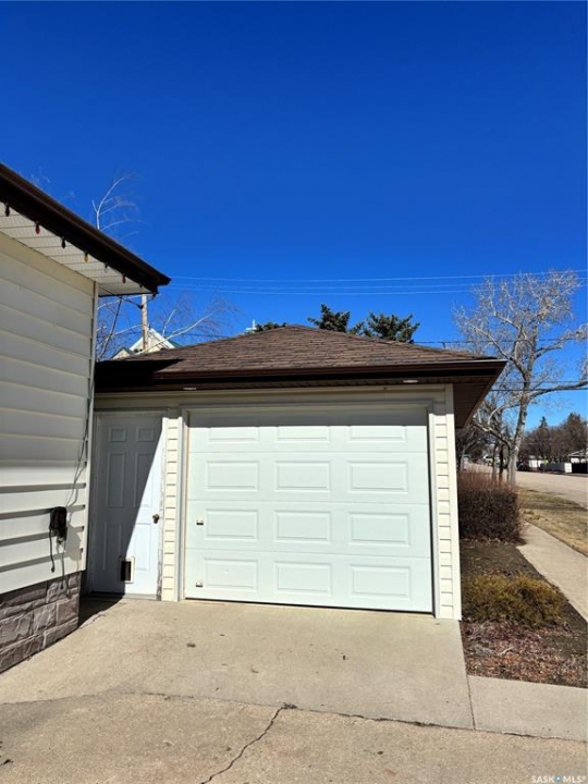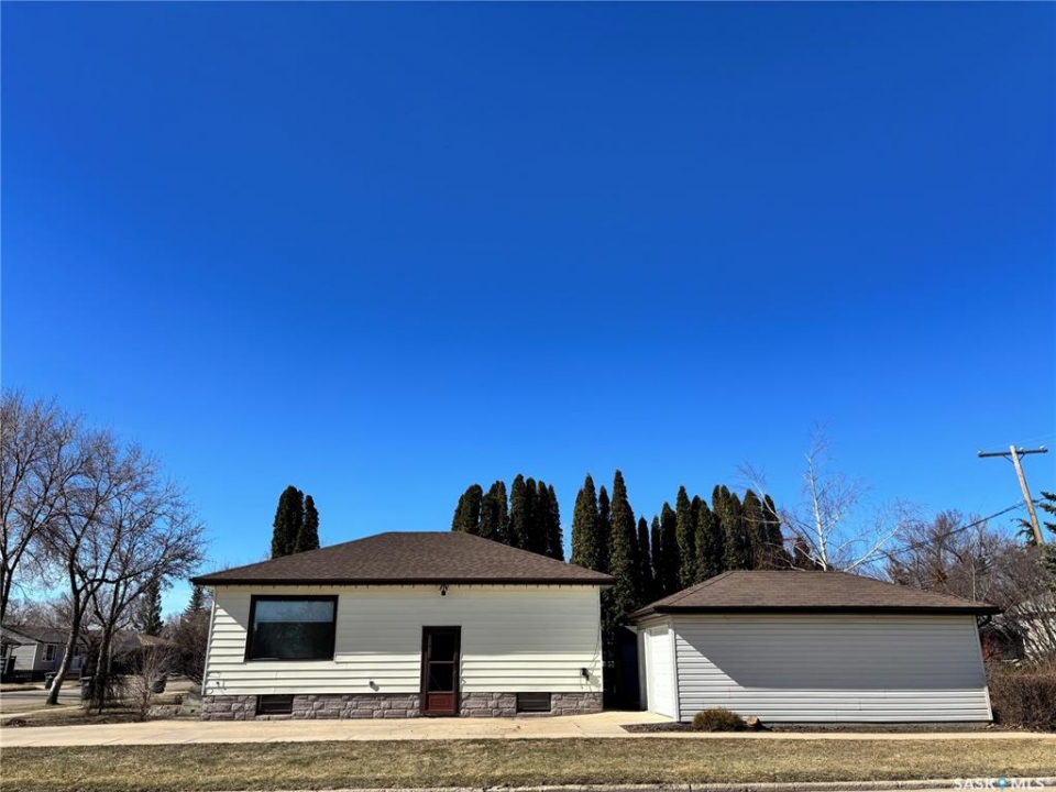 Welcome to 400 3rd Ave. W.—a charming bungalow full of character & history. Built in 1953 & completed in 1954, this home has been lovingly maintained by its original owner ever since. Ideally located just one block from Westberry Elementary School & the Kinsmen outdoor rink, & only three blocks from downtown, this property offers both convenience and community. The home is ~ 884 sq. ft. & sits on a generous 47' x 125' corner lot. A 14' x 24' garage, added in 2005, features power, wiring, 2 man doors, & an overhead door. The main entrance is accessed via a side door off the driveway, leading into a small landing area—perfect for removing shoes—before heading up to the main floor or down to the basement. Upstairs, you'll find 2 bedrooms, a 3-piece bath, & a bright, inviting living room with 2 lg picture windows. Budget blinds were installed in 2024, including a powered blind on the largest window. Primary bedroom offers a large window, an additional smaller opener, and a charming walk-in closet complete with a pocket door & lighting. The second bedroom also features a vinyl window & its own walk-in closet with built-in storage.The kitchen/ dining area were updated in 1990 with oak cabinetry, countertops, & flooring, & are complemented by newer white Maytag & Whirlpool appliances. A standout feature is the walk-in pantry (approximately 3' x 4.5'), offering excellent storage—rare for a home of this style. The main floor bath retains some original charm while featuring a practical step-in shower conversion. Downstairs, a spacious recreation room provides room for relaxing or entertaining, along with plenty of storage. The lower level also includes a combined laundry, utility, & storage area, a 3-piece bath, & a 3rd bedroom w/ dual access. Outside, the backyard is partially fenced & includes a charming vinyl shed added ~10 years ago. With established perennials & ample planting space, it's a true gardener's dream. Don't miss your chance to view—contact your Realtor today!