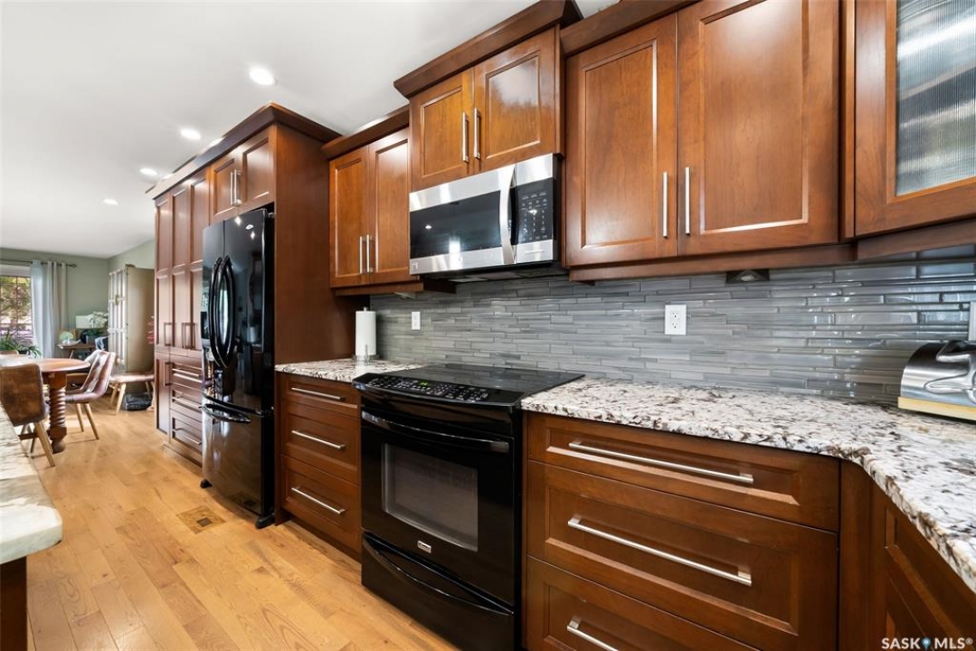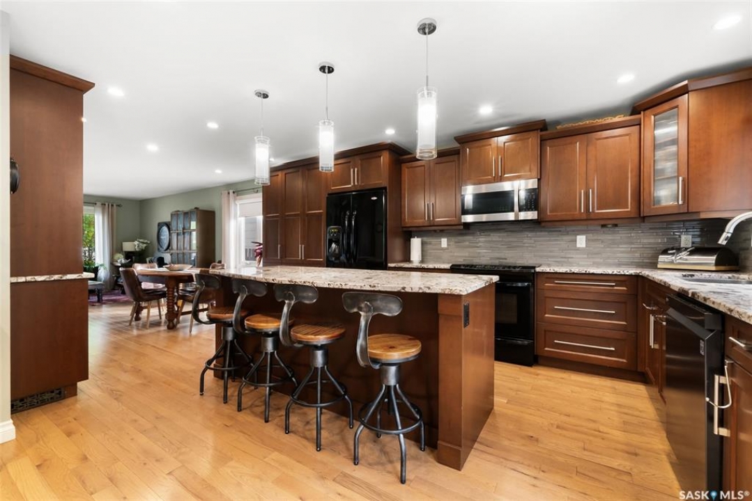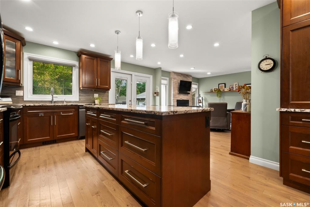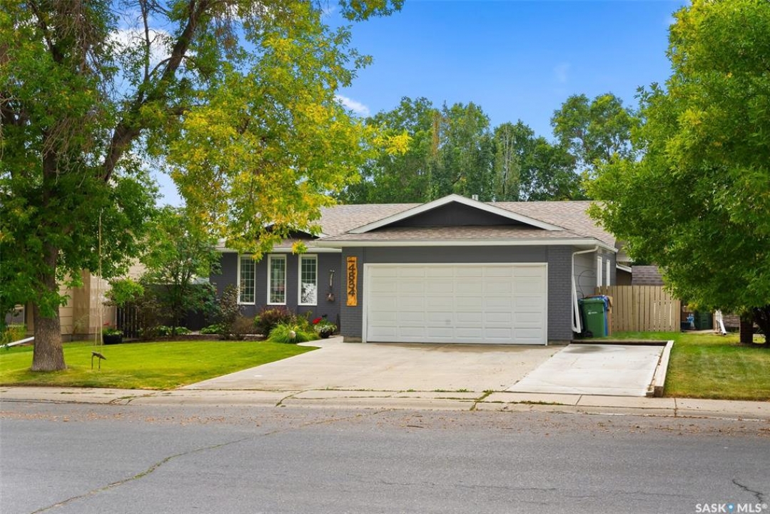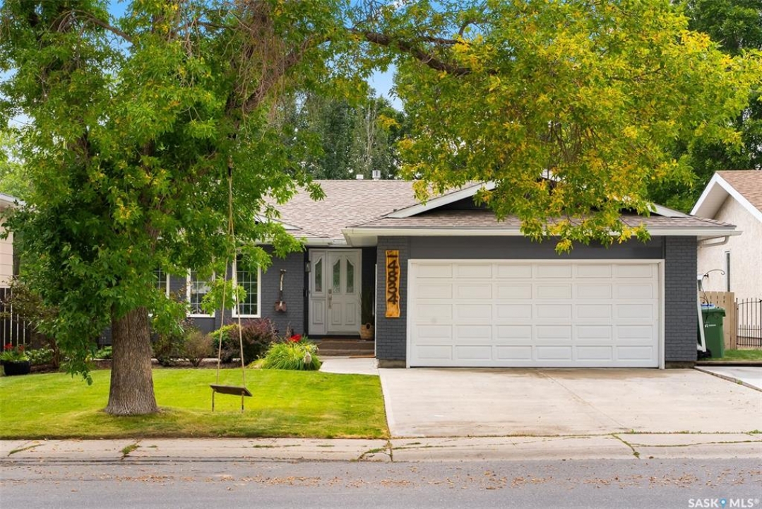 4834 Queen Street is the move-in ready 5 bedroom bungalow in Albert Park you've been waiting for! Featuring a double attached garage, an extra-wide driveway, and a single detached heated shop in the backyard, you'll have plenty of space for your vehicles and projects. As soon as you step inside, you'll be impressed by this beautifully renovated family home. Highlights include gorgeous hardwood floors and a stunning kitchen equipped with granite countertops and custom cabinetry from Ricks Custom Cabinets. The bathrooms have been fully modernized, making the home feel brand new and ready for you to enjoy immediately. The central island in the kitchen provides ample preparation space and additional storage. If you love to entertain, you'll appreciate the custom cabinetry area that can serve as a coffee bar, buffet station, or workstation for everyday use. The main floor offers plenty of space for family gatherings, featuring both a front family room and a rear living room with an updated stacked stone gas fireplace. The master bedroom includes a large closet and a 2-piece ensuite bathroom. Two additional bedrooms and a 4-piece bath complete this level. Downstairs, you'll find a spacious rec room and games area perfect for family enjoyment! A 3-piece bath and two more bedrooms on this floor are ideal for tweens, adult children, guests, or as extra space for an office or gym. Additionally, the laundry/utility room is massive, providing plenty of room for all your seasonal and sentimental items. Outside, you'll discover a beautifully landscaped, low-maintenance, fully fenced backyard with a composite deck and patio. The shop measuring 22x16 is a hobbyist's dream, featuring 100 amp electrical service, a 220 plug, and a fully insulated and sprayed foam ceiling. This home is conveniently located near Perry Elementary, and Harbour Landing amenities are just a short drive away.