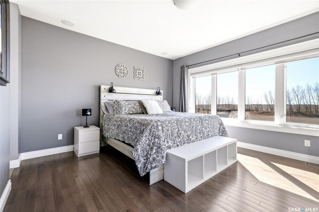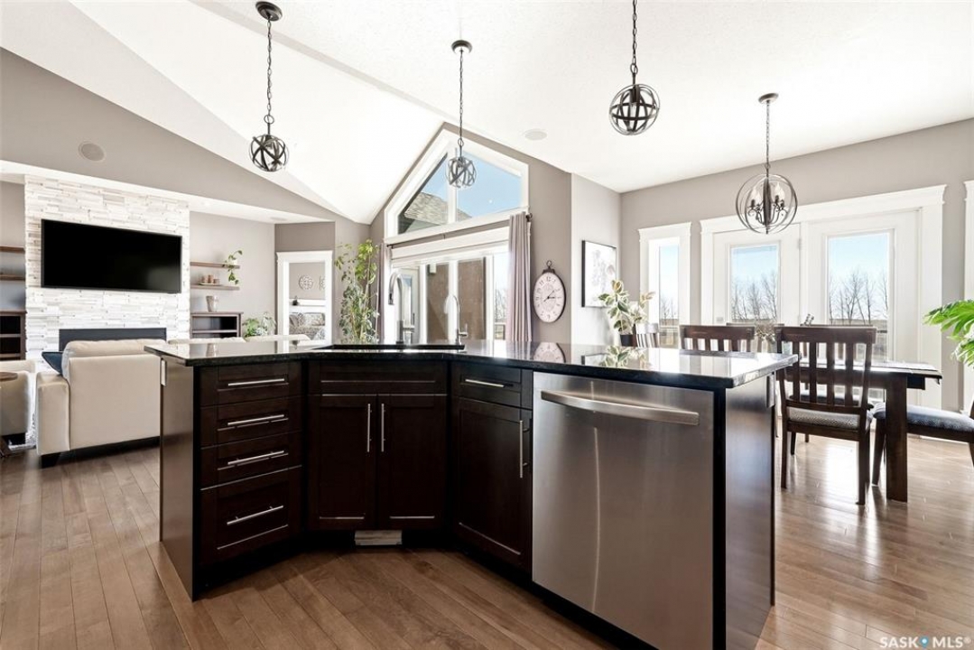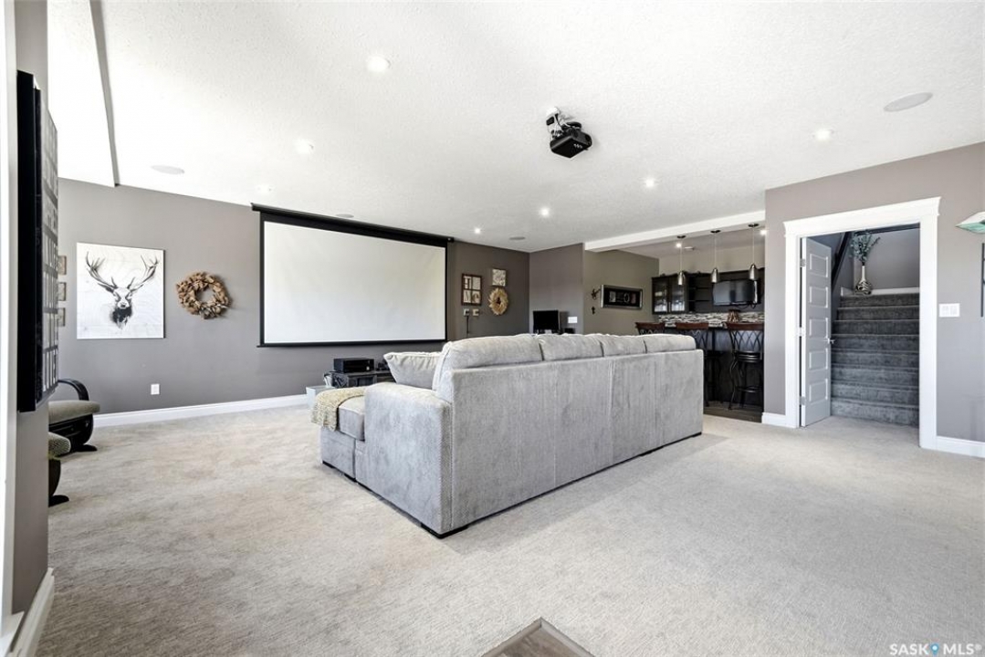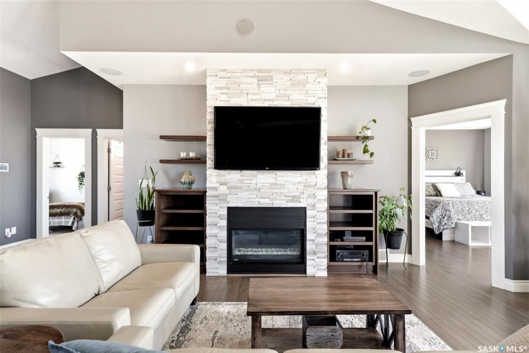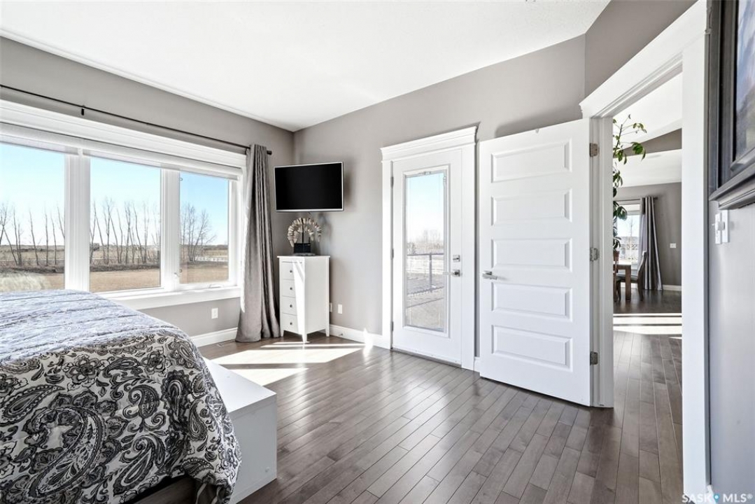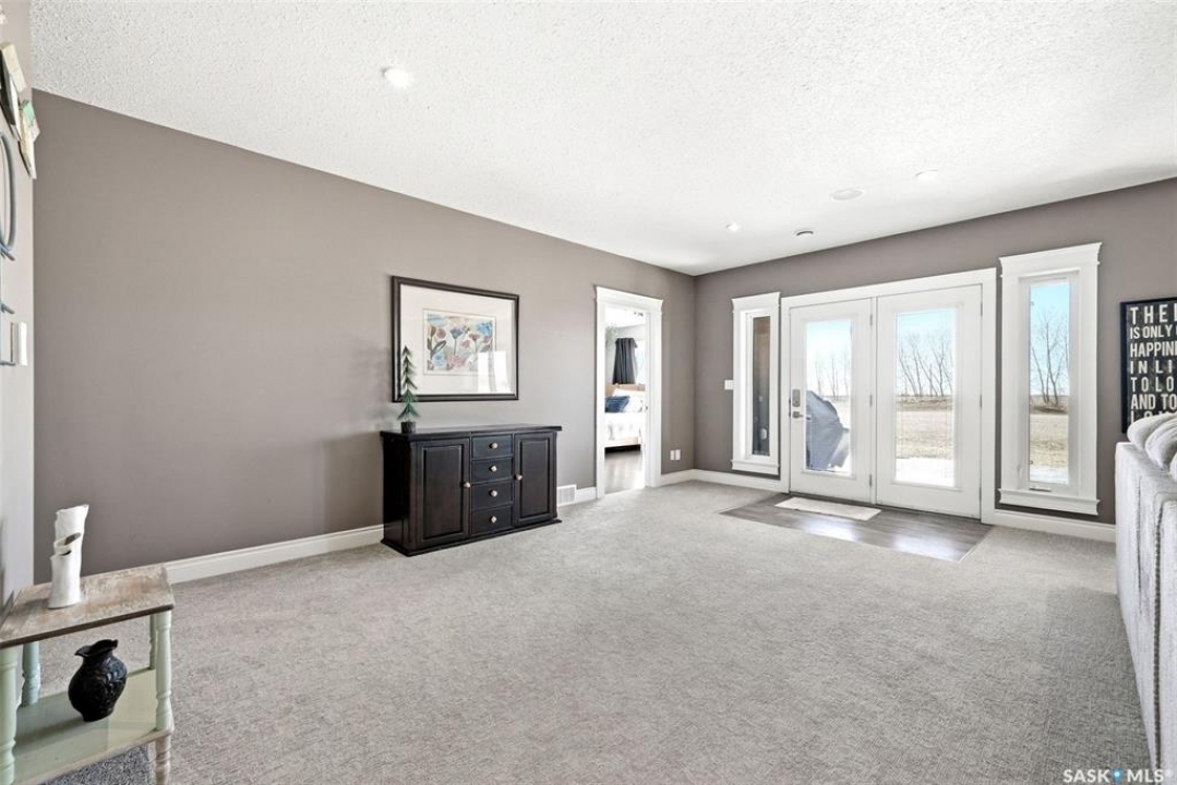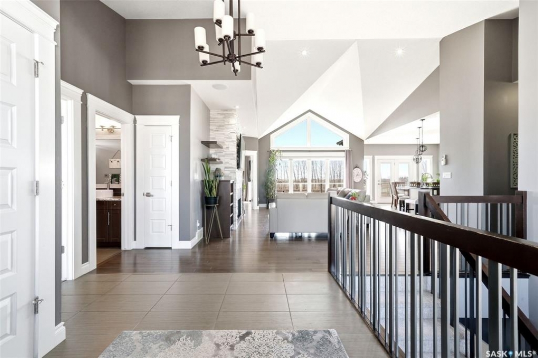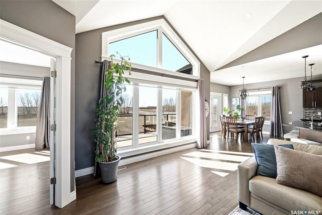 Welcome to 163 Rock Pointe Cr, an exceptional luxury acreage set on 3.49 beautifully maintained acres. This 2013-built walkout bungalow offers 1,632 sq ft of refined living space blending upscale comfort with the tranquility of country living. From the moment you step inside, you're greeted by soaring vaulted ceilings, engineered hardwood floors & an abundance of natural light streaming through expansive windows, creating a bright & inviting atmosphere. The living room is anchored by a stunning entertainment wall with gas fireplace, while built-in audio enhances both everyday living & entertaining. The thoughtfully designed layout flows effortlessly into the dining area & chef-inspired kitchen—complete with stone countertops, a large island, SS appliances, & an oversized walk-through pantry that provides exceptional storage & convenience. Step out onto the upper deck, perfectly positioned off the dining space, where you can entertain in style or simply unwind while taking in the peaceful prairie views. The main floor also features a well-appointed laundry/mudroom with a 2-pc bath & direct access to the triple attached heated garage. The primary suite is a true retreat, offering private deck access, a spacious walk-in closet & a 5-piece ensuite. An additional bedroom—perfect for a home office—& a 4-pc bathroom complete the main level. The fully developed walkout basement is designed for both relaxation & entertaining. A stylish wet bar welcomes you into the expansive recreation space, featuring built-in audio, projector, and screen—perfect for movie nights or hosting the big game. In-floor heating adds an extra layer of comfort throughout the lower level. Patio doors lead to a covered outdoor area with a hot tub and pergola, creating your own private oasis. Two additional bedrooms, a full 4-pc bath & an extra 2-pc bath ensure ample space for family & guests. This is a rare opportunity to own an incredible acreage just minutes from the city!